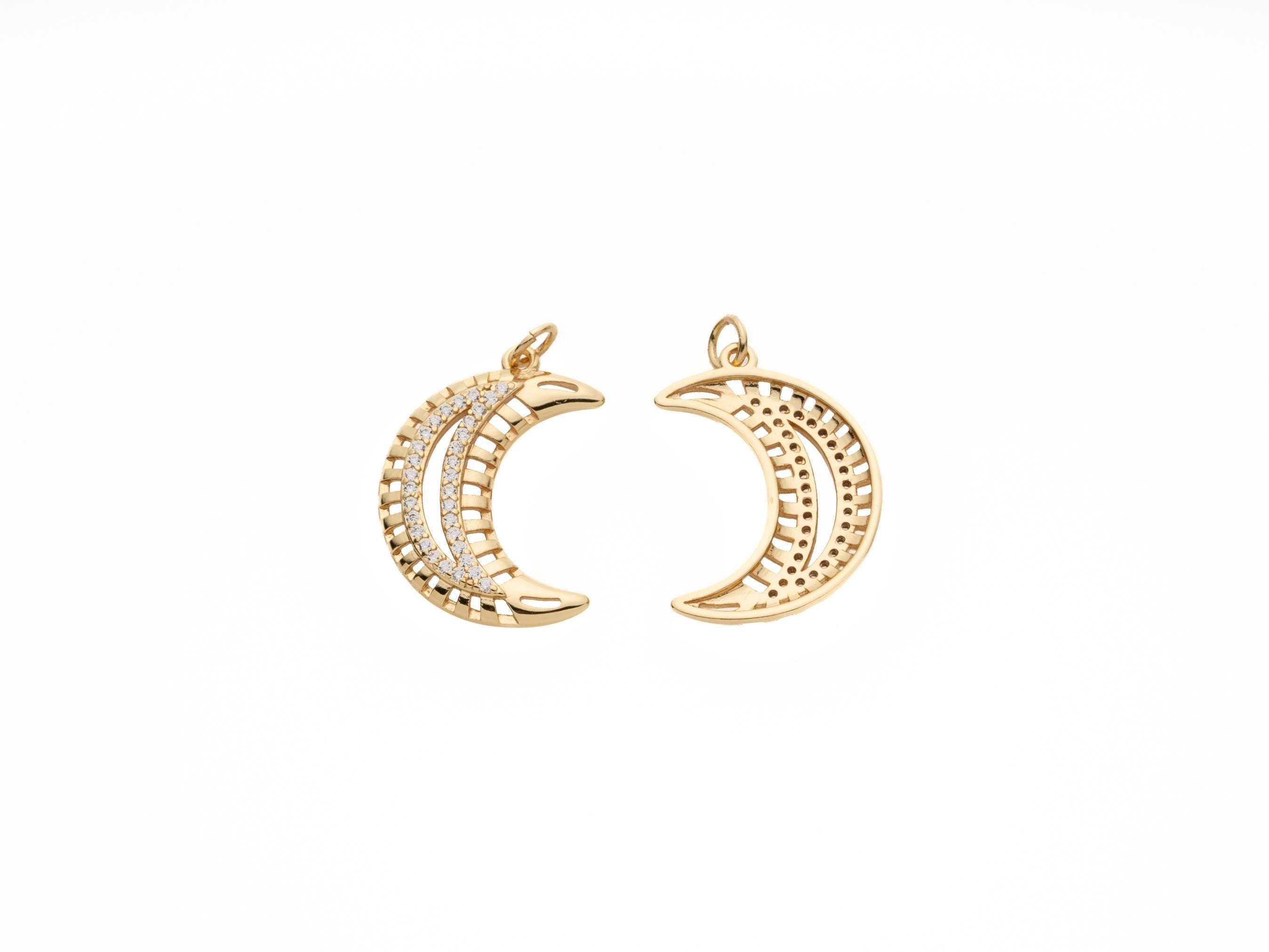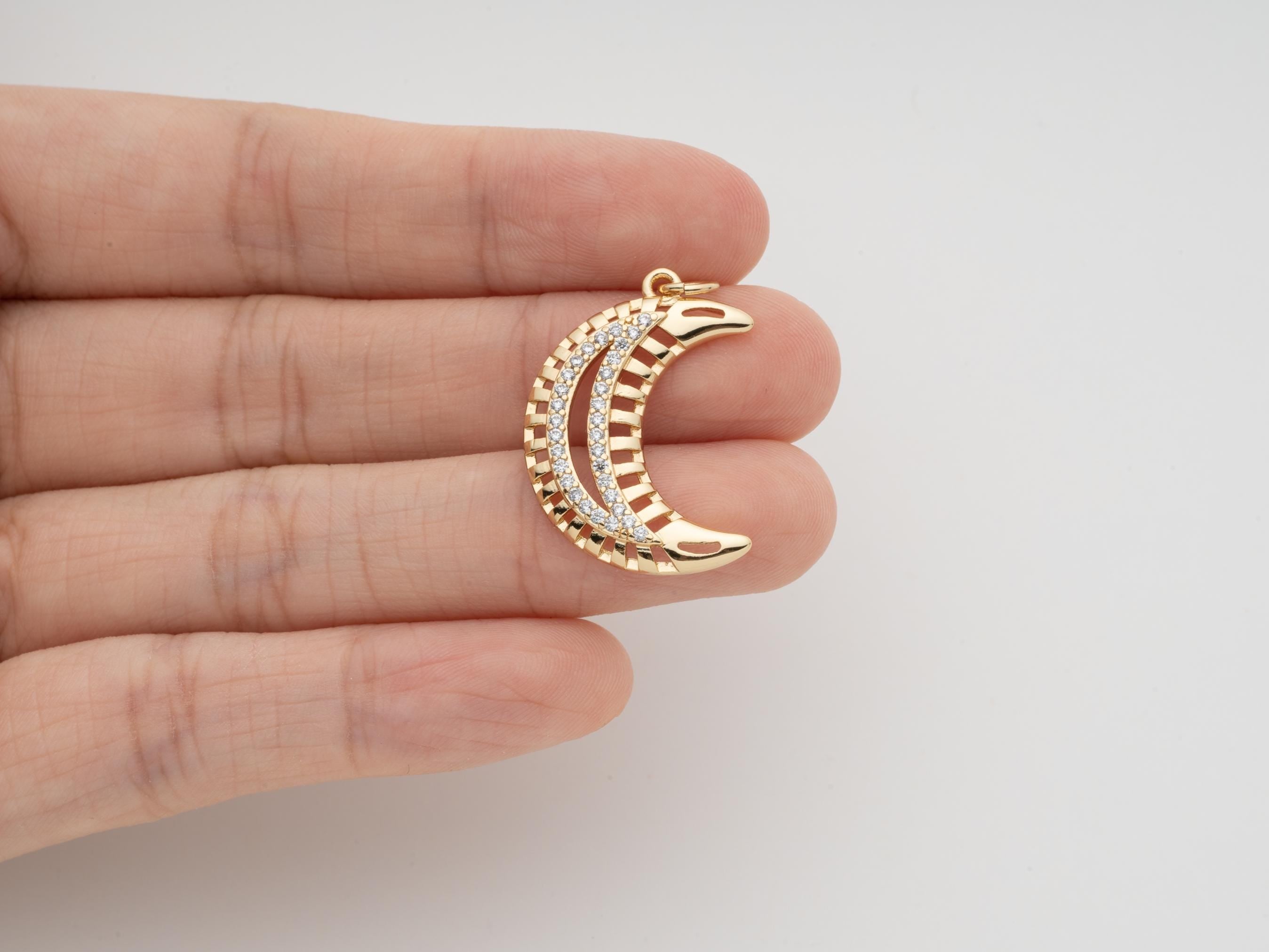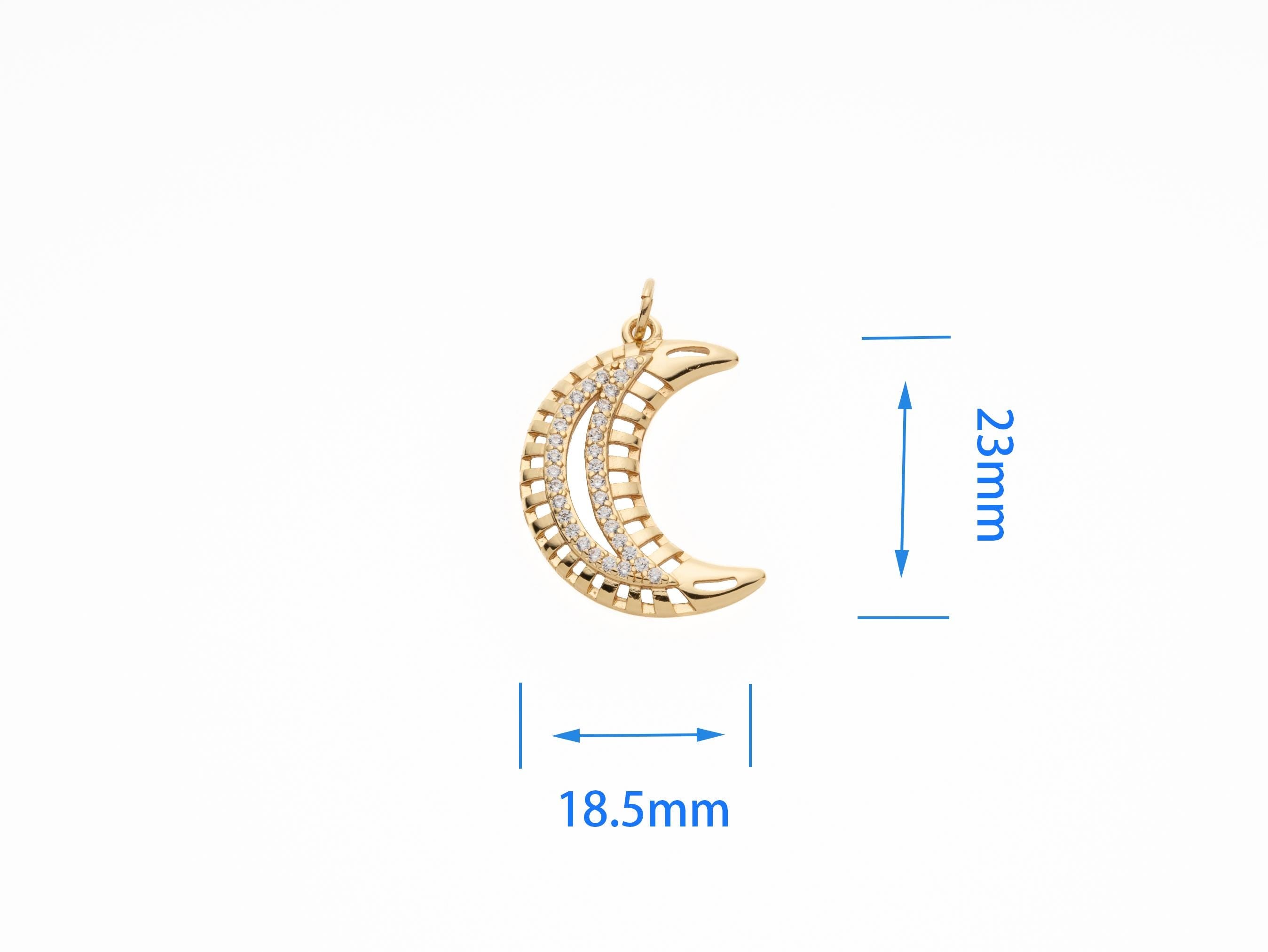 Gold Crescent Moon Charm CZ Micro Pave, Luna, Crescent Moon Pendant, Crescent Moon Bracelet, Cubic Zirconia Charm Crescent Charm CPG1095