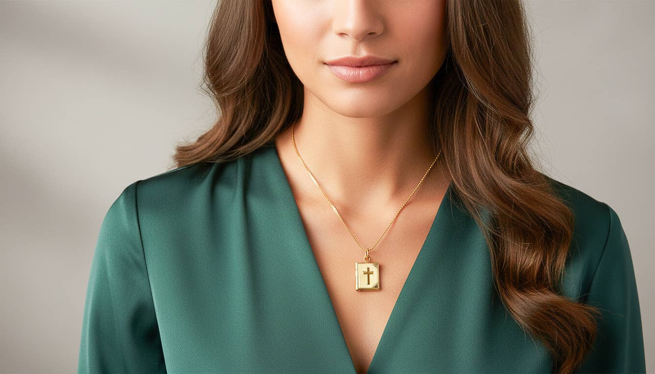 Gold Cross Locket Charm, photo locket for Necklace CPG2948