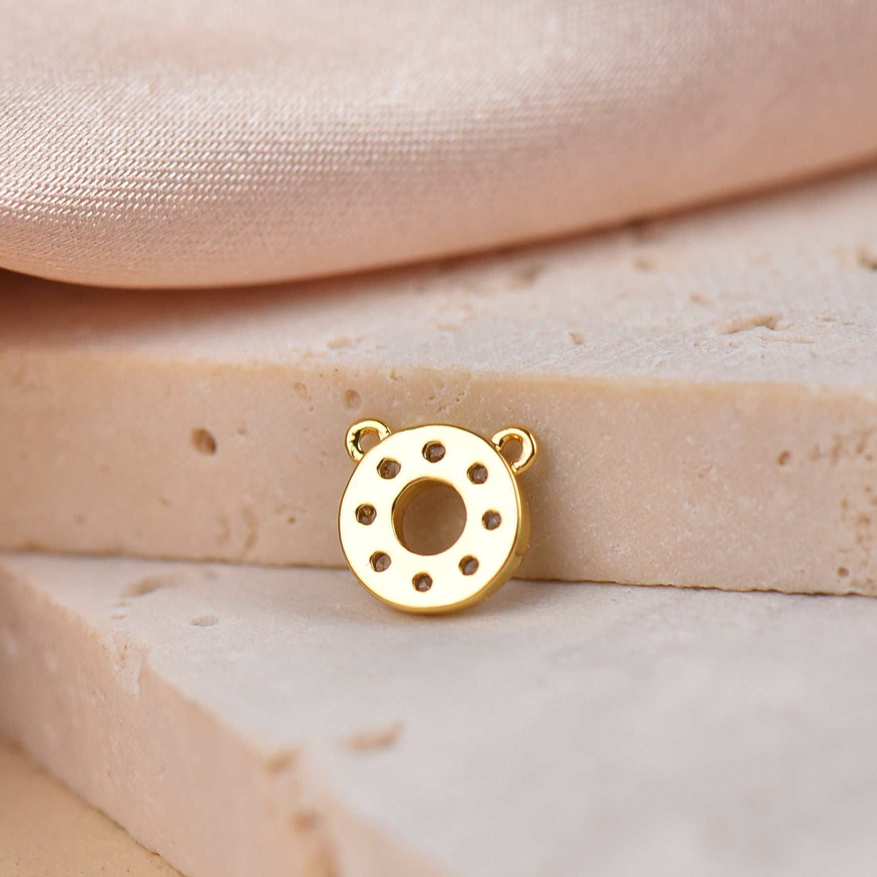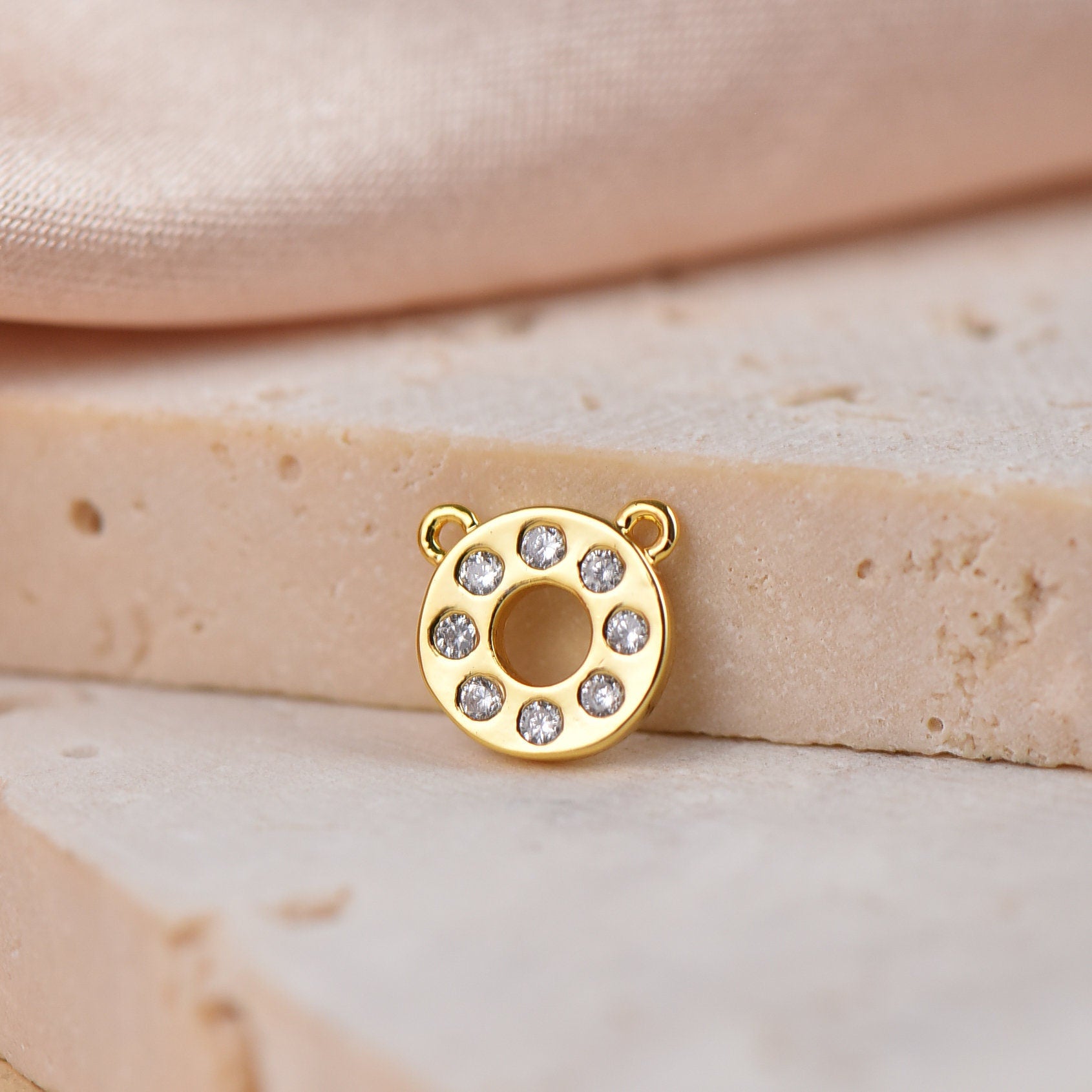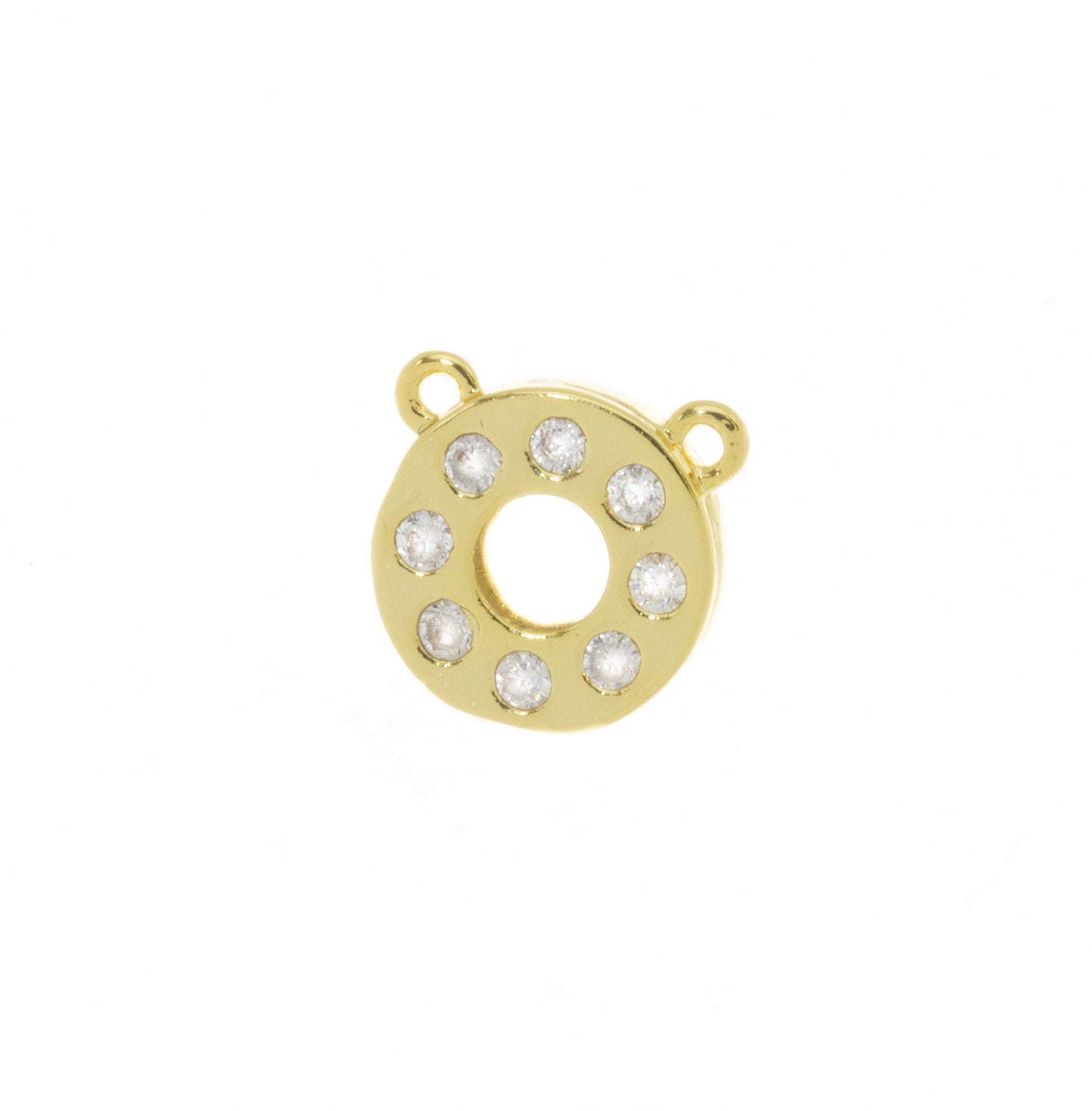Gold Disc Connector, Micro Pave CZ Circle Connector Charm,CNG054