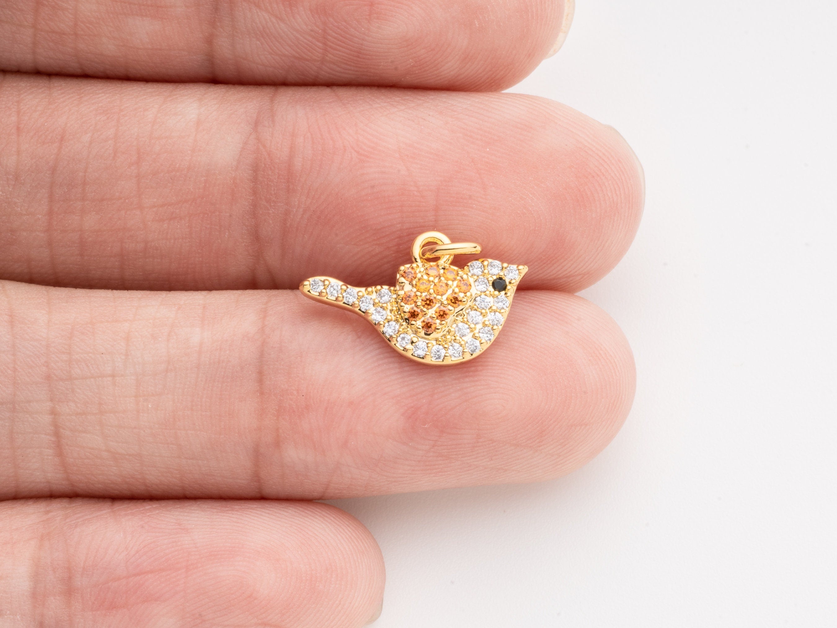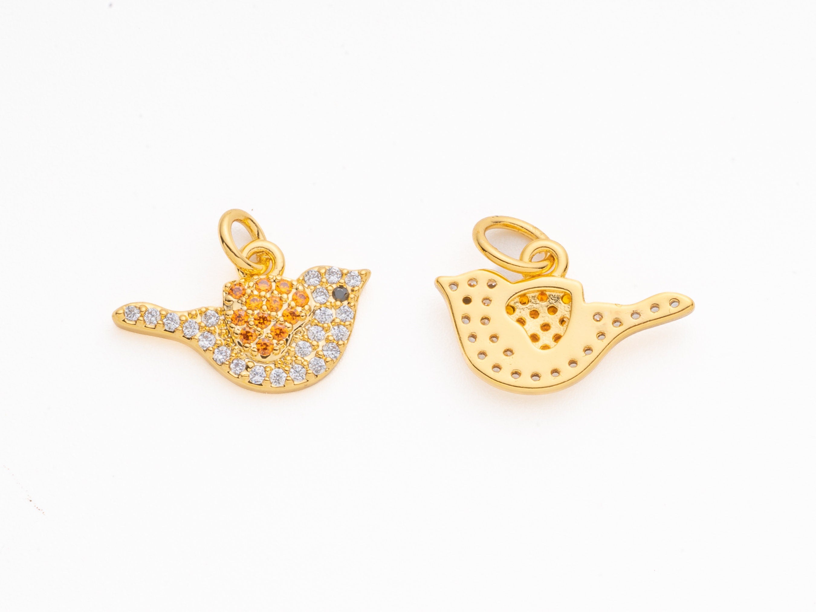 Gold Dove cz Charm, Peace Symbol Jewelry, Dove Sparkly bird charm, dove jewelry for love ones, 15mm, CPG2005
