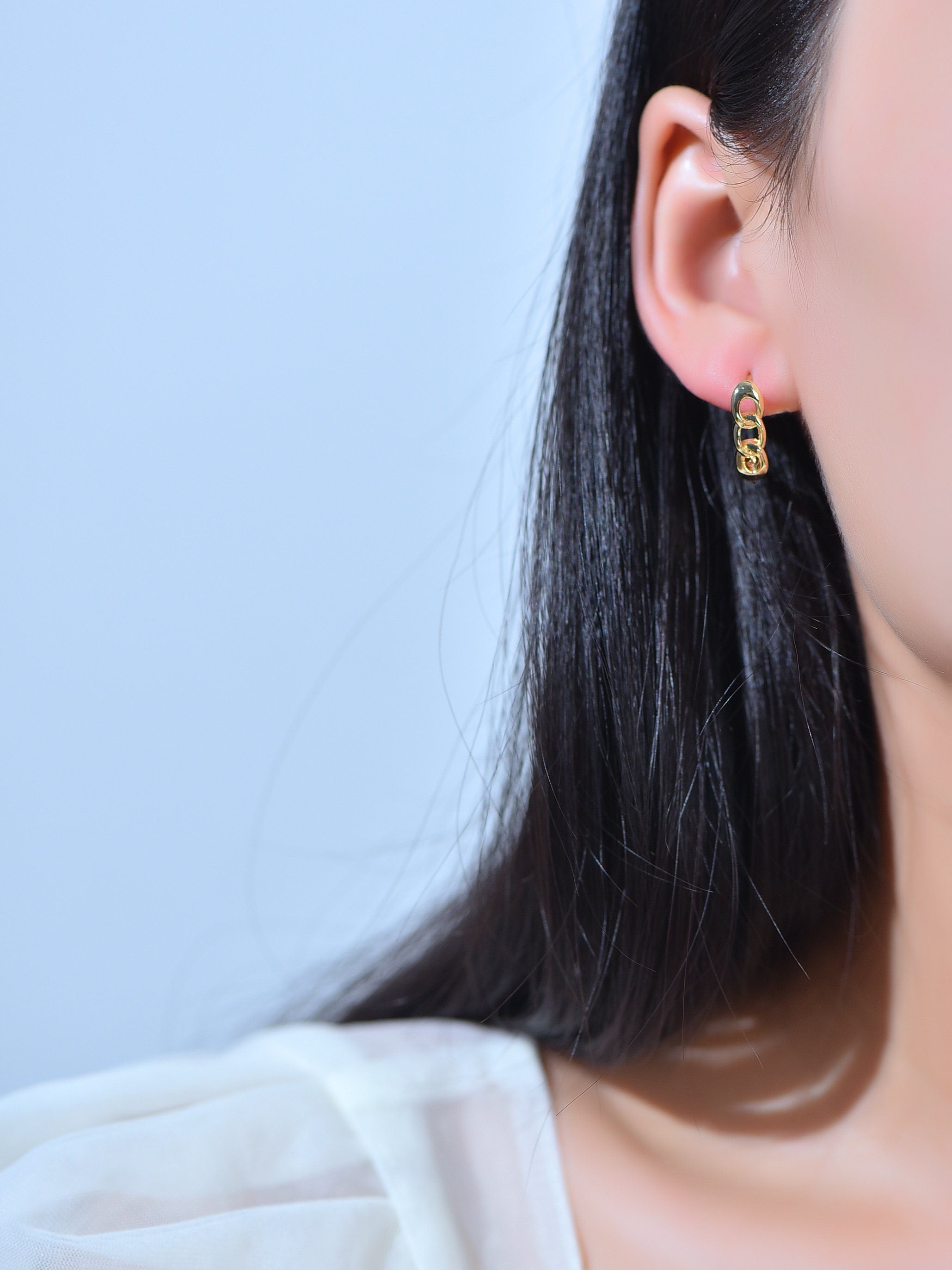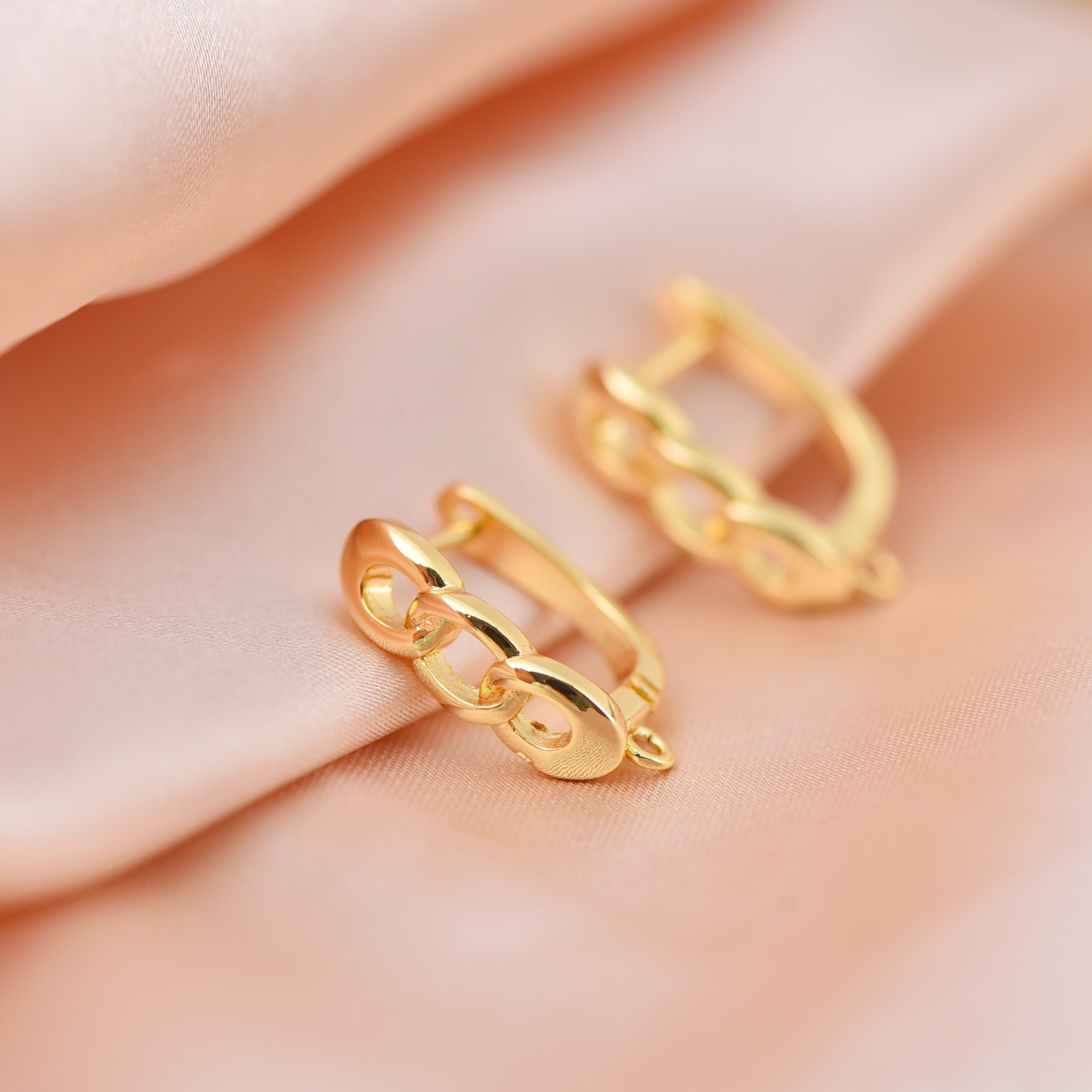 Gold Earring,Dainty Cuban Chain Design Hoop Earring With Lever Back Closure, EAC-113