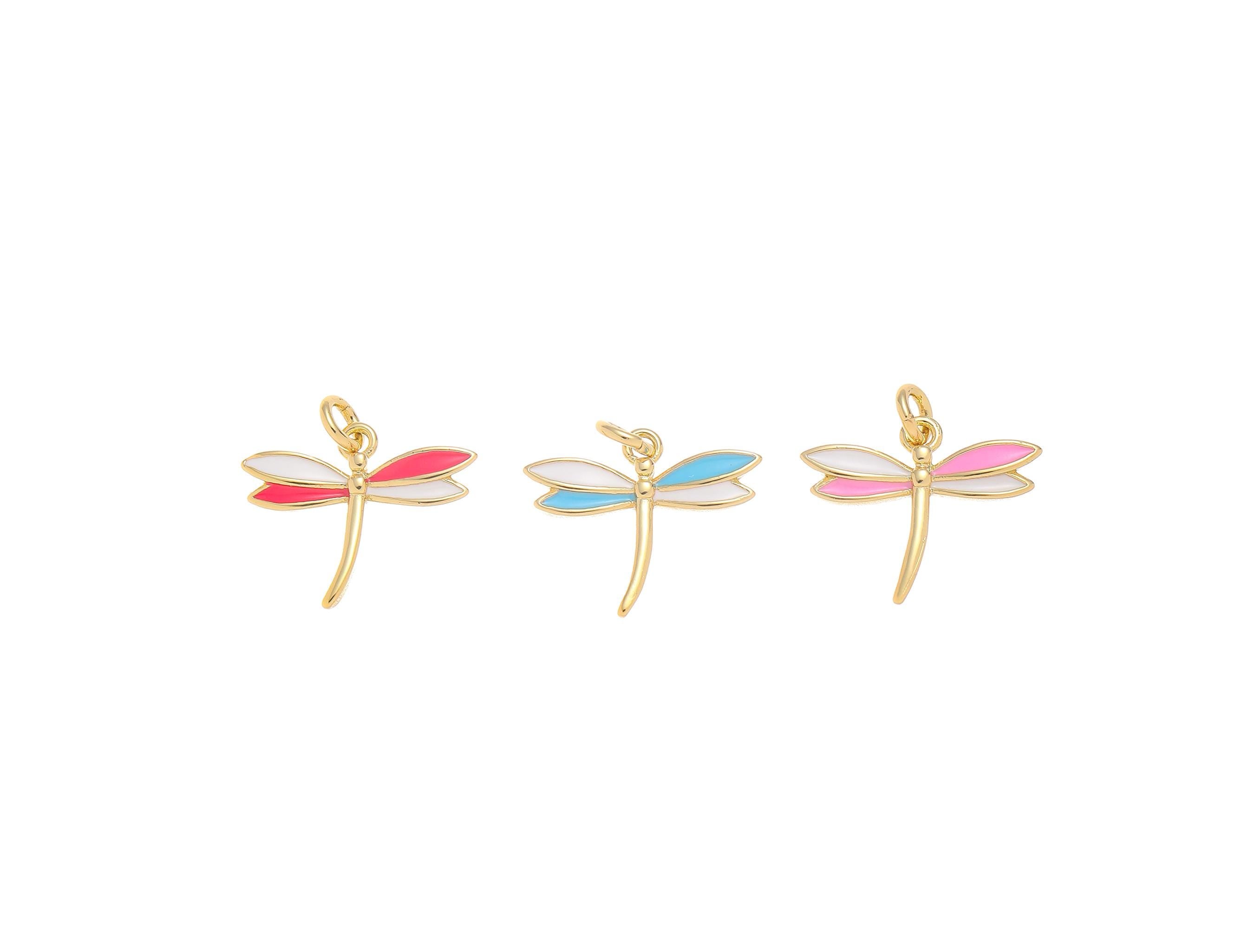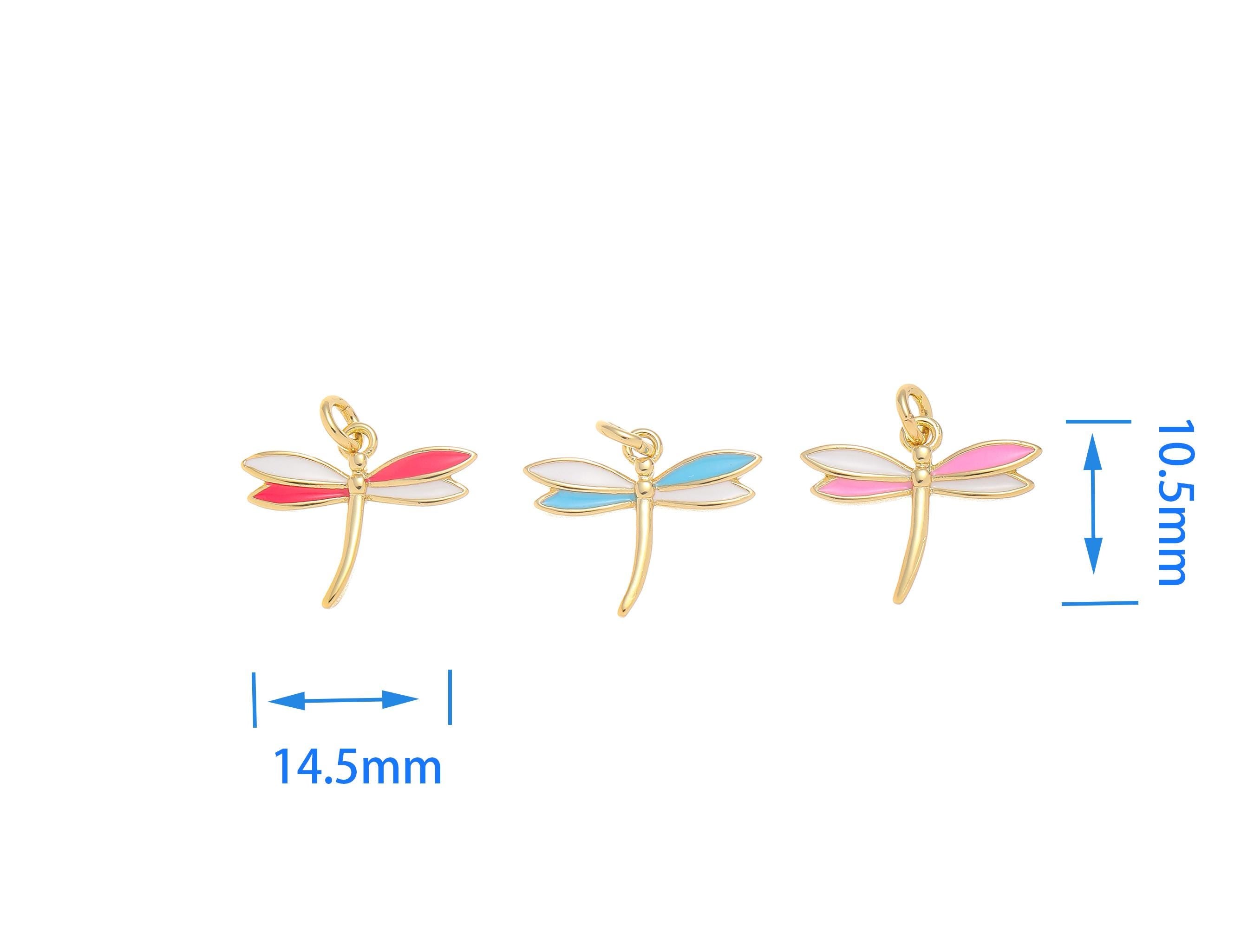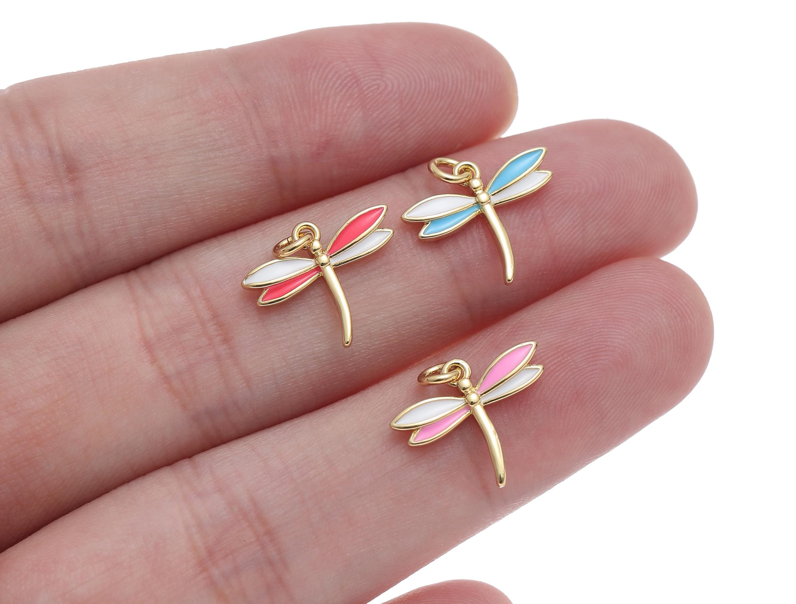 Gold Enamel Dragonfly Charm,Red Blue Pink Dragonfly Charms,Dainty Dragonfly Charm For Jewelry Making,Enamel Dragonfly Charm,CPG1561