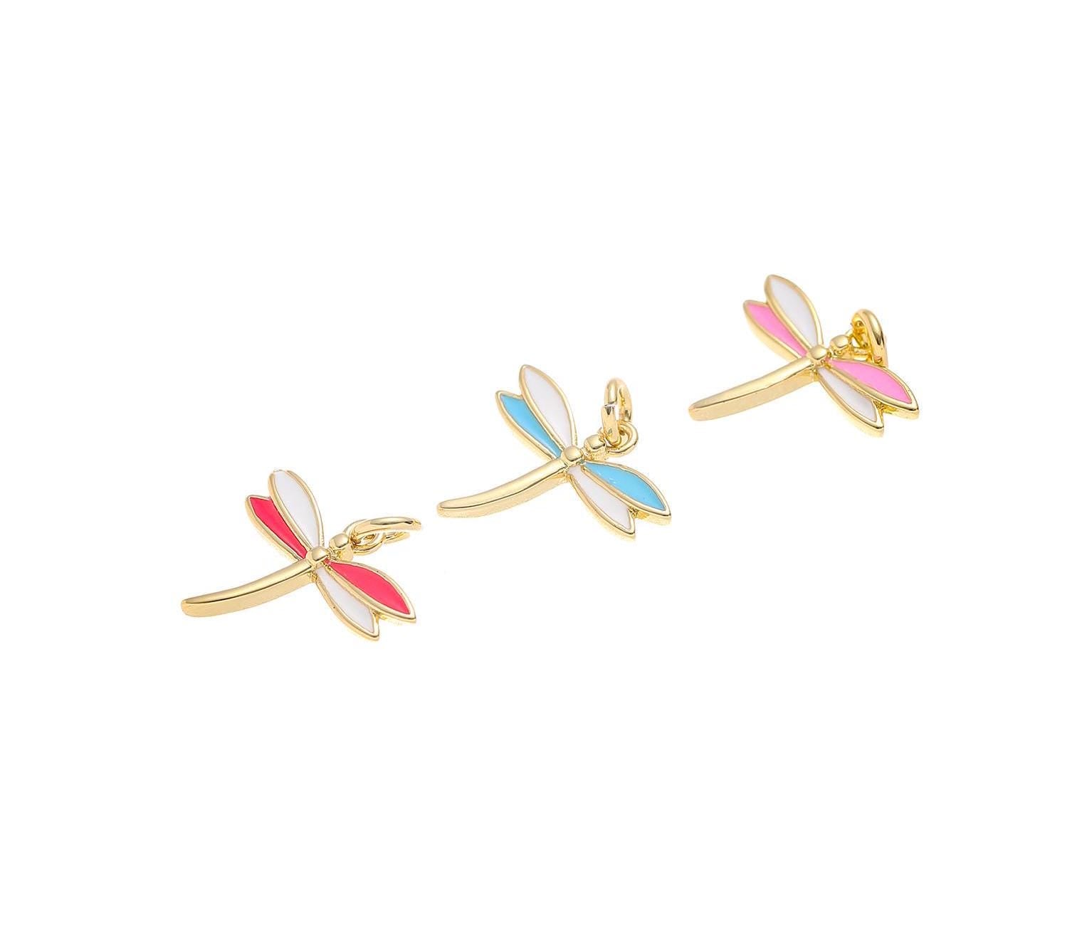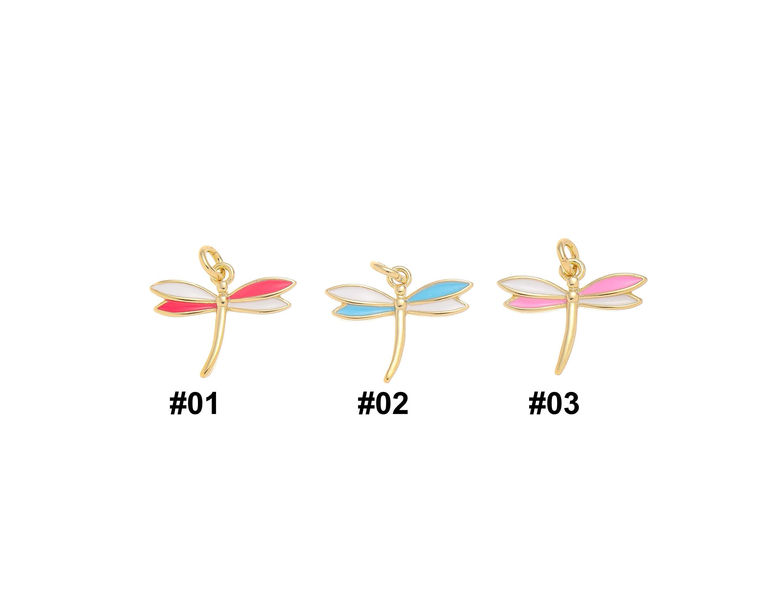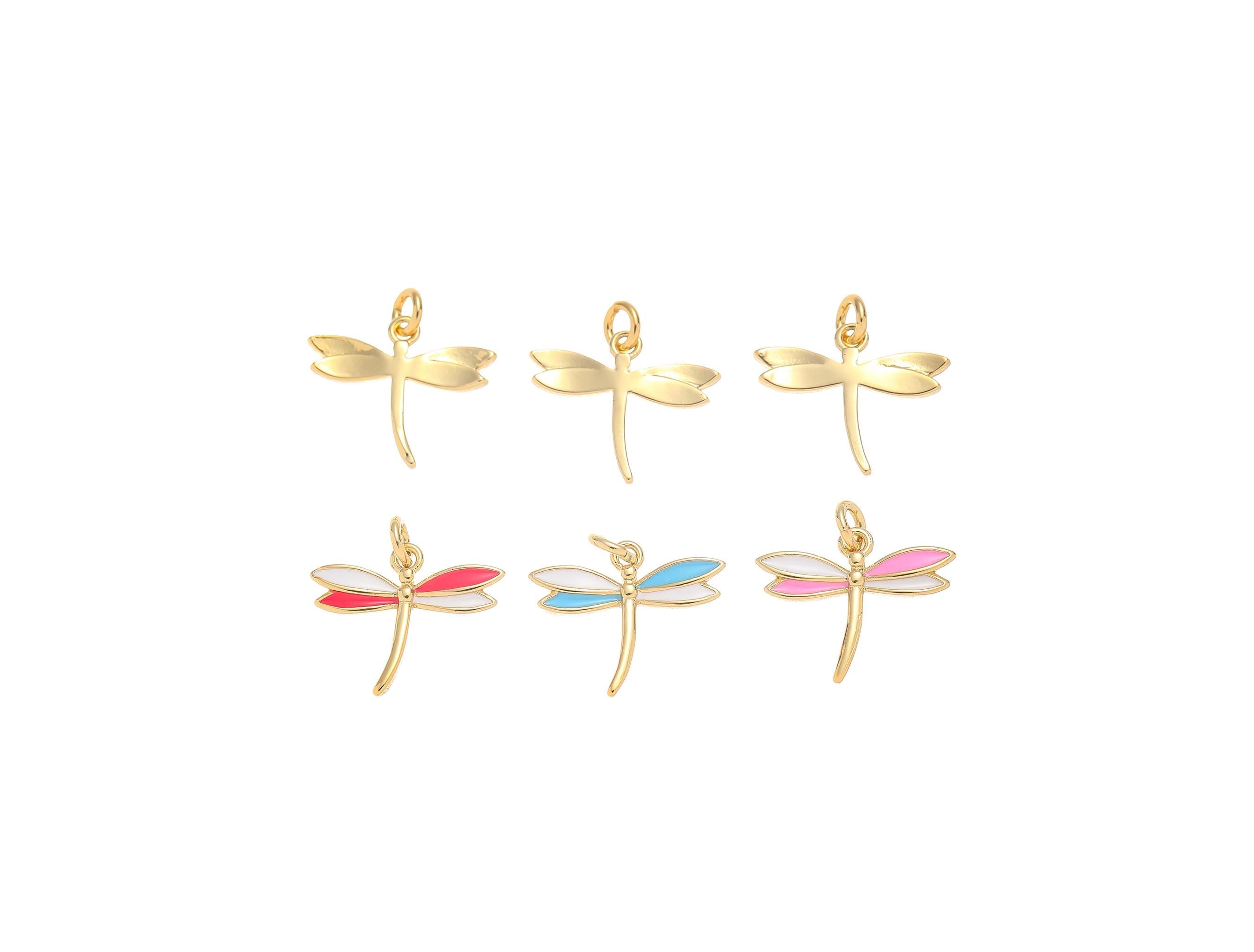 Gold Enamel Dragonfly Charm,Red Blue Pink Dragonfly Charms,Dainty Dragonfly Charm For Jewelry Making,Enamel Dragonfly Charm,CPG1561