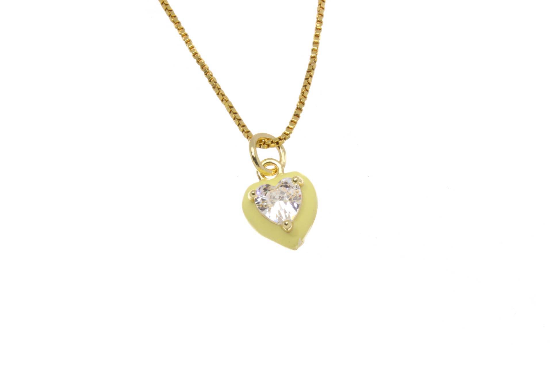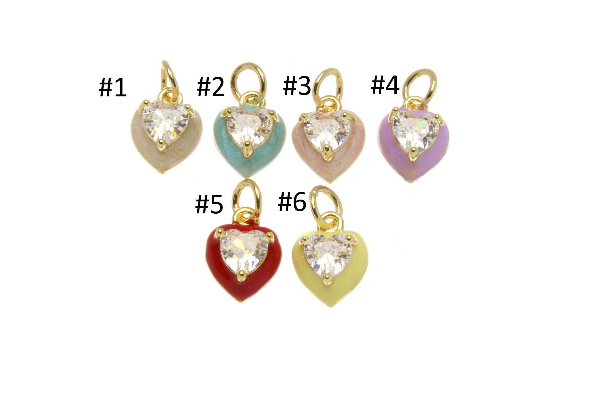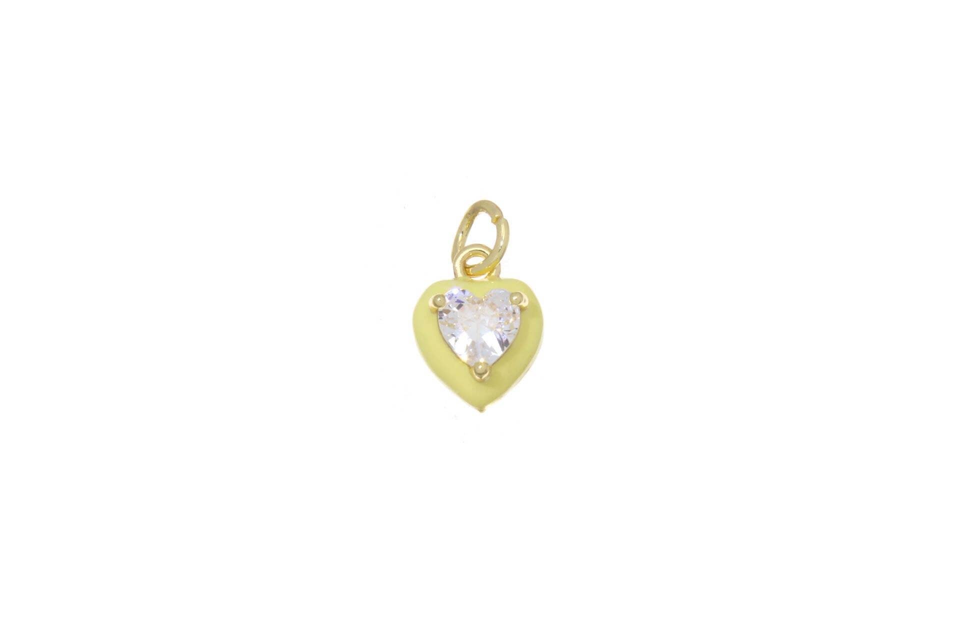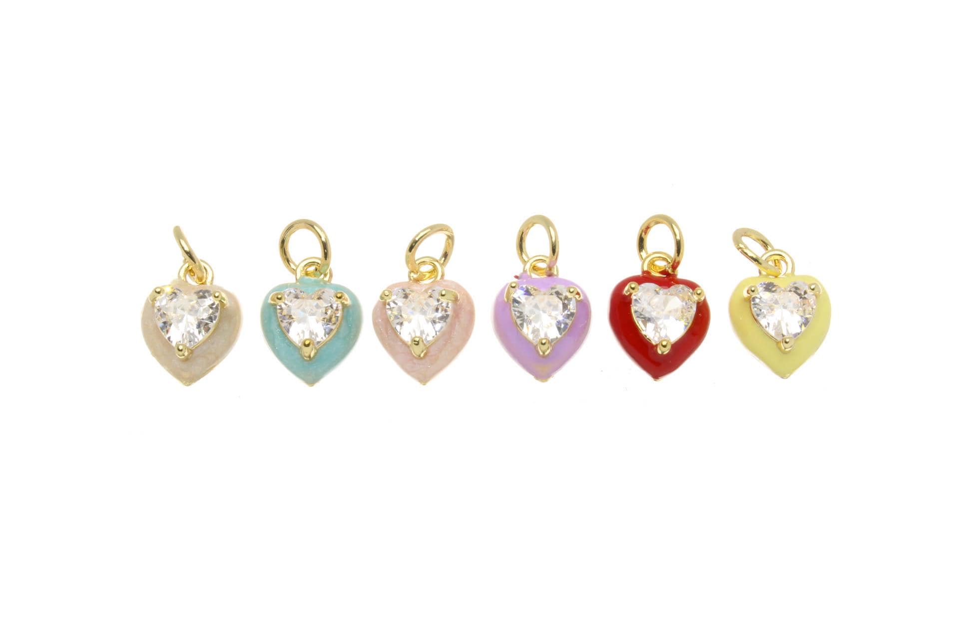 Gold Enamel Heart Charm with CZ for Jewelry Making CPG2671