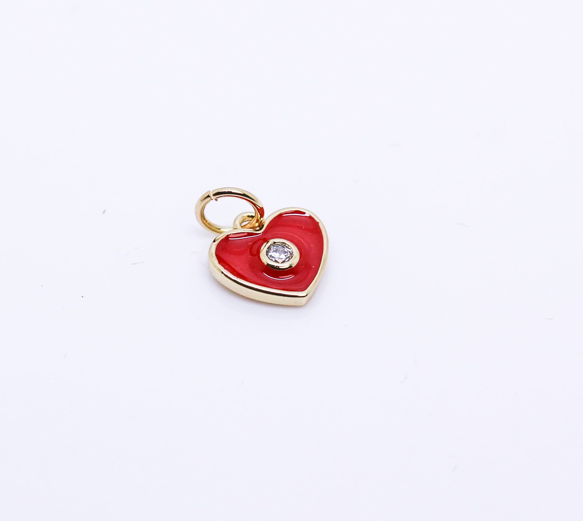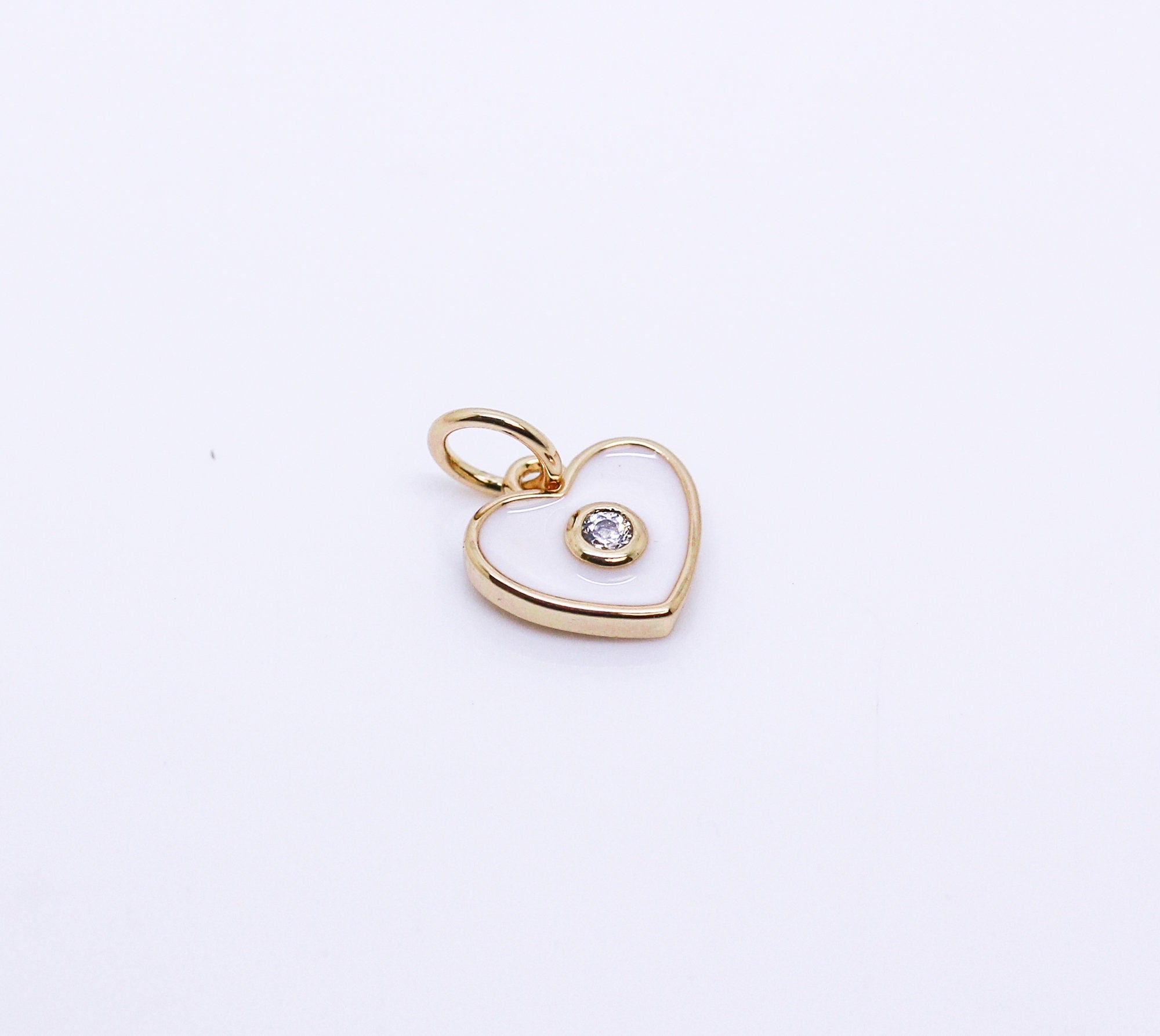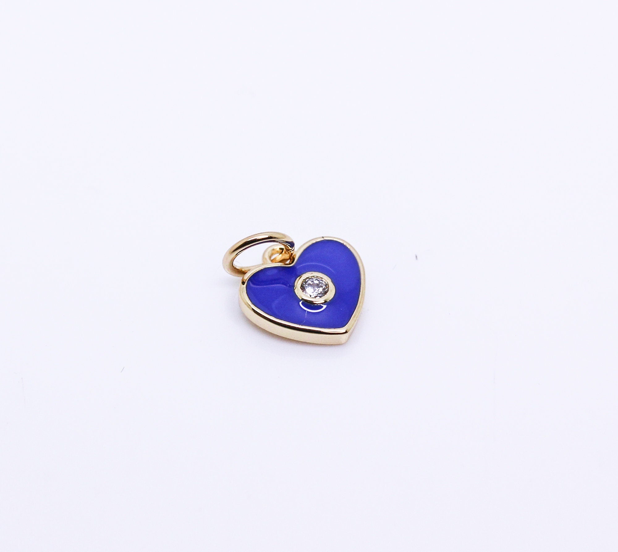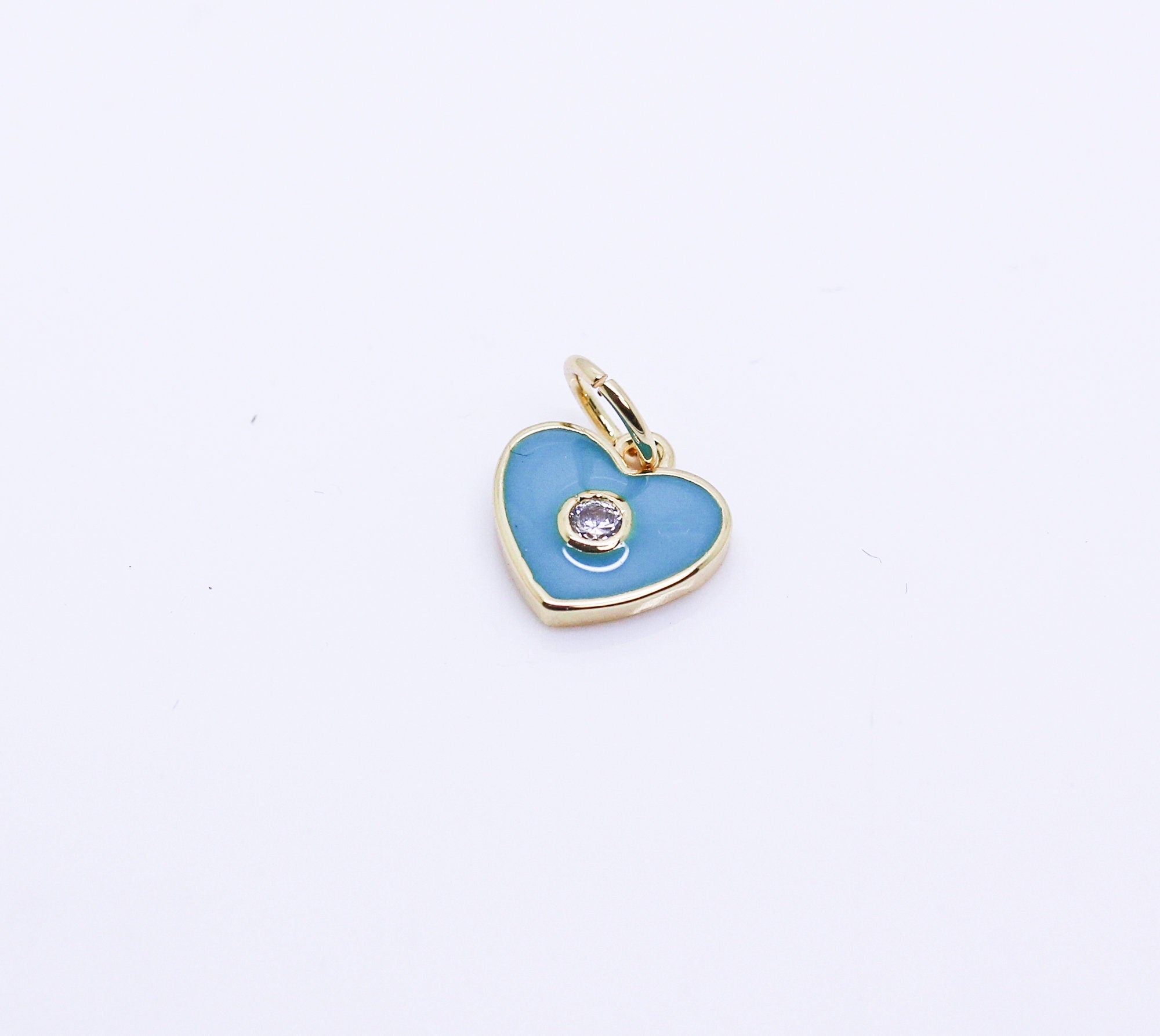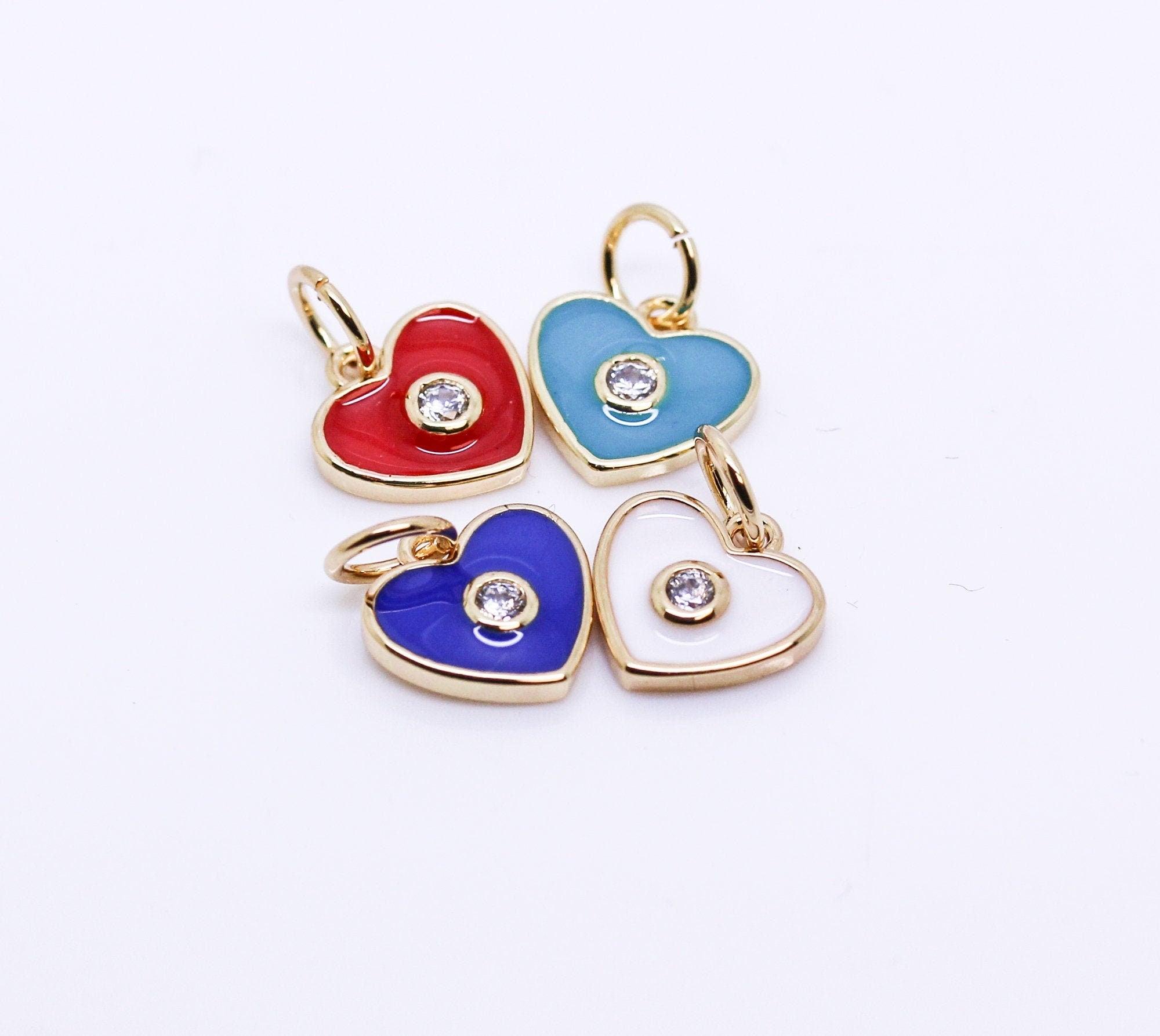 Gold Enamel Hearts with cz stone charm, Red, Navy blue, Turquoise Blue, White, CPG146