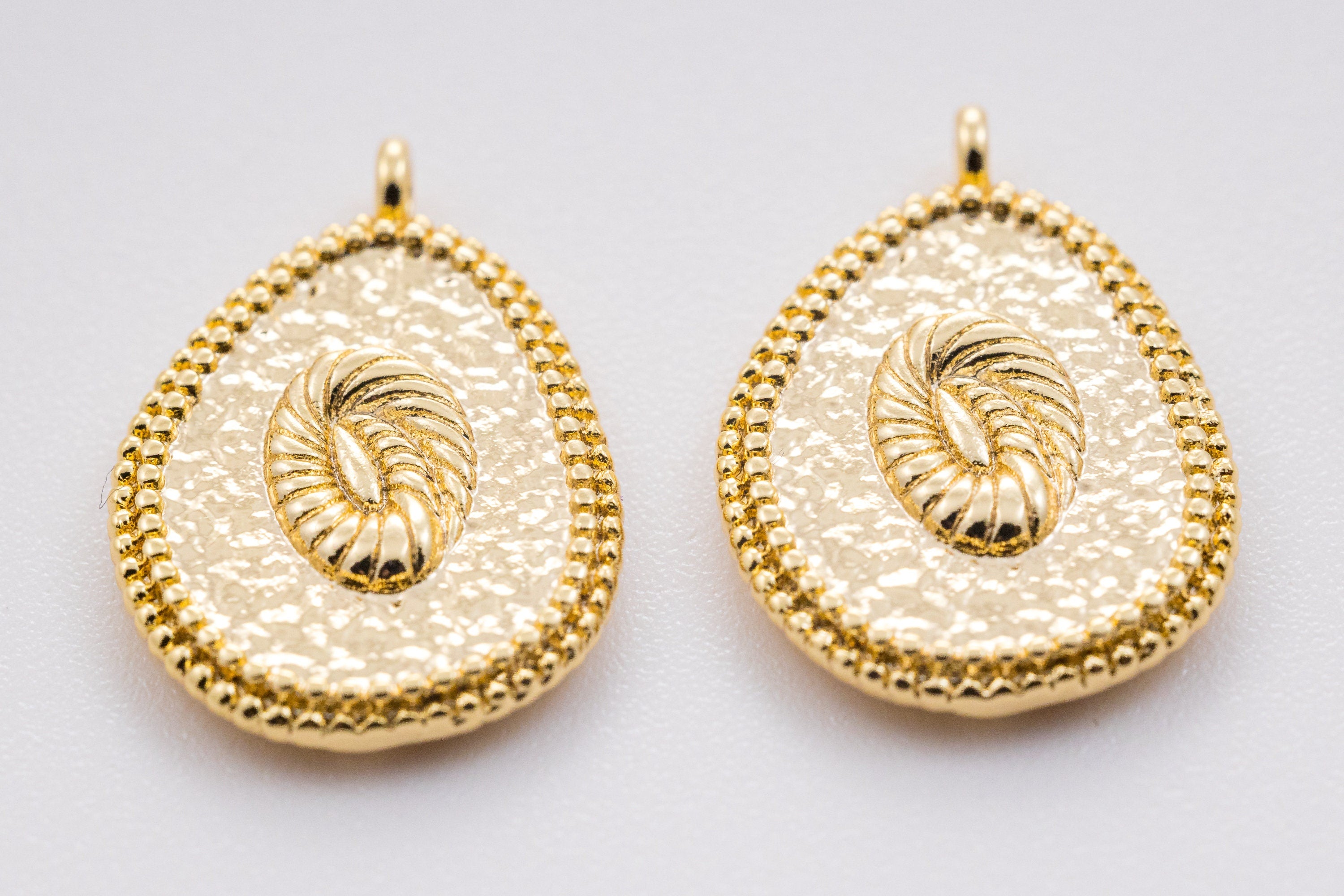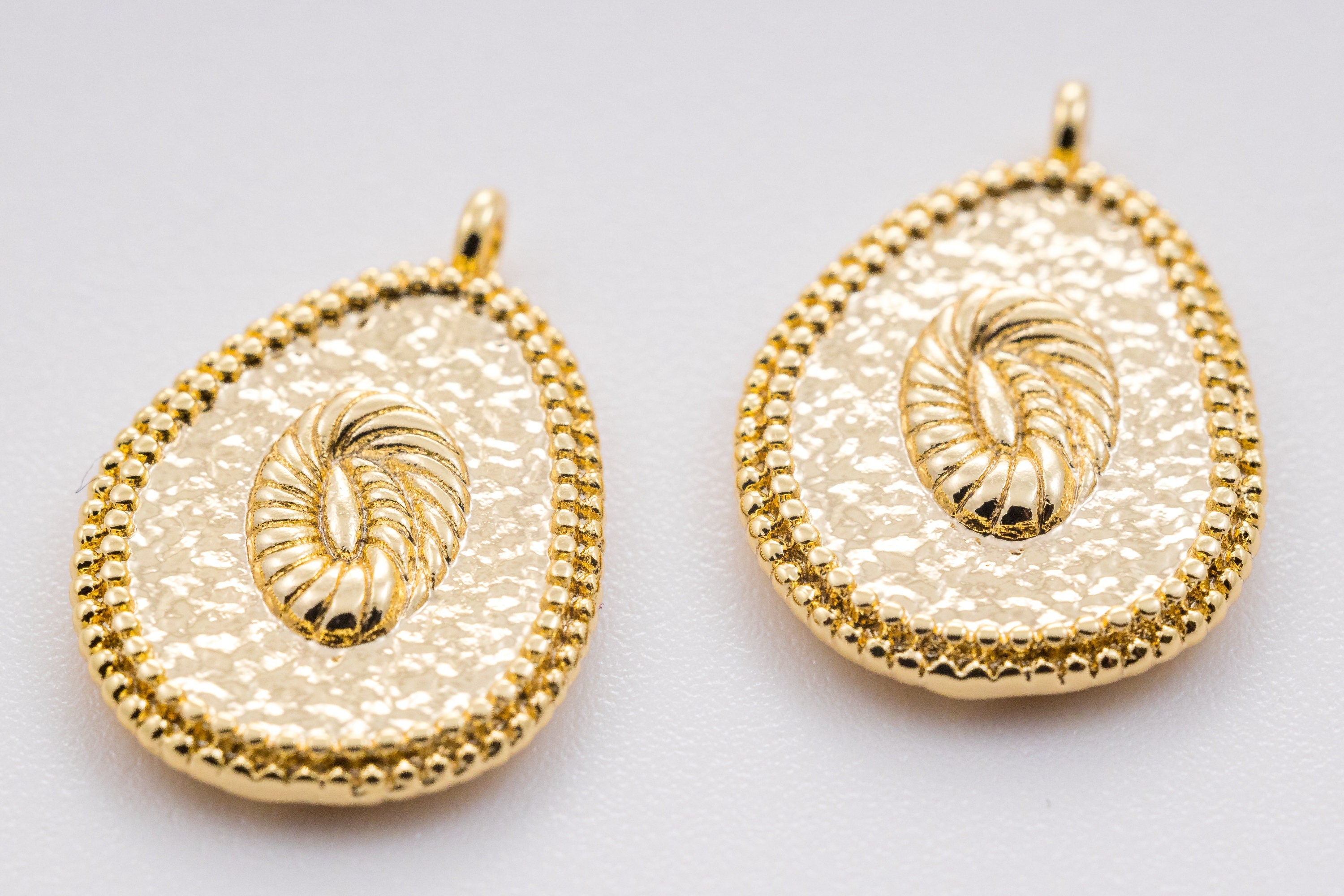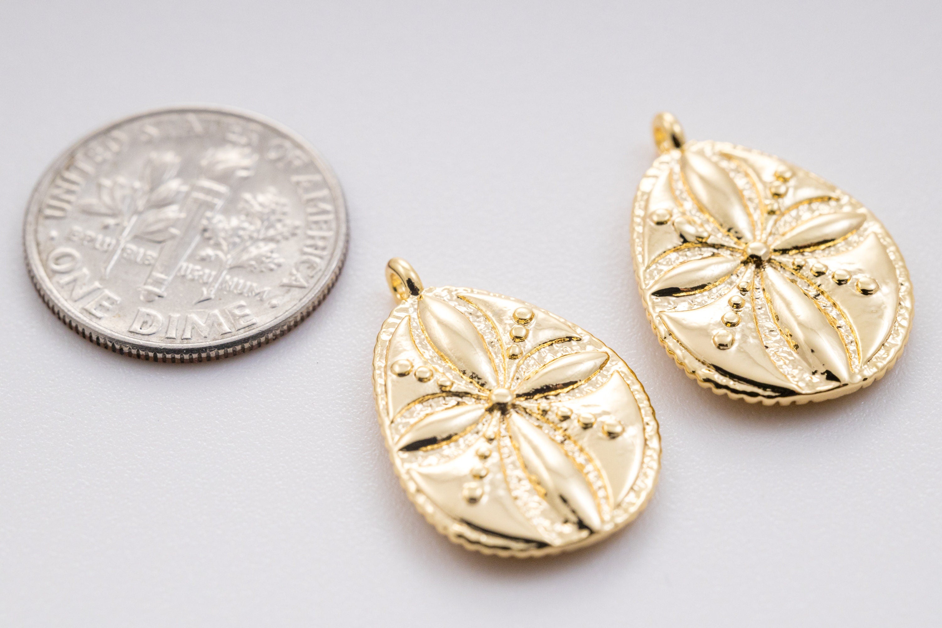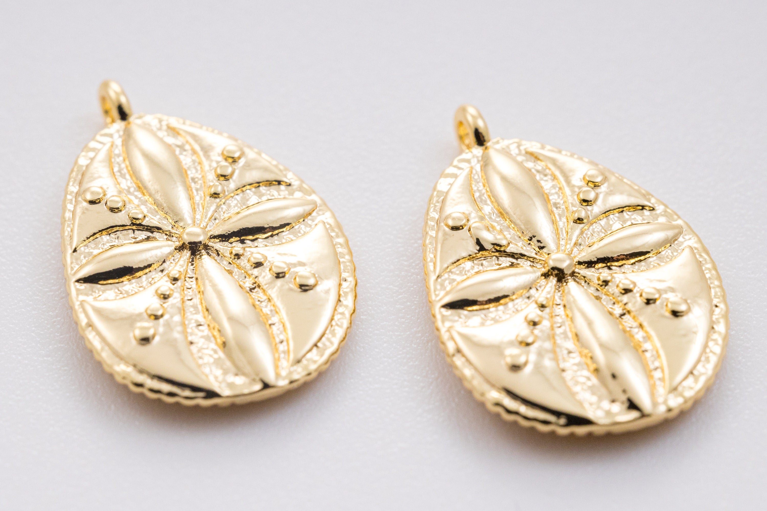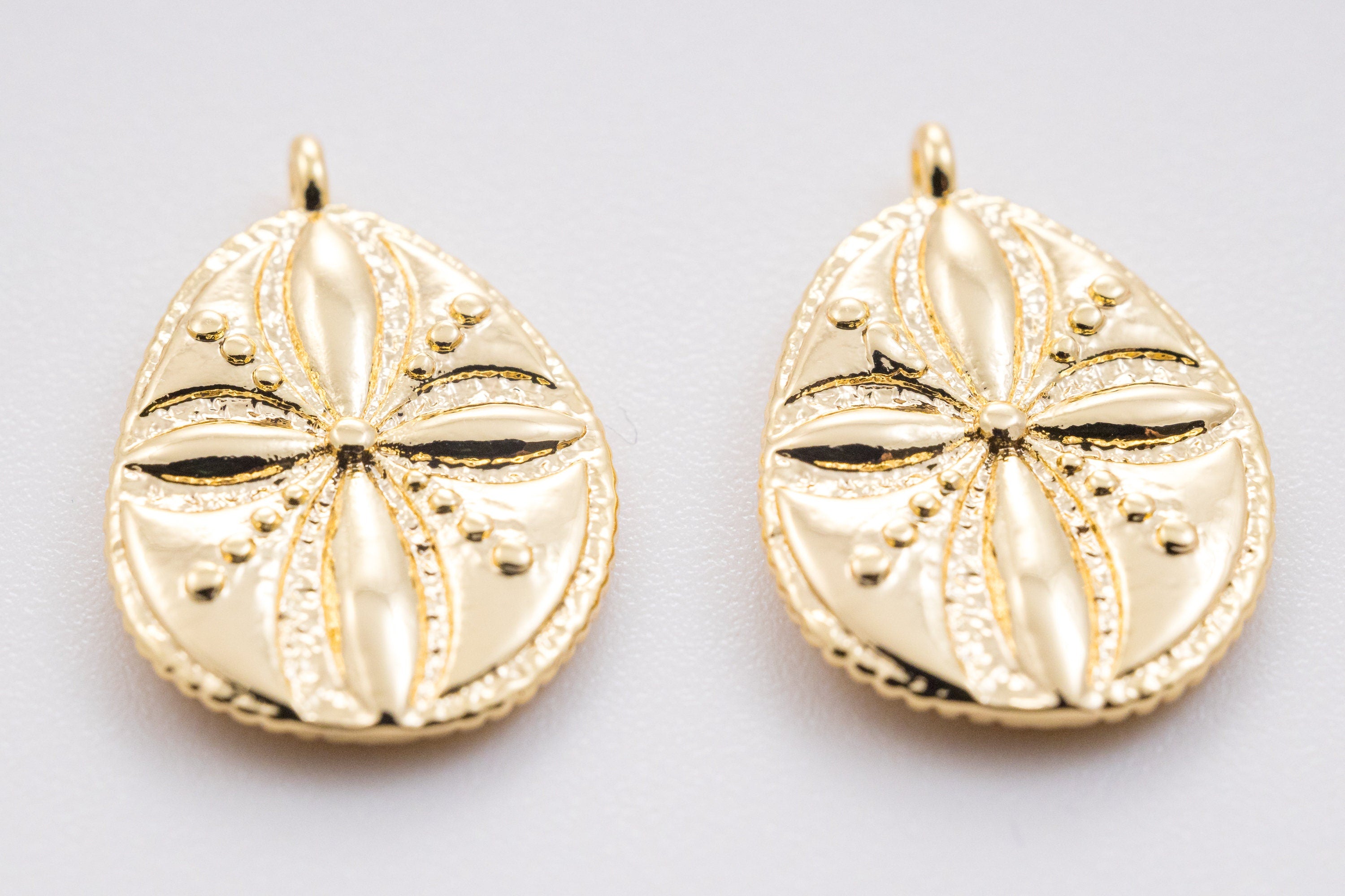 Gold Engraved Flower Oblong Oval Pendant, 15x18mm, Spring or Summer Vibe, Floral Charm, Summer Jewelry,CPG363