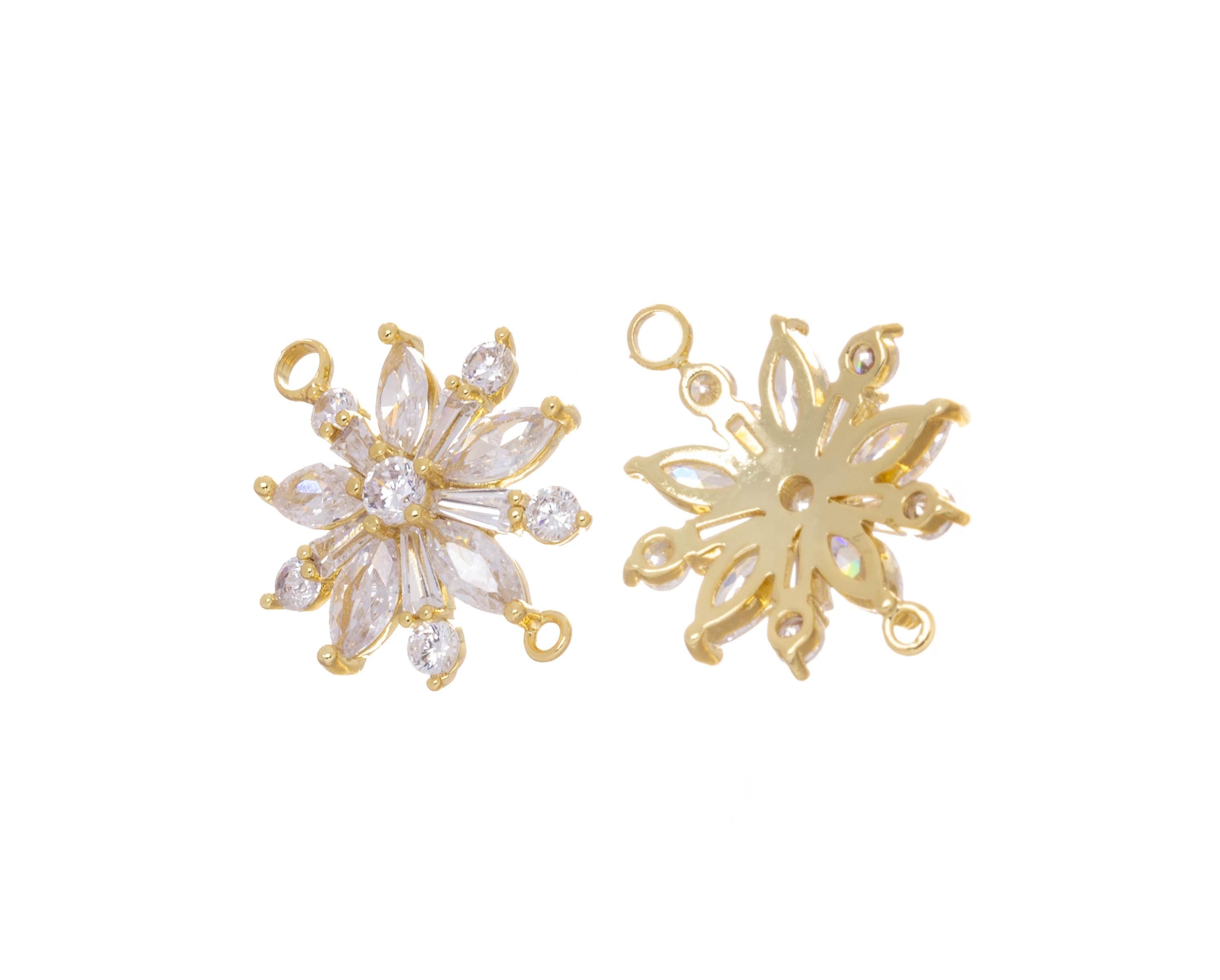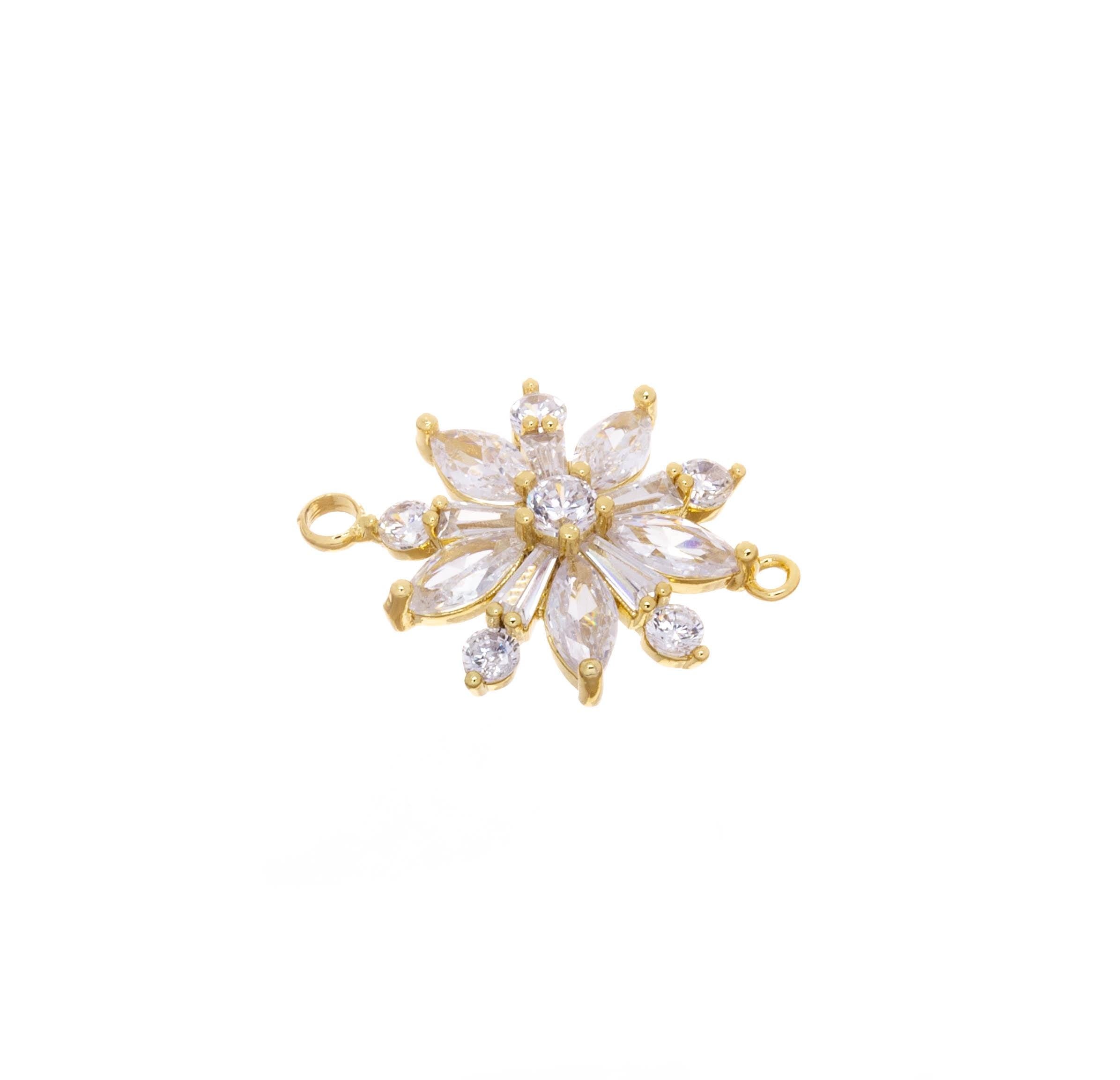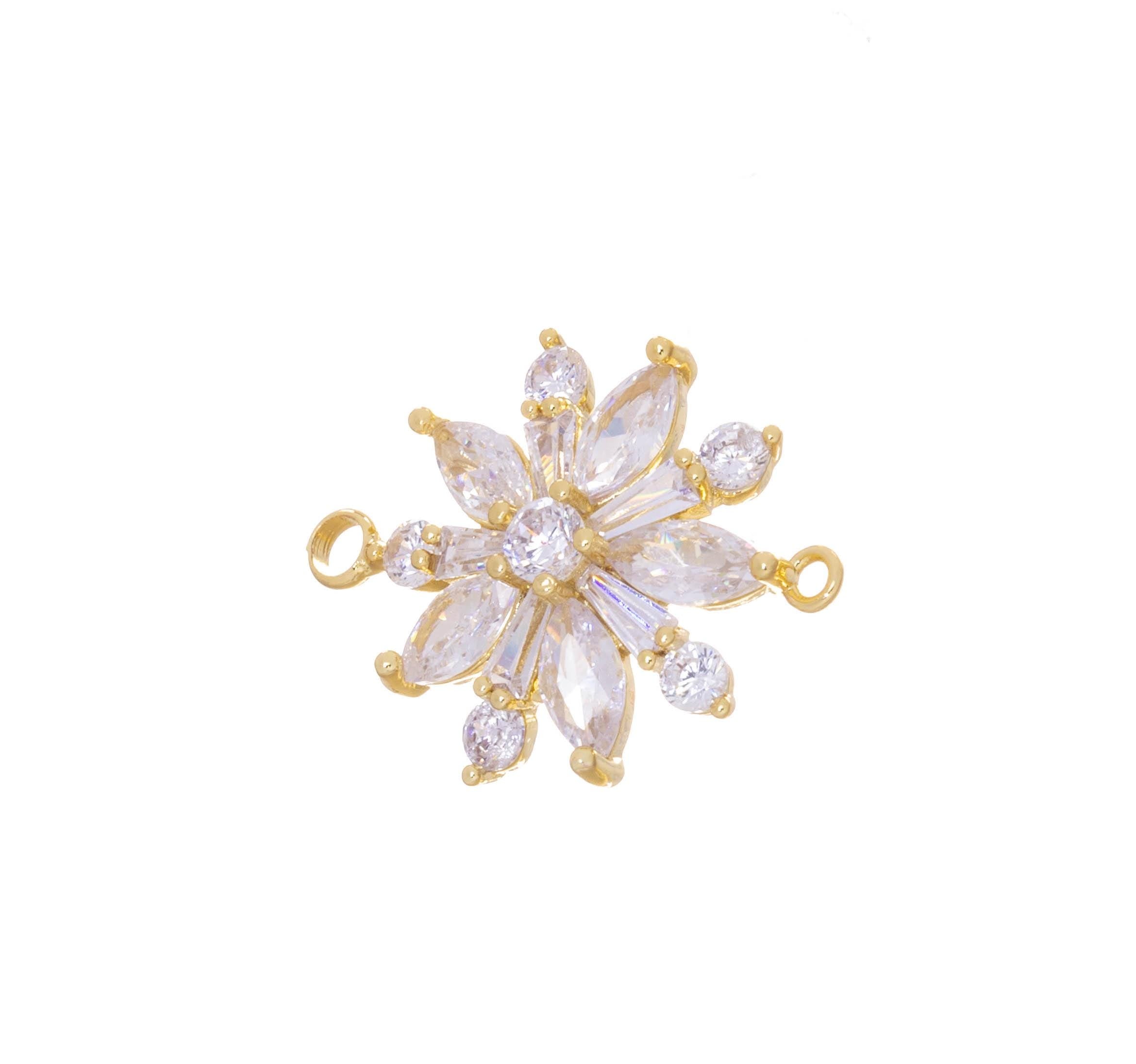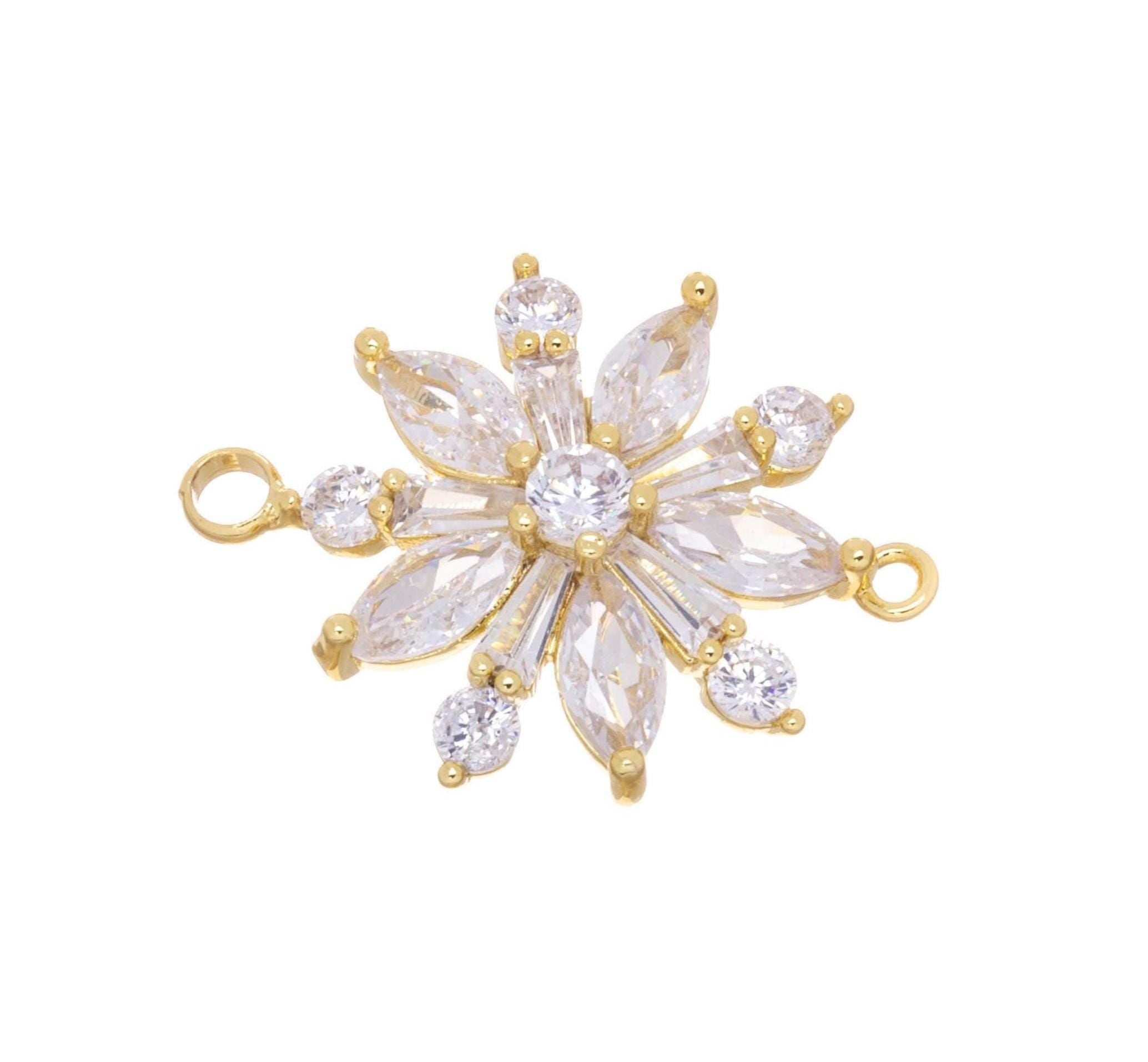 Gold Flower Connector Charm,CZ Flower Connector Charm For Bracelet,Flower Charm For Jewelry Making,Double Ring Flower Connector Charm,CNG629