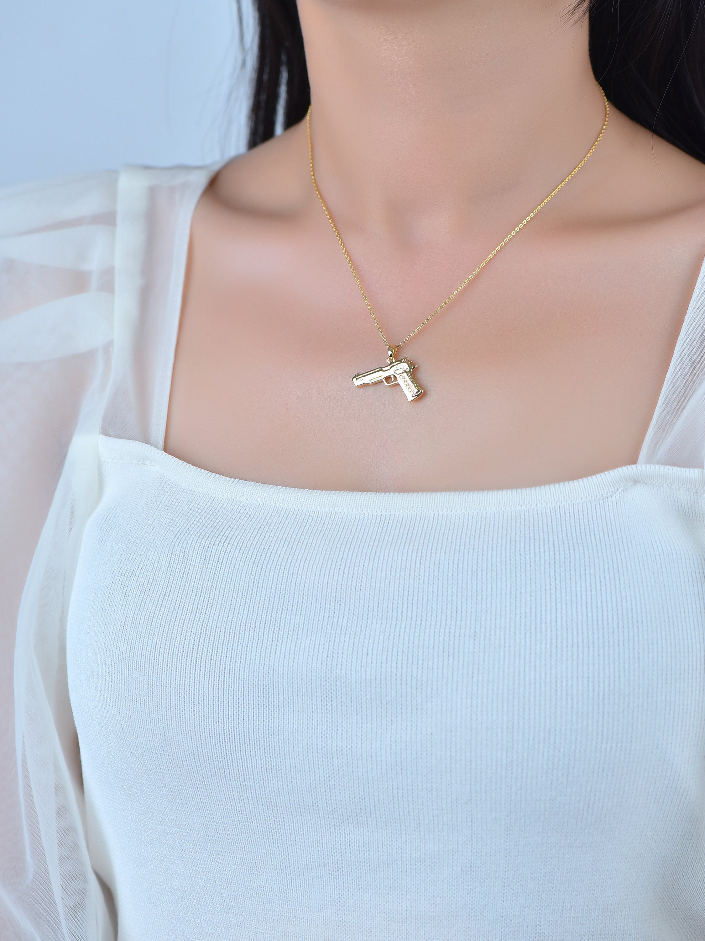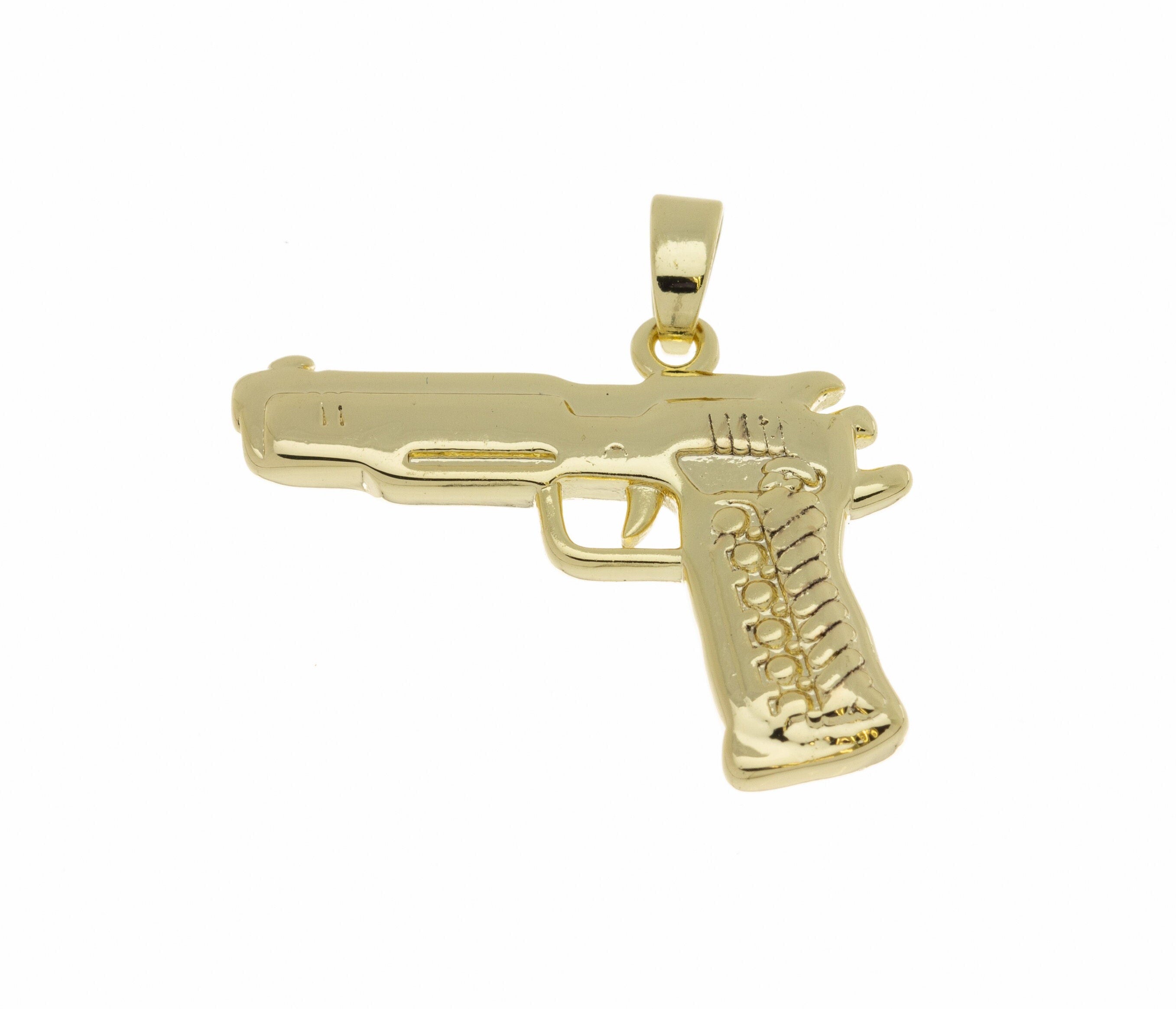 Gold Hand Gun Charm,High polished Shiny Gold Pistol Pendant CPG421