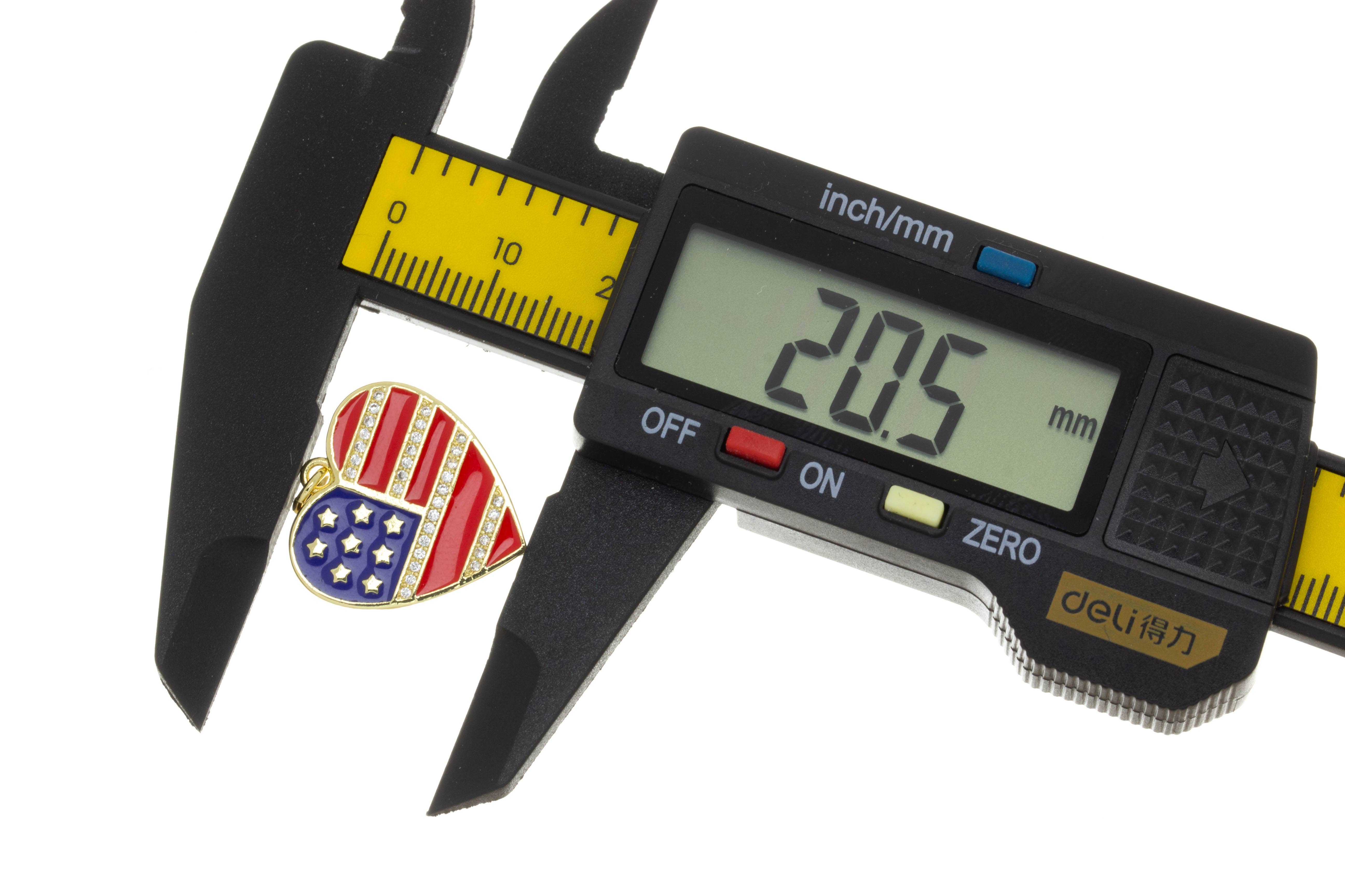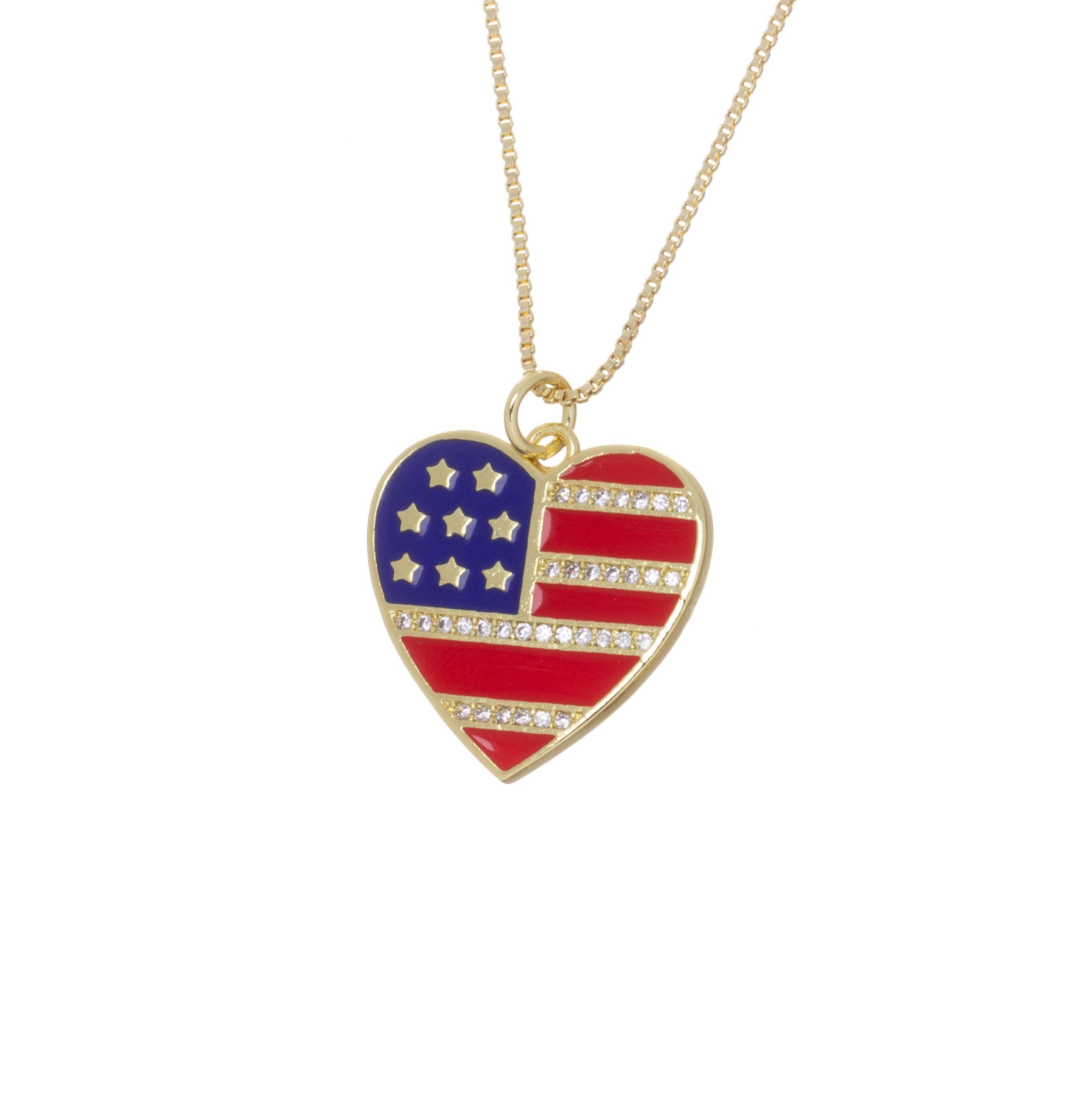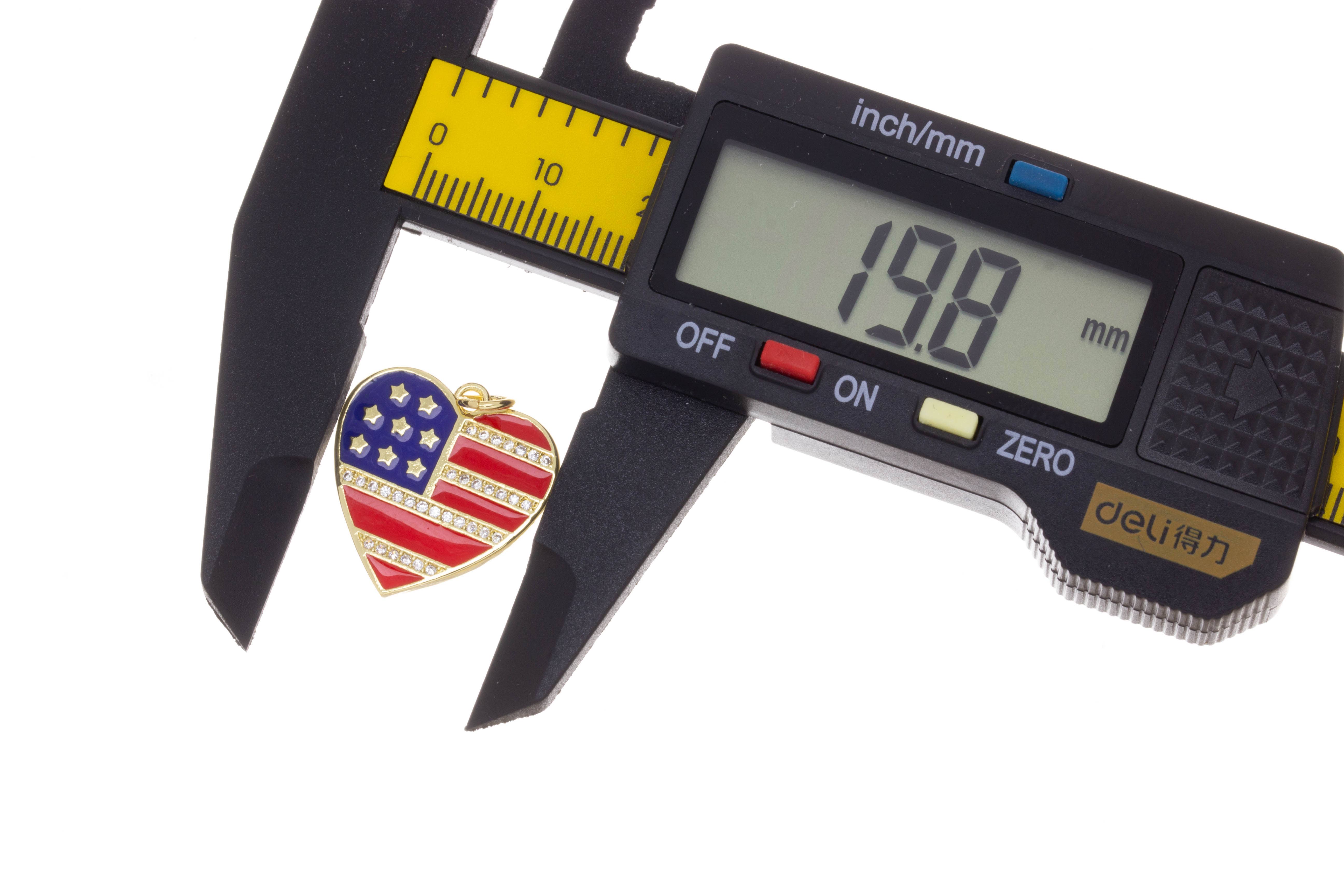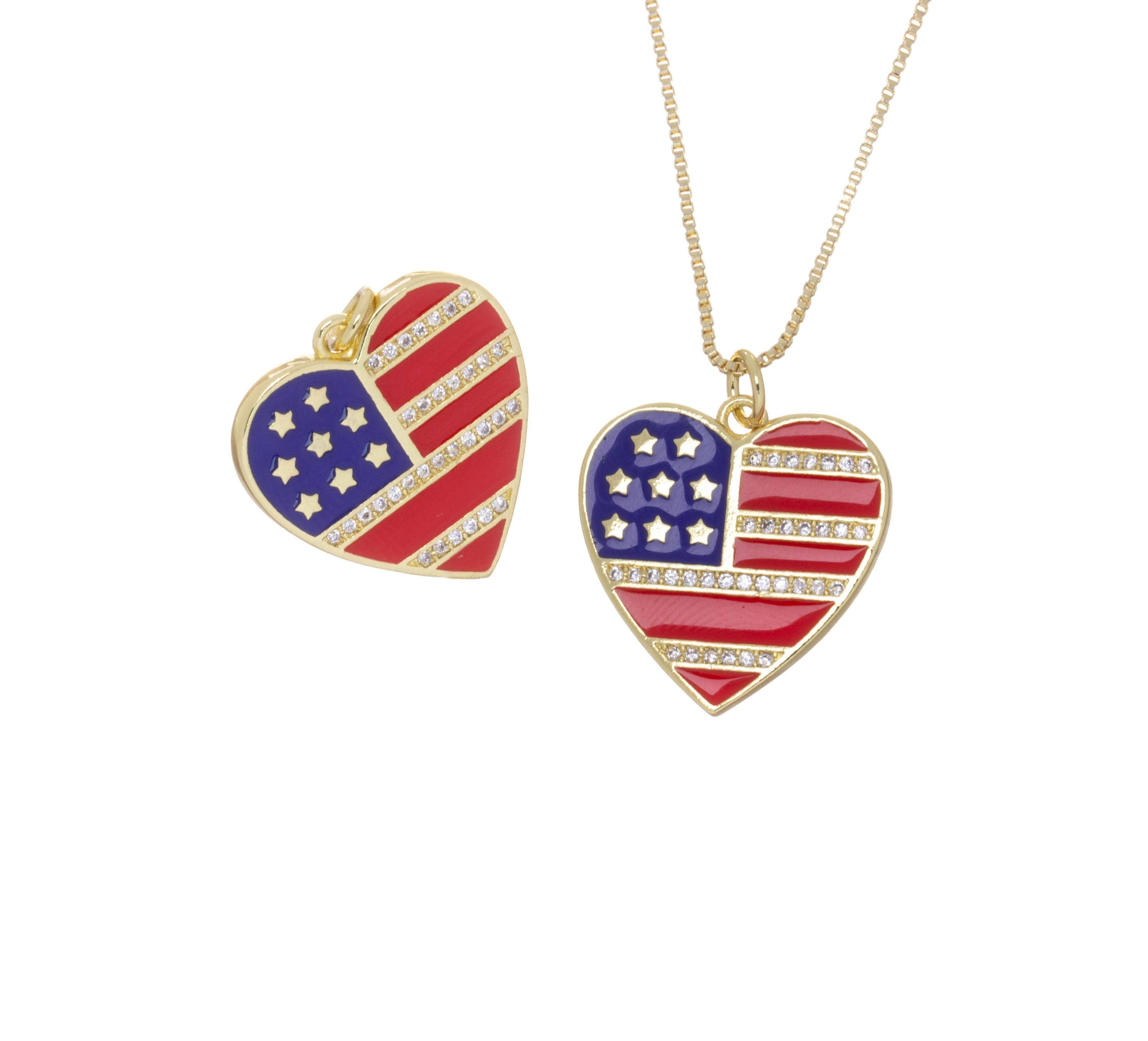 Gold Heart USA American Flag Charm For Necklace Or Earrings Making ,High Polished Shiny Finished, Red White And Blue Enamel,CPG2736