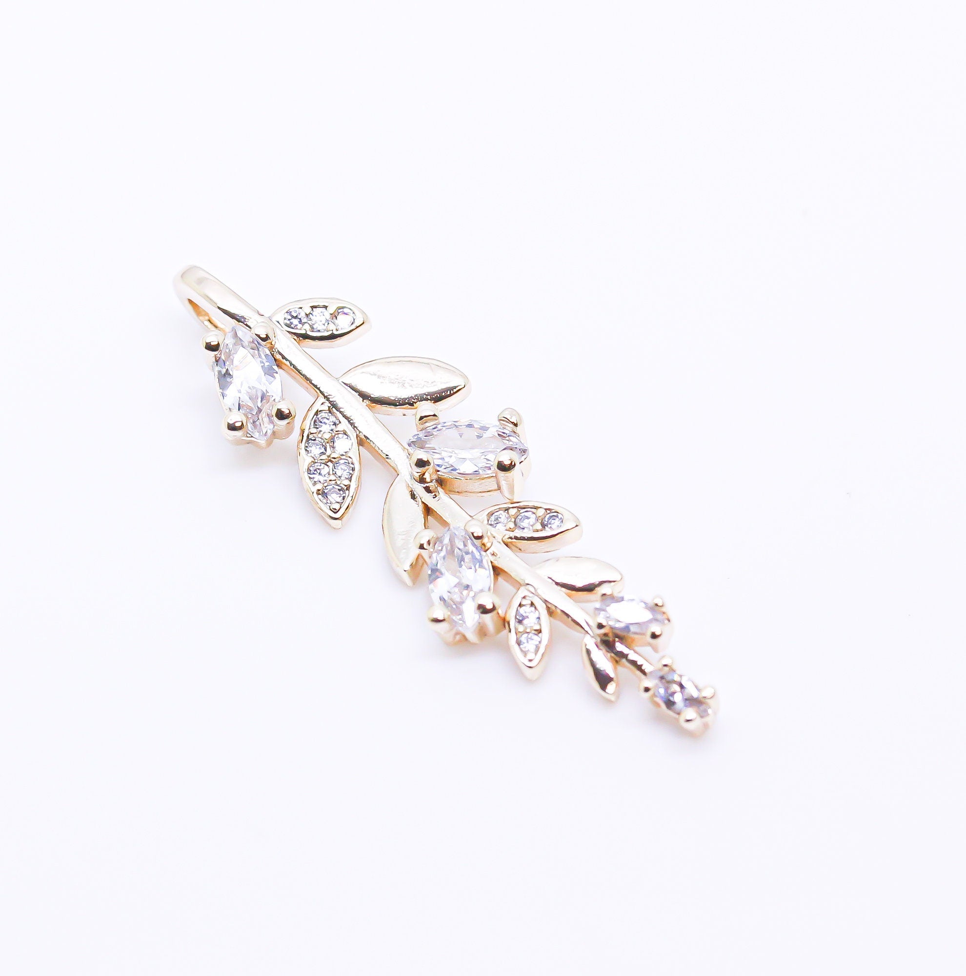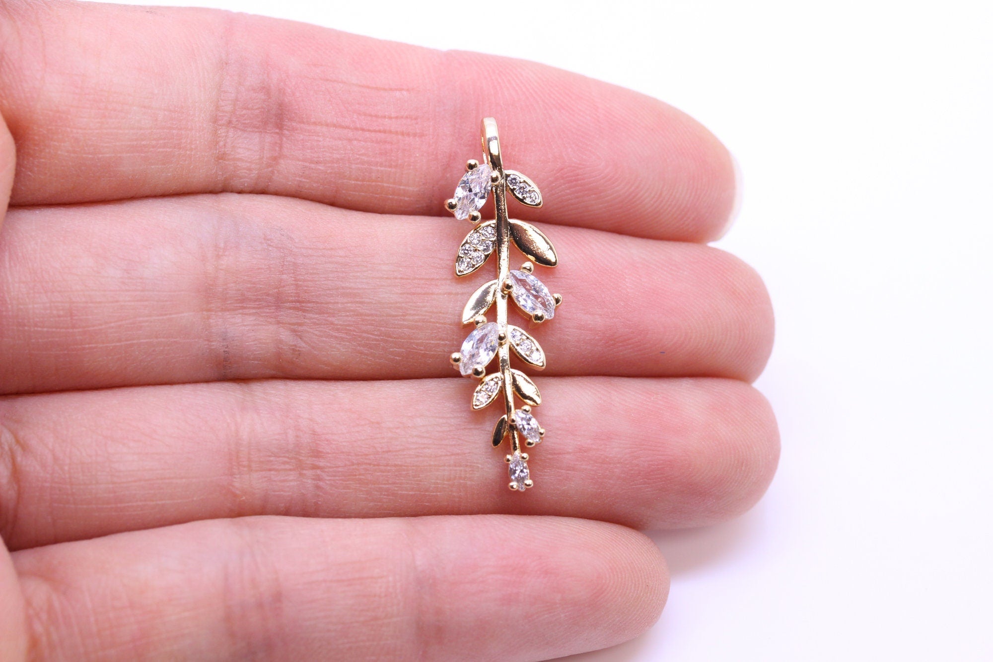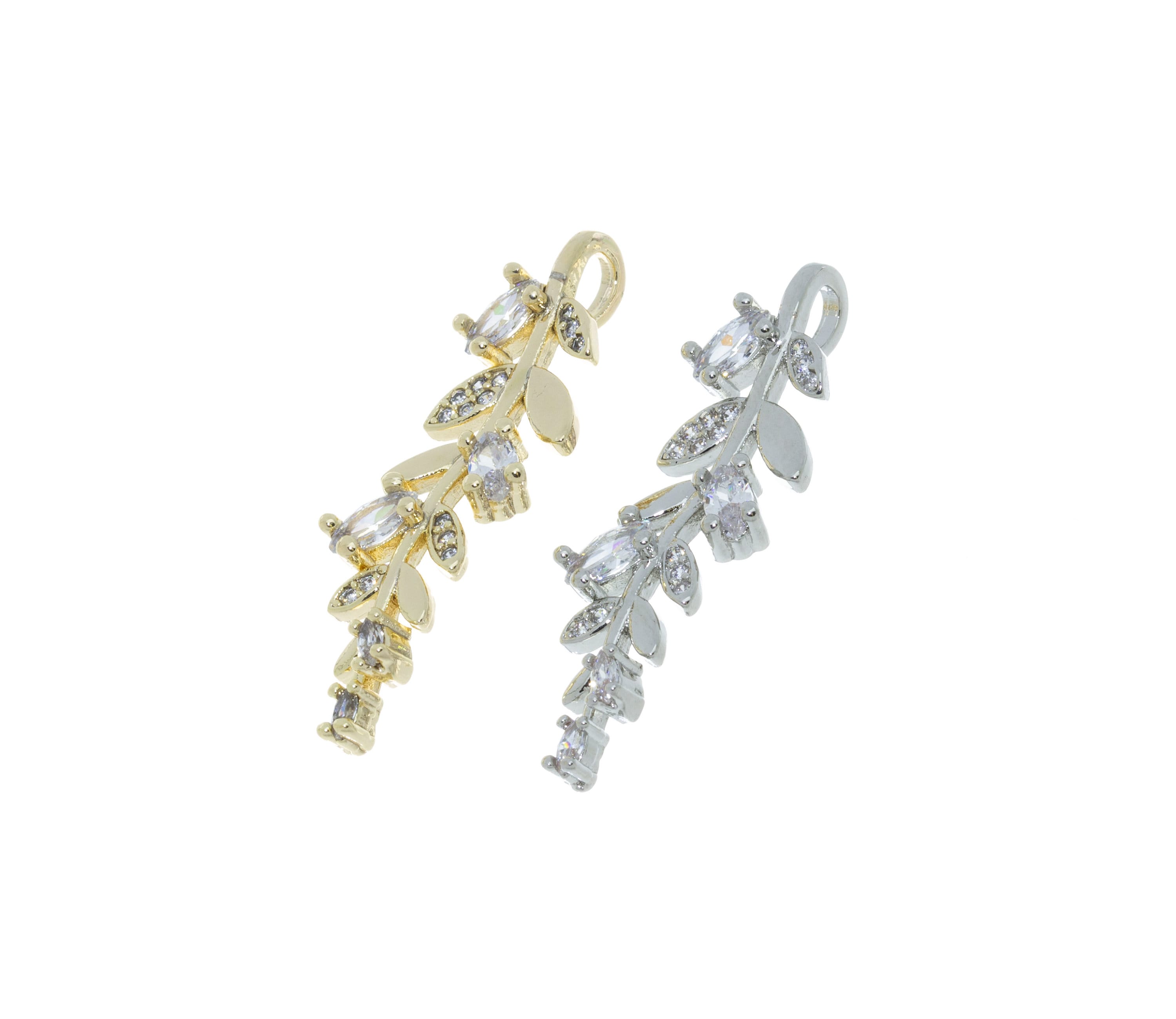 Gold Leaf Charm,Vine Gold leaf, CZ Leaf Pendant, CPG275-CPS275