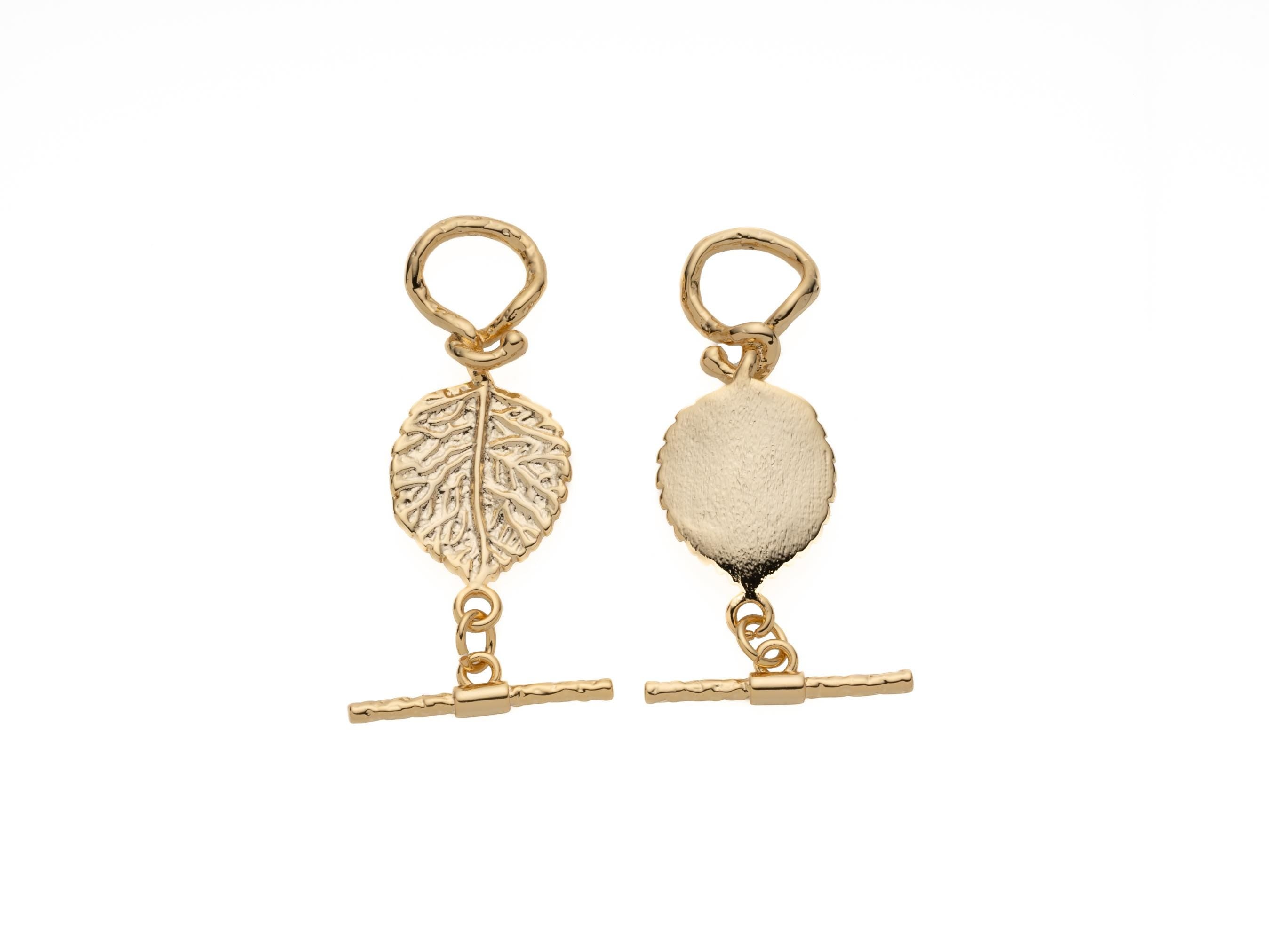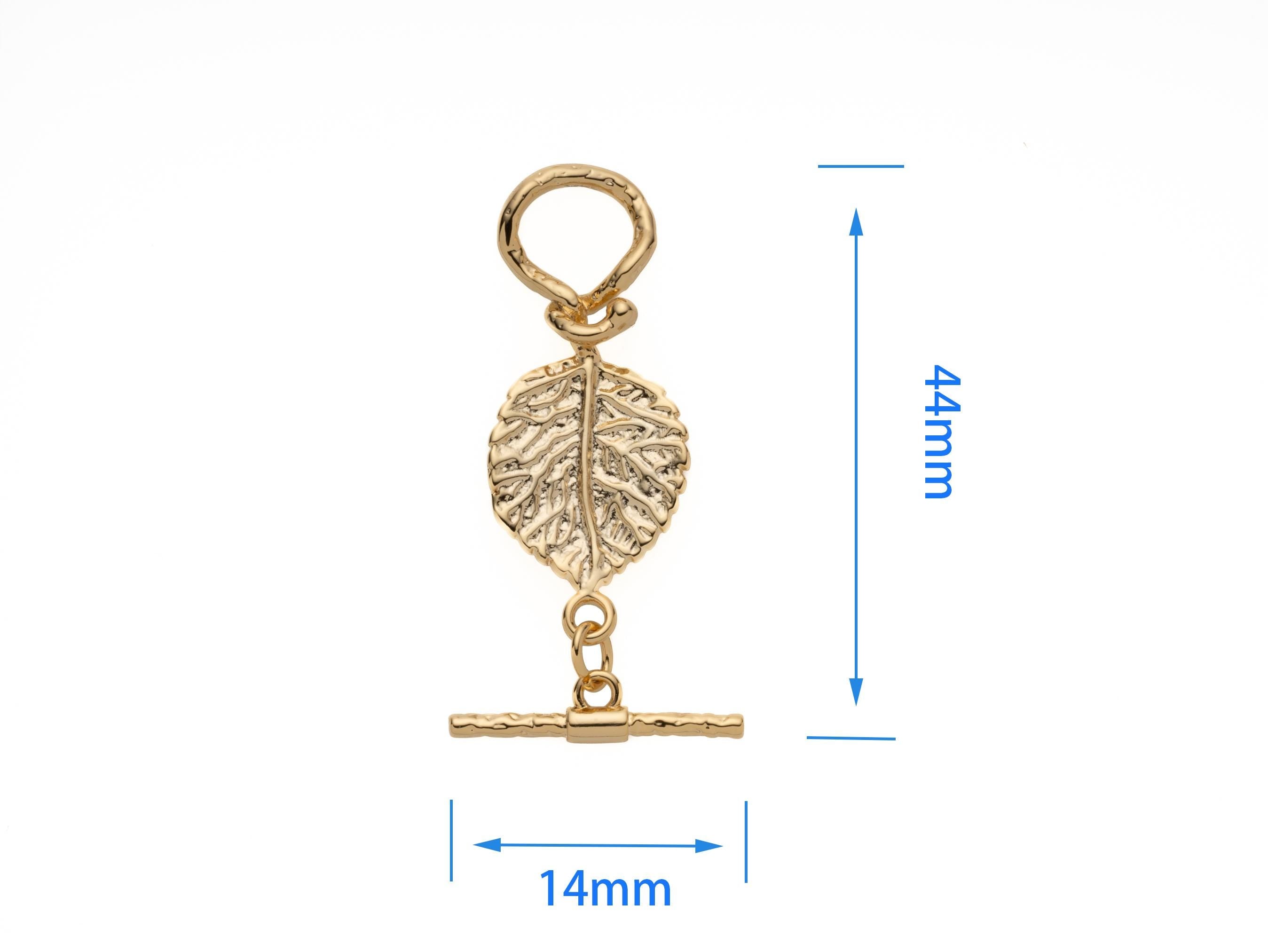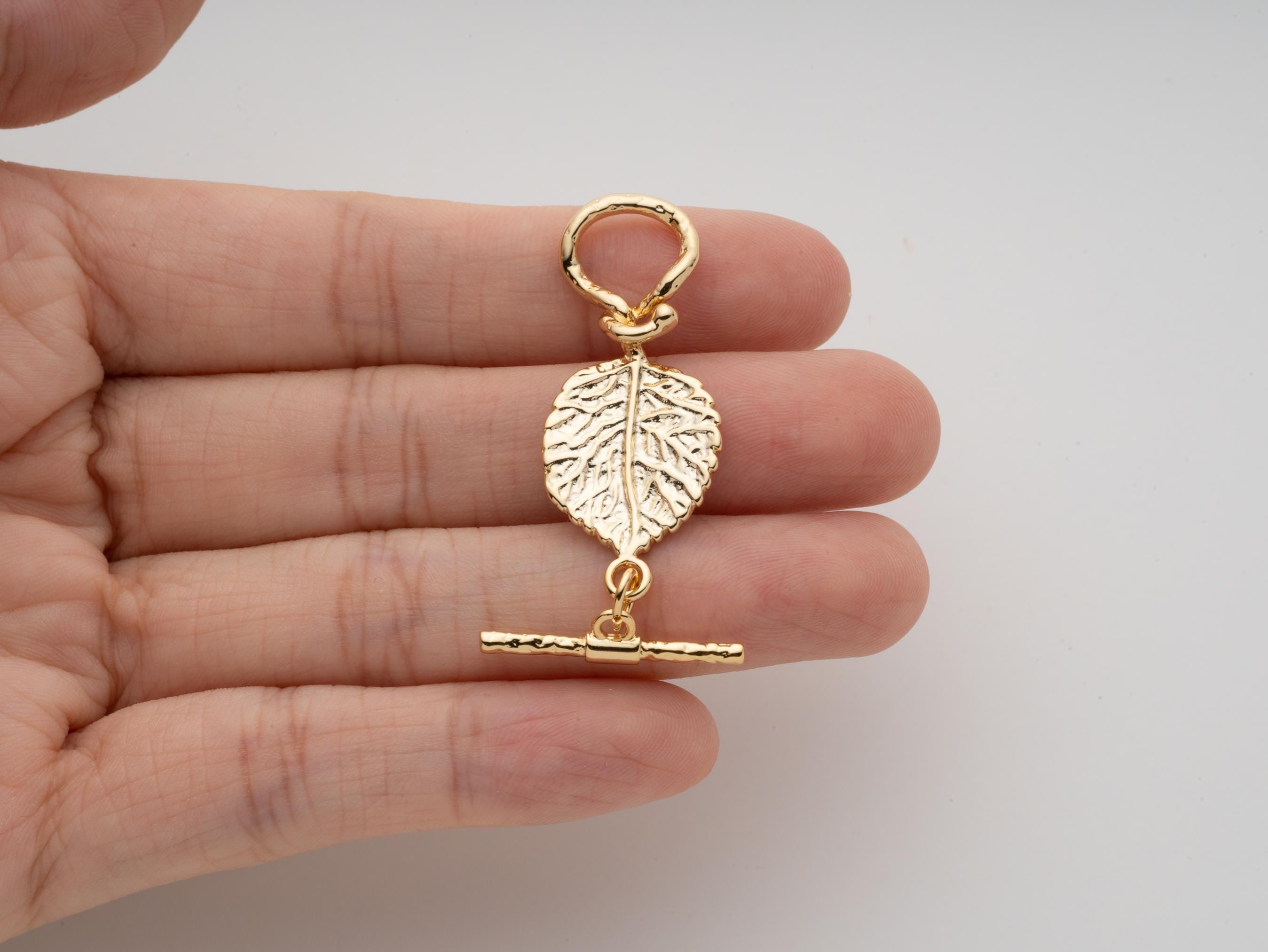 Gold leaf toggle clasp, textured toggle. gold leaf connector, leaf O bar clasp, CPG2110