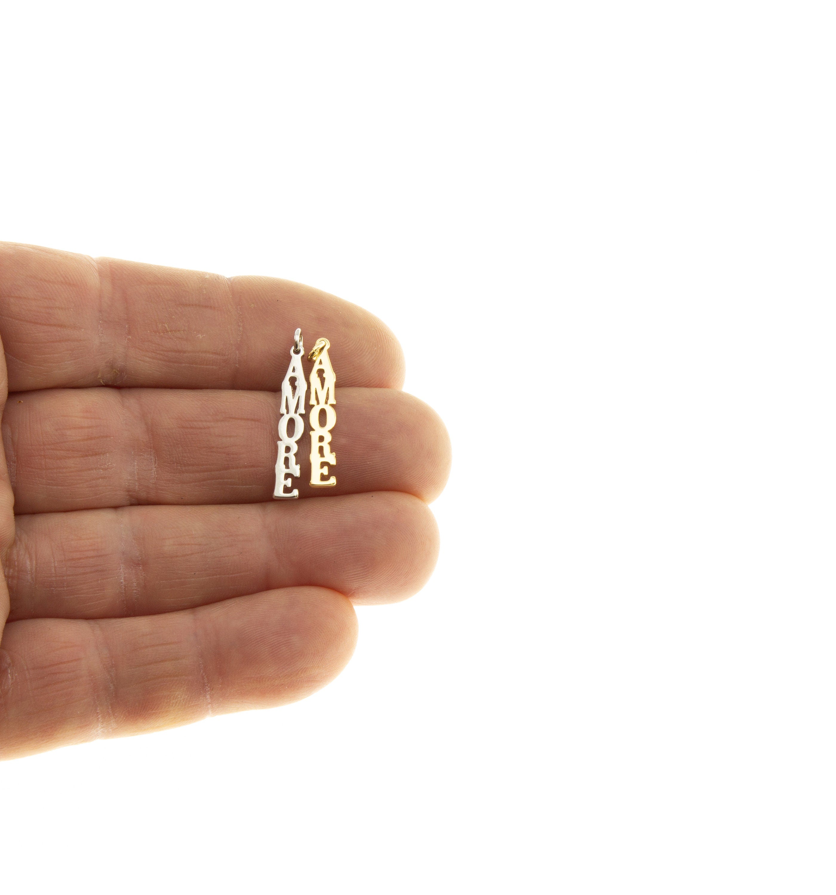 Gold or Silver AMORE Writing charm, Dainty Wording Charm ,Silver AMORE Word Charm,CPG051,CPS051