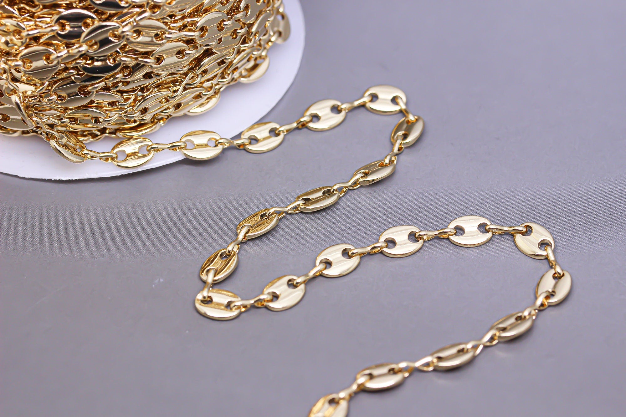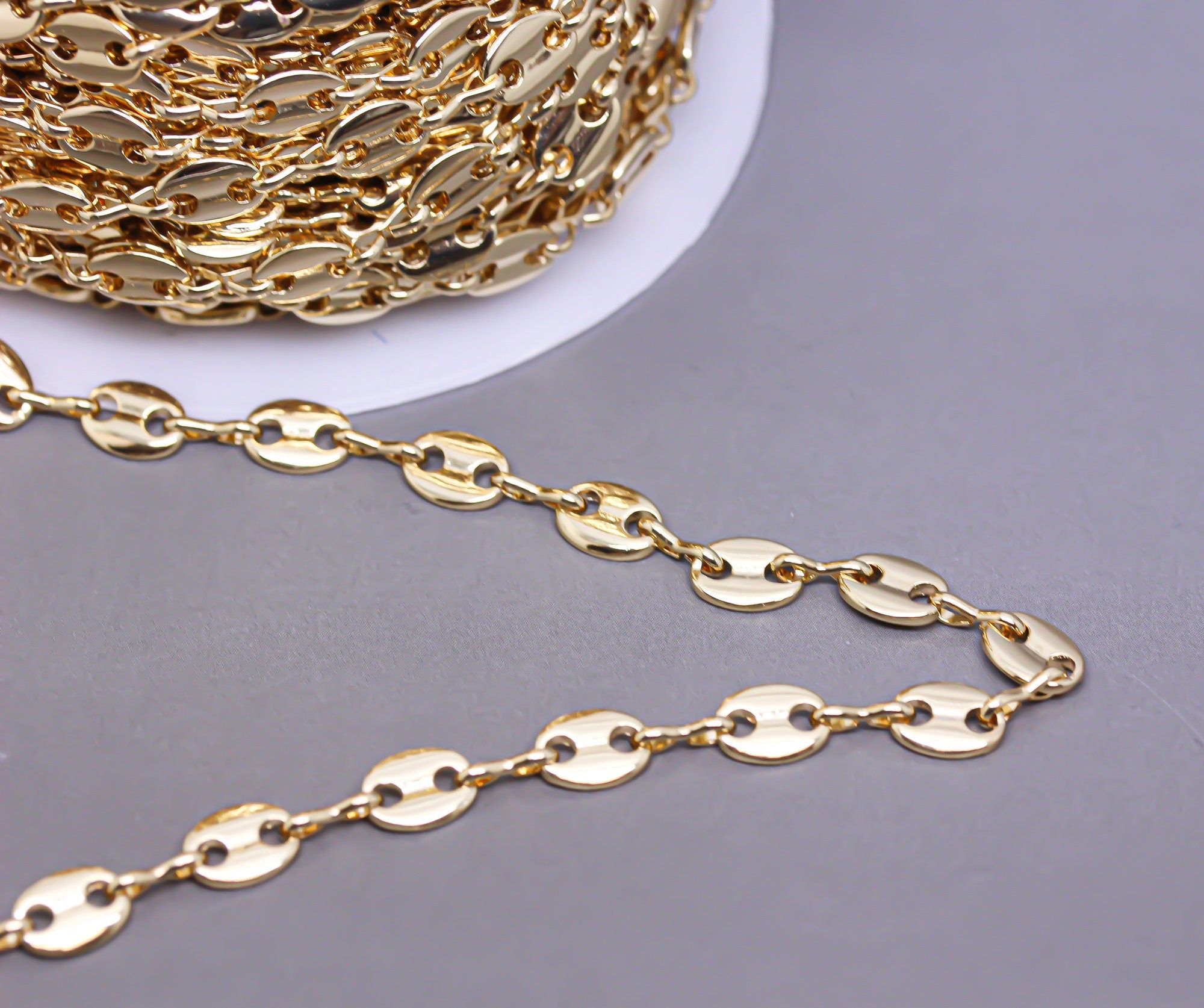 Gold or Silver Button Chain, Infinity link Chain, Button Oval Link Chain, 7x5.5mm,CHG043-CHS043