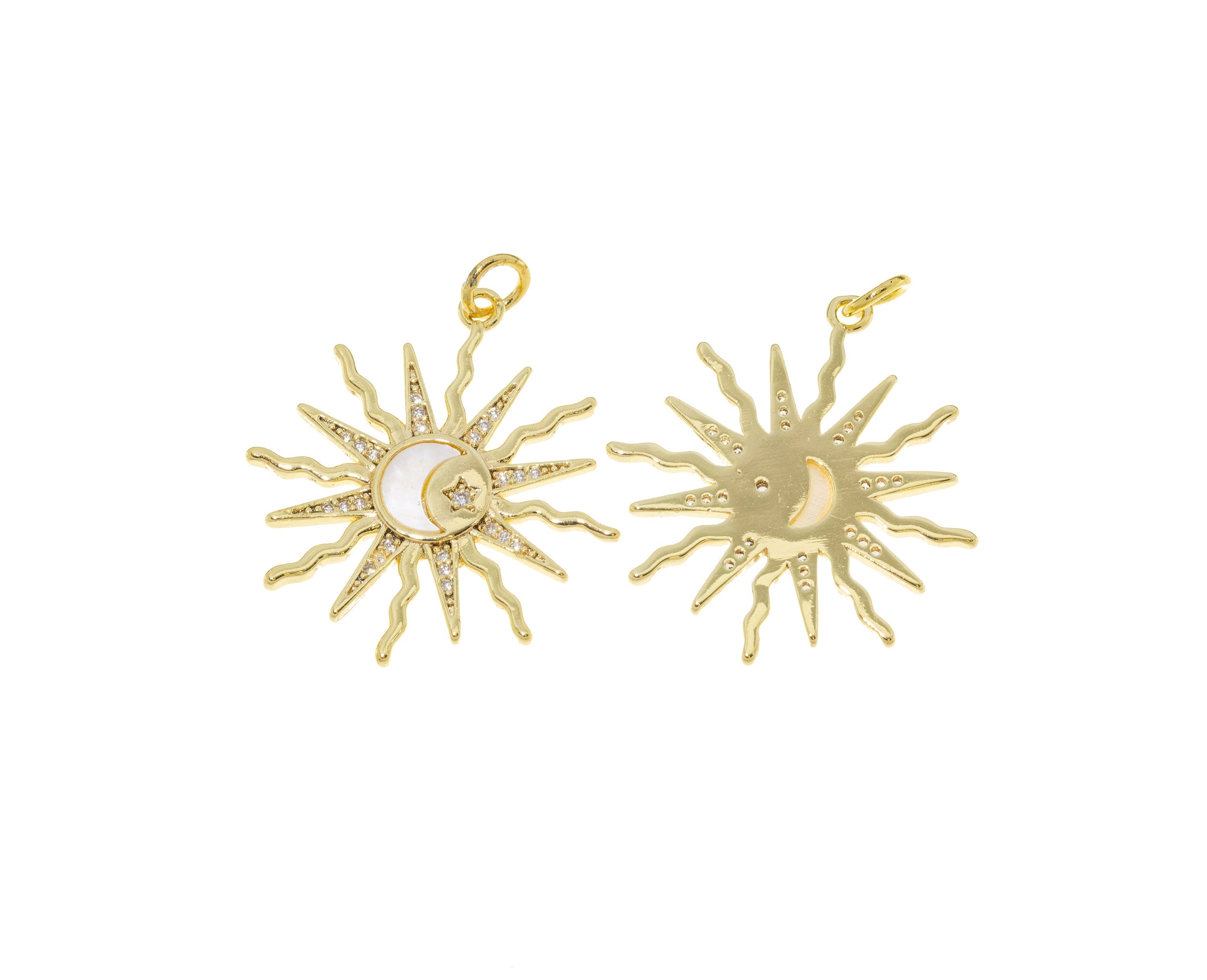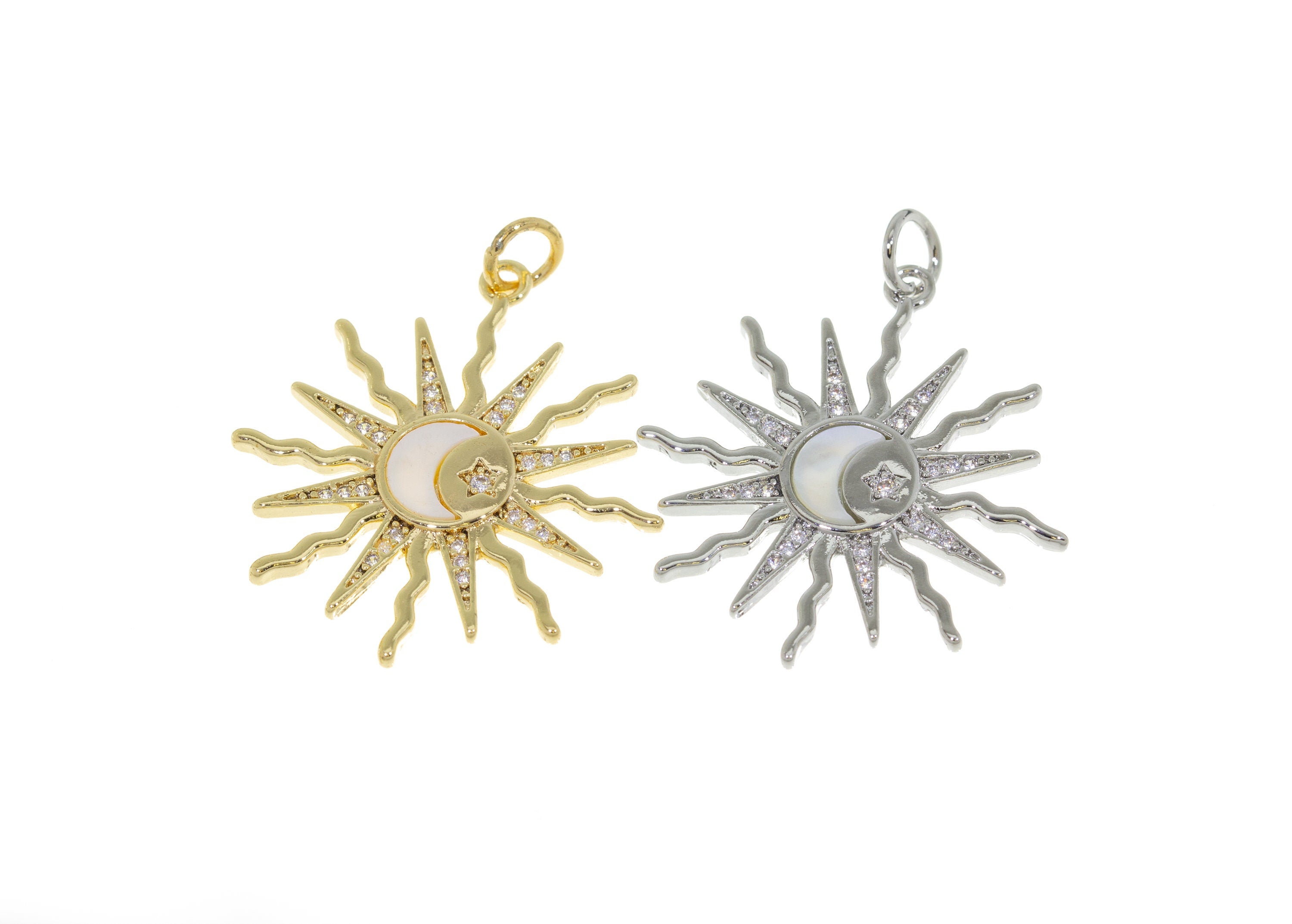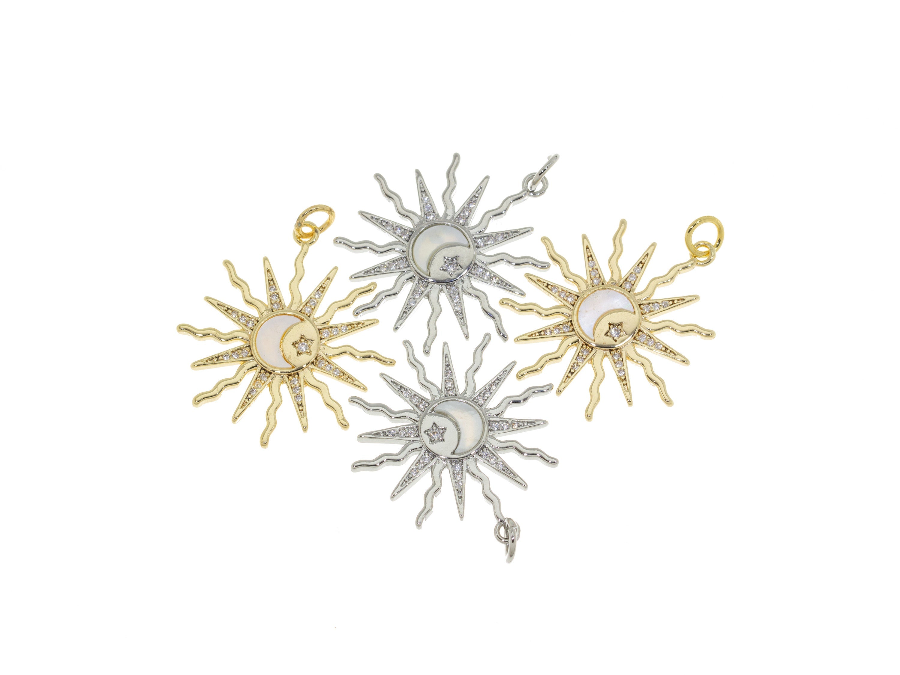 Gold Or Silver Crescent Moon And Star Charm,Star And Moon Charm With Mother Of Pearl Inlay,Dainty Gold Celestial CZ Charm,CPG613-CPS613
