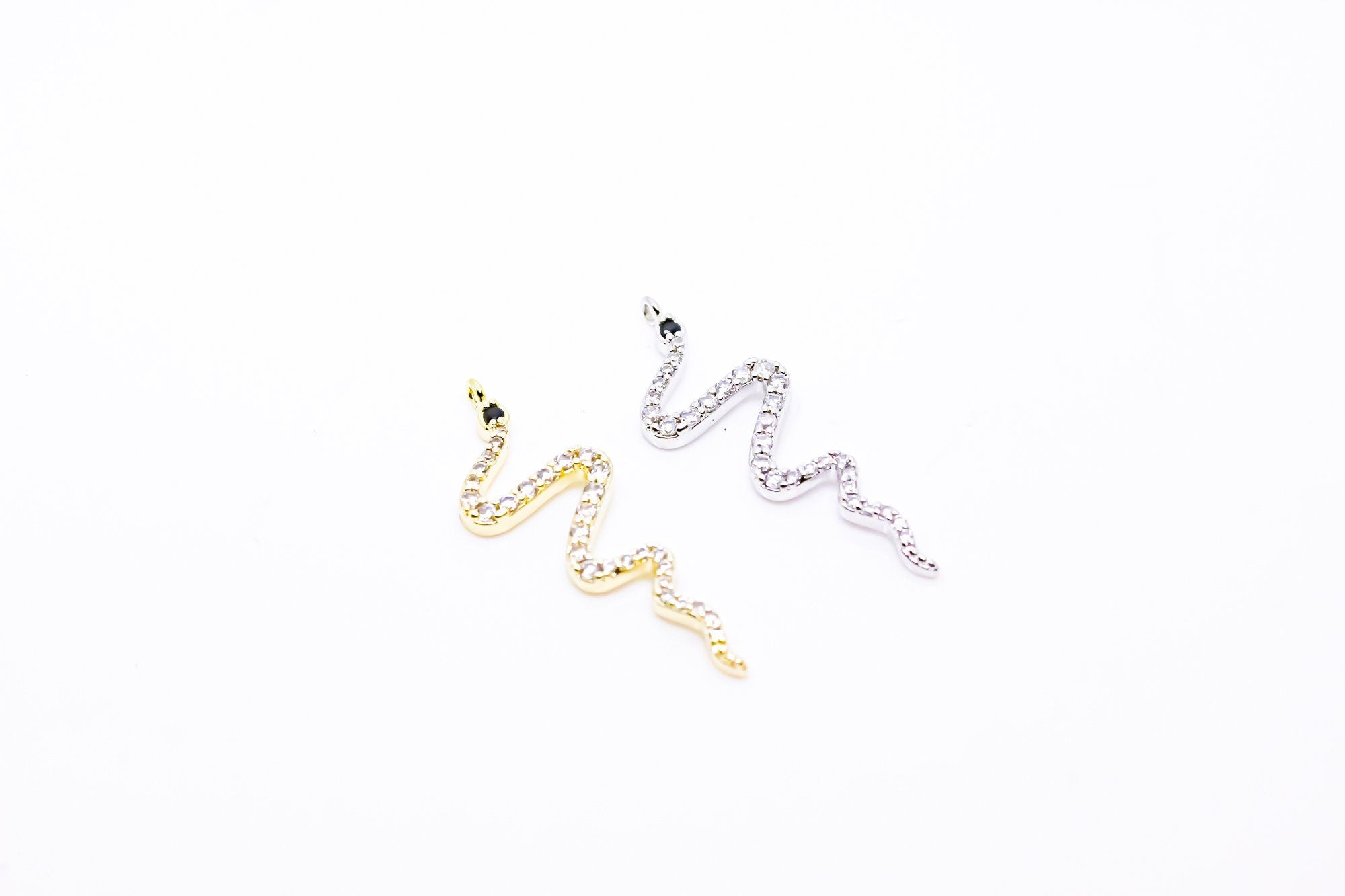 Gold or SIlver cz Serpent Snake Pendant or Charm, 27x10mm, cz Serpent Snake,CPG294-CPS294