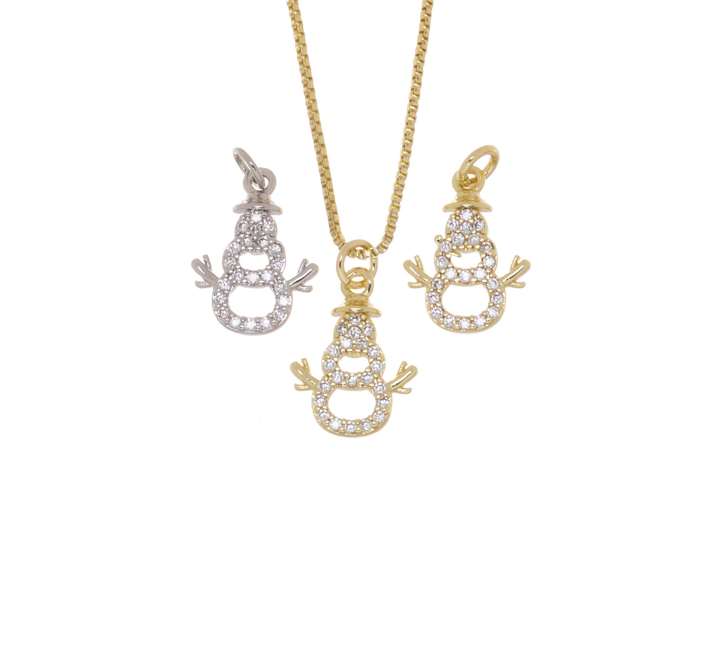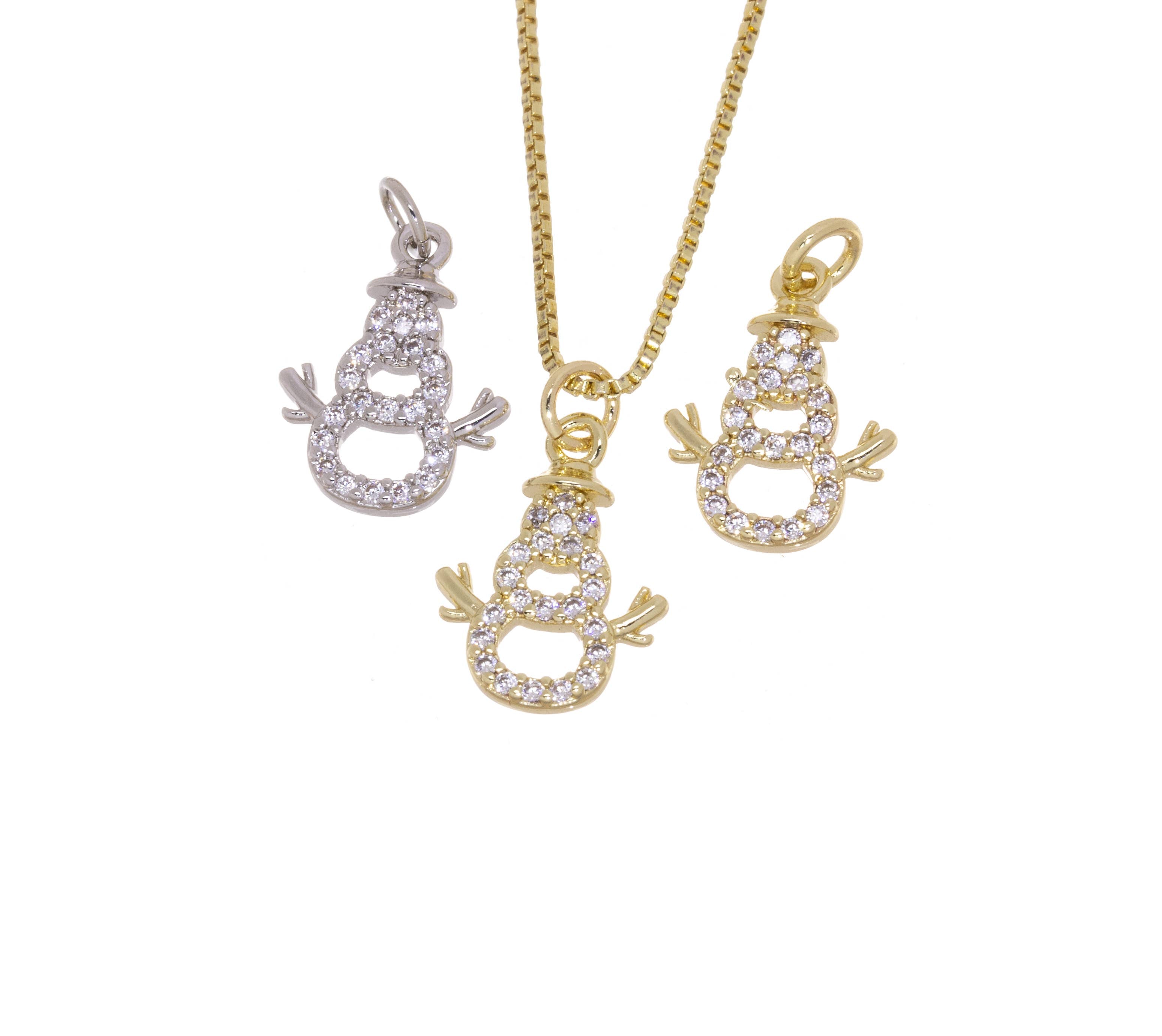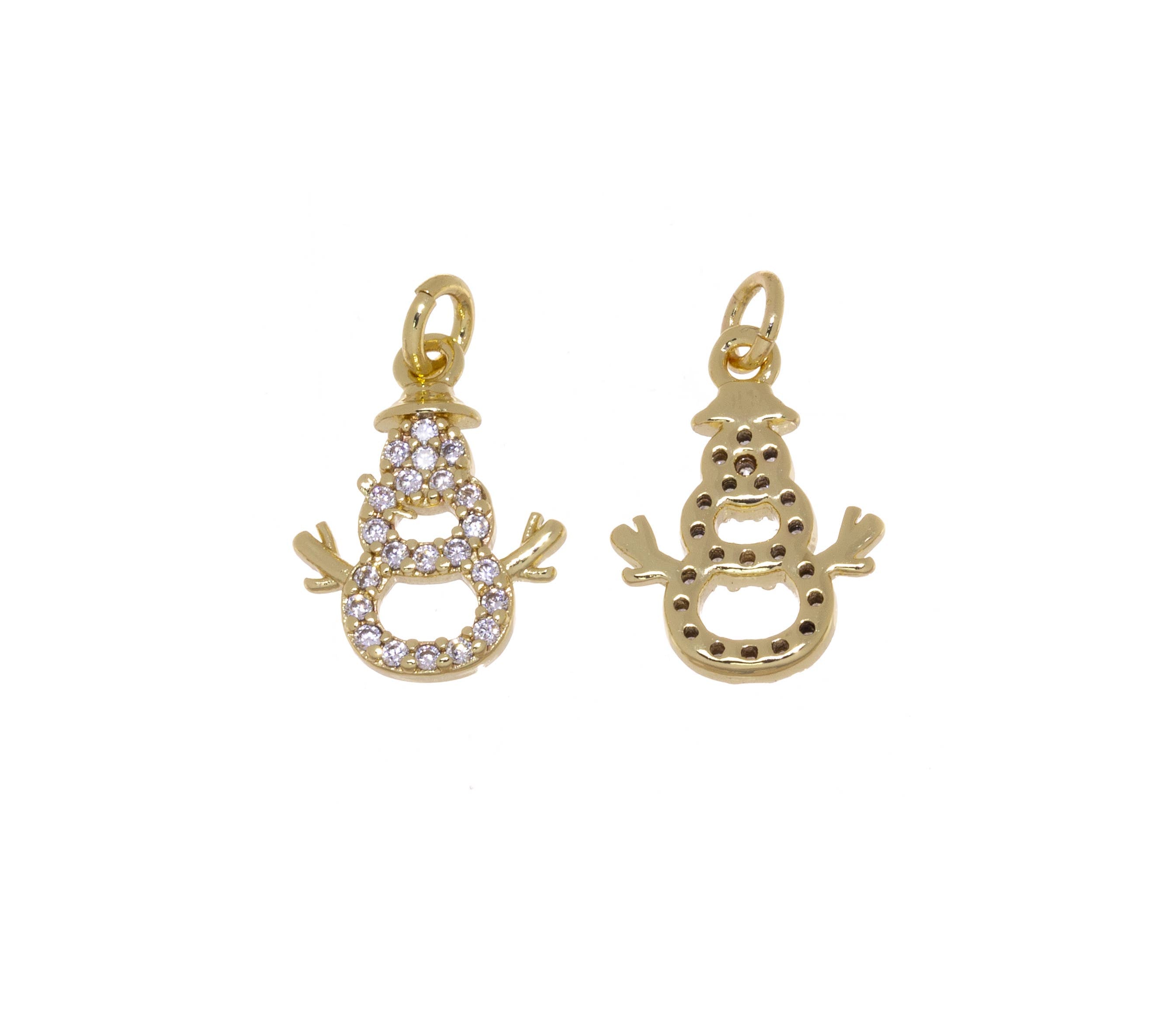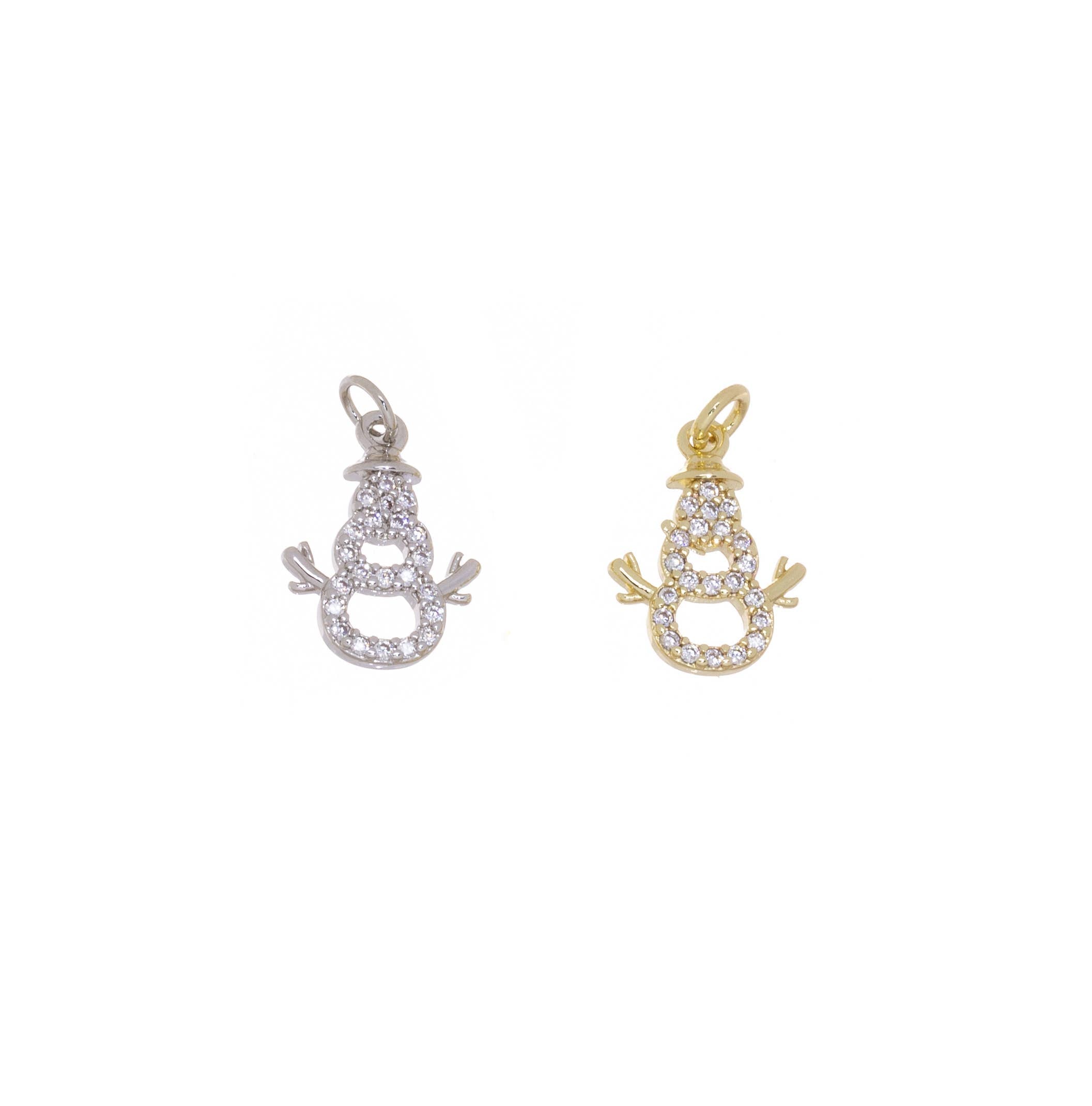 Gold or Silver CZ Snowman Figure Christmas Charm CPG2922