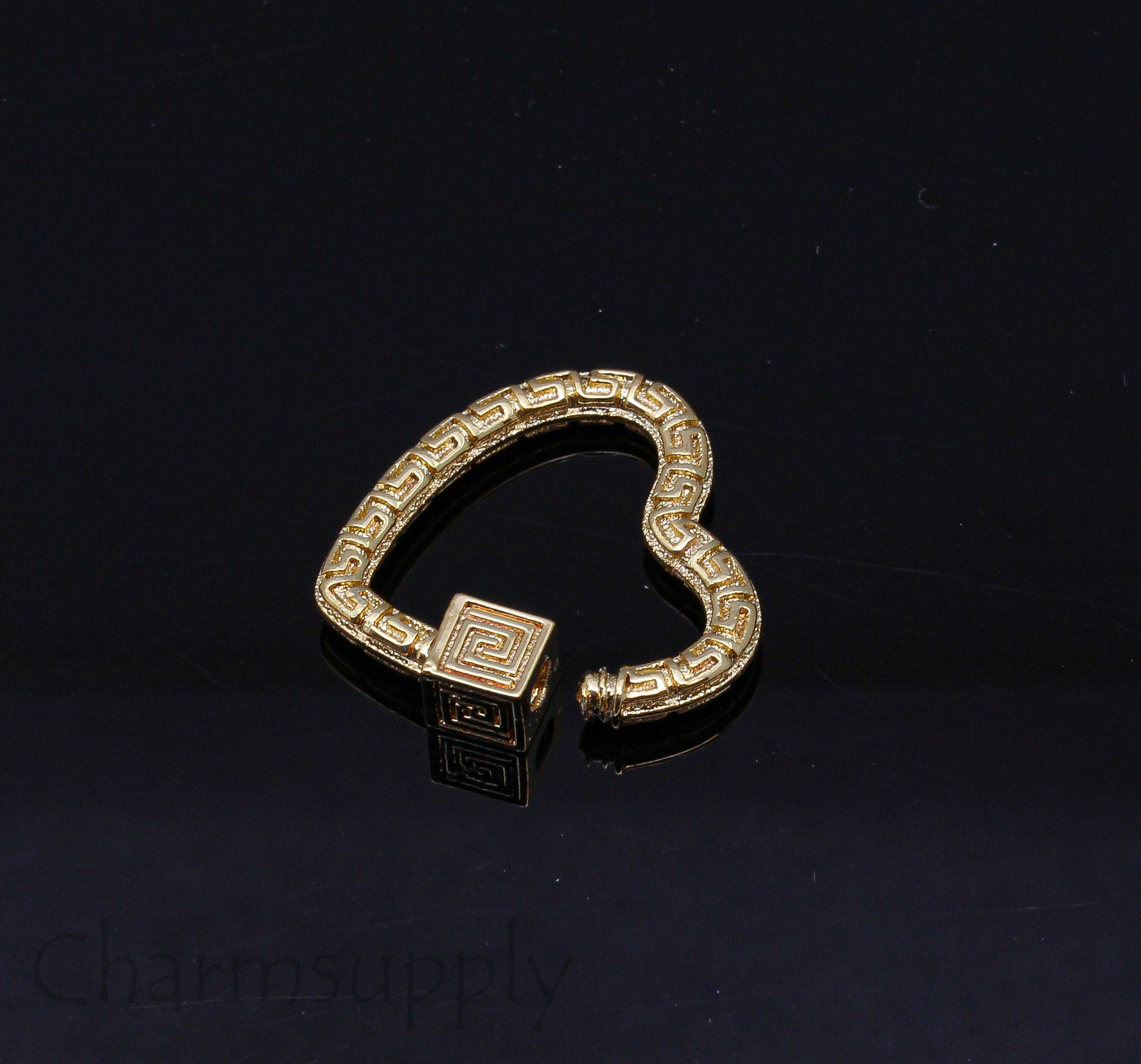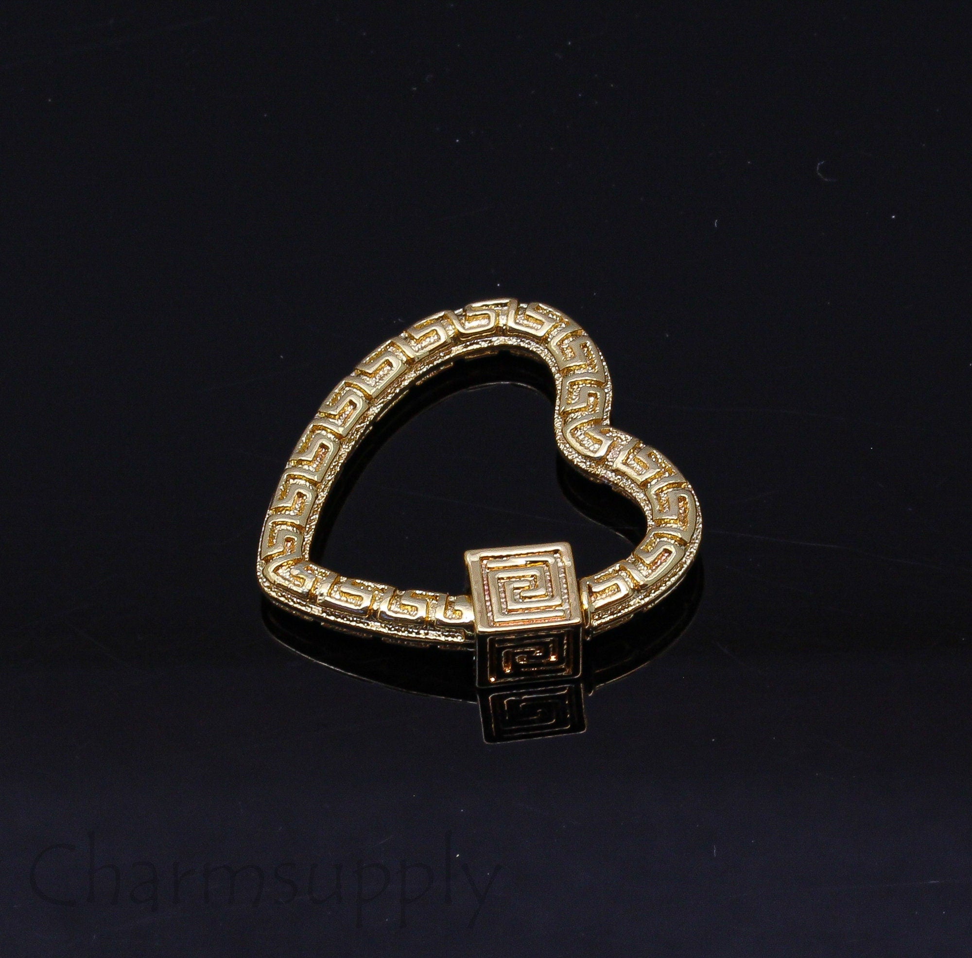 Gold or Silver Engraved Pattern Textured Open Heart Carabiner,Carabiner screw clasp,Decorative Heart Screw Carabiner Clasp,CLG165-CLS165