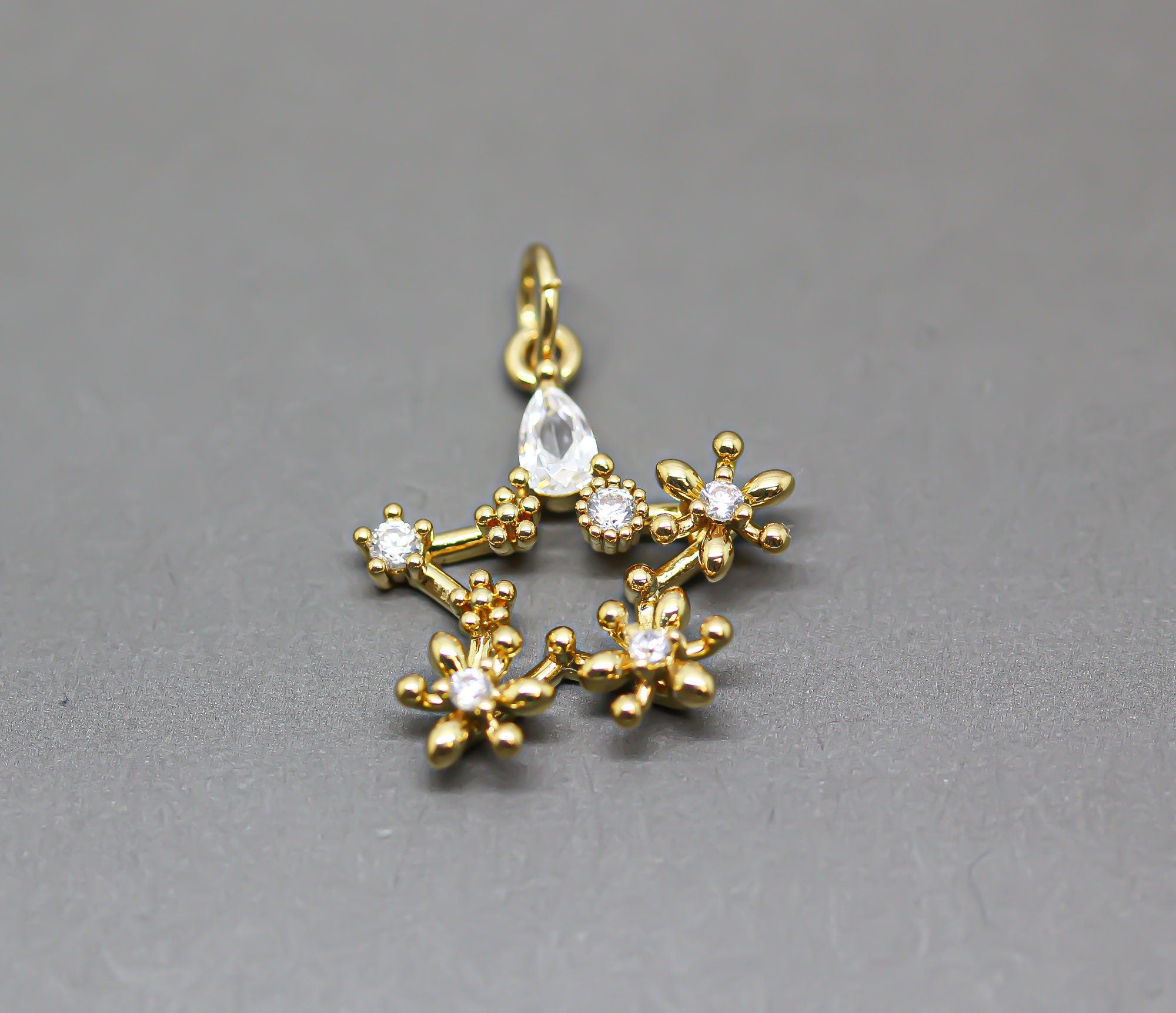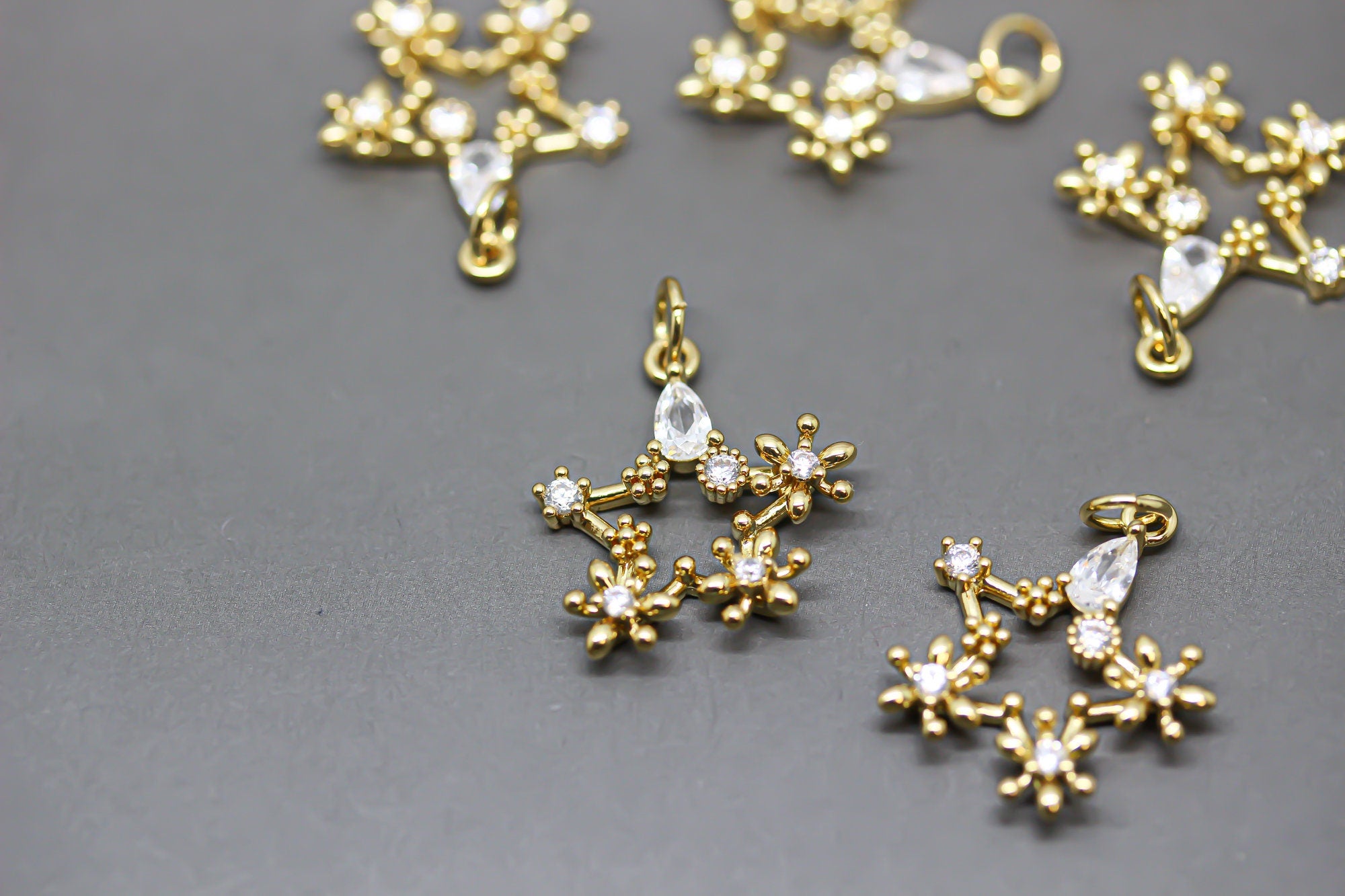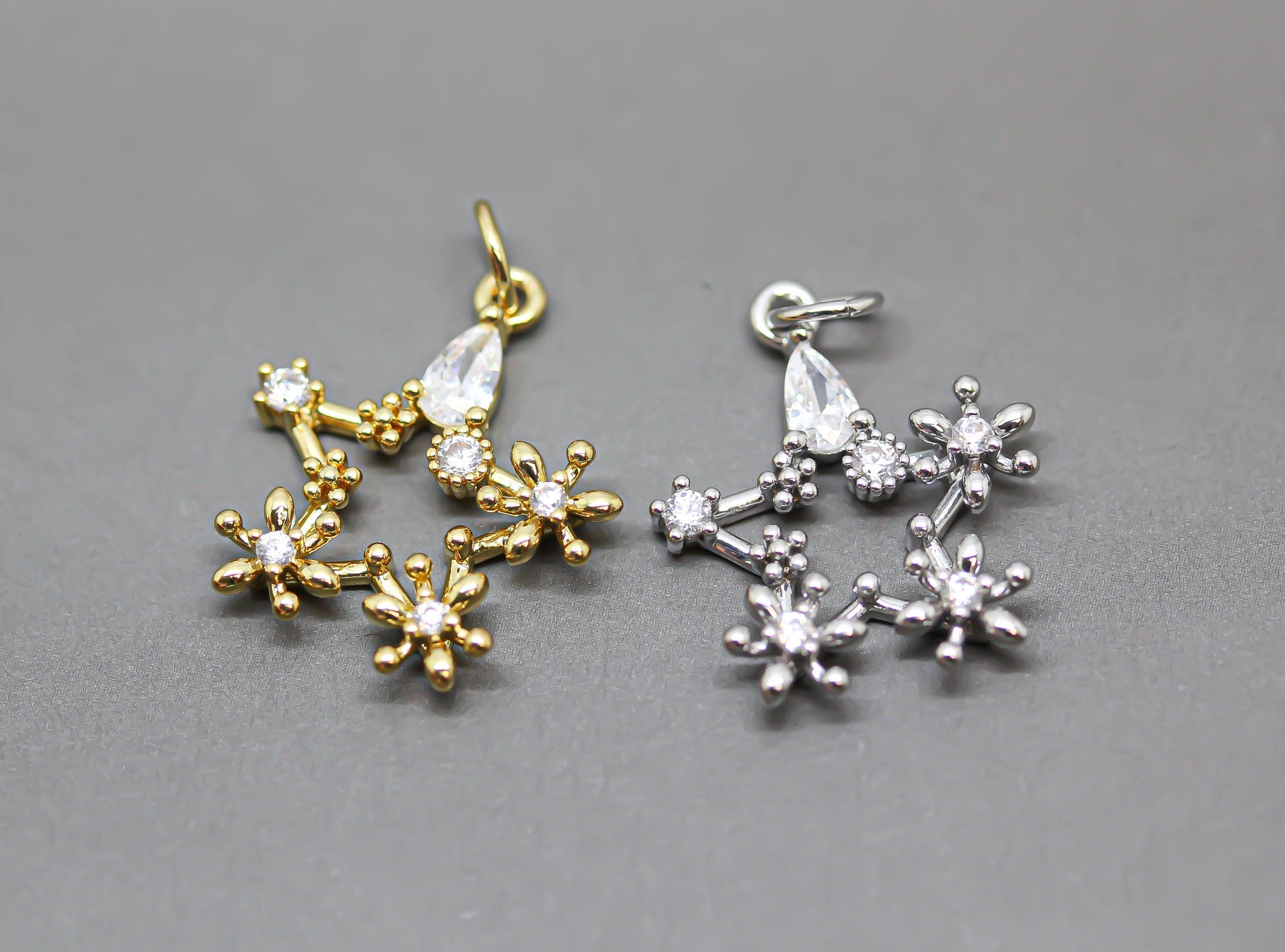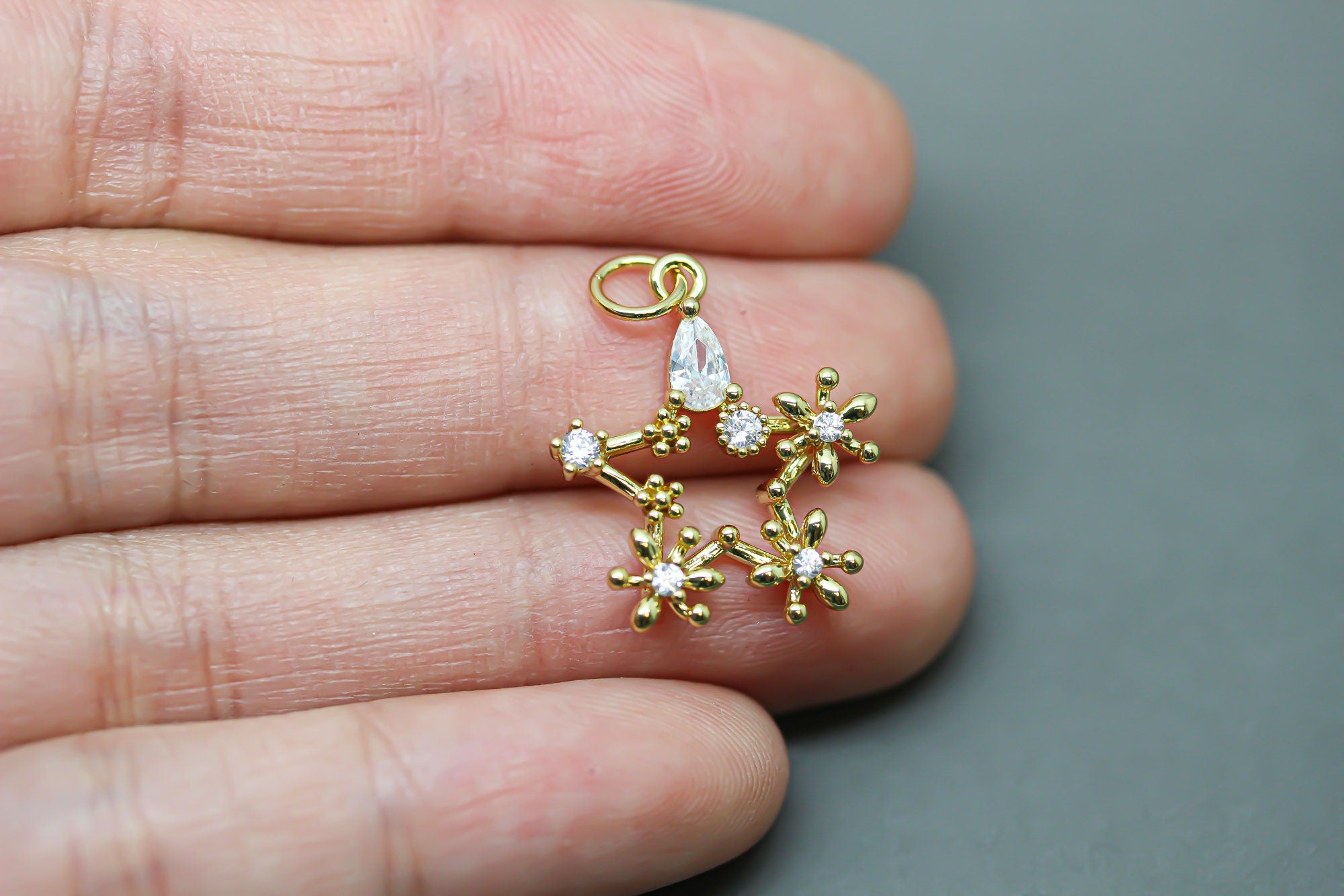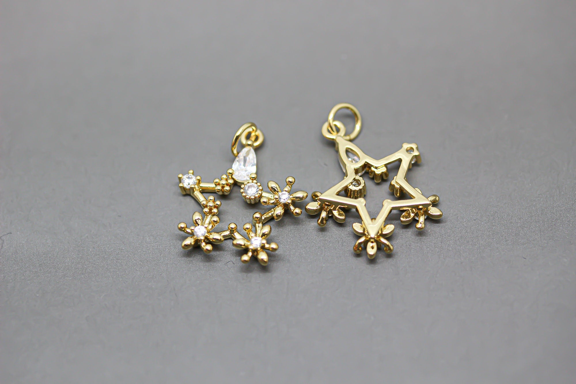 Gold or Silver Fancy Open Star Pendant, 12x20mm celestial star charm, Delicate cz star charm,,CPG232,CPS232