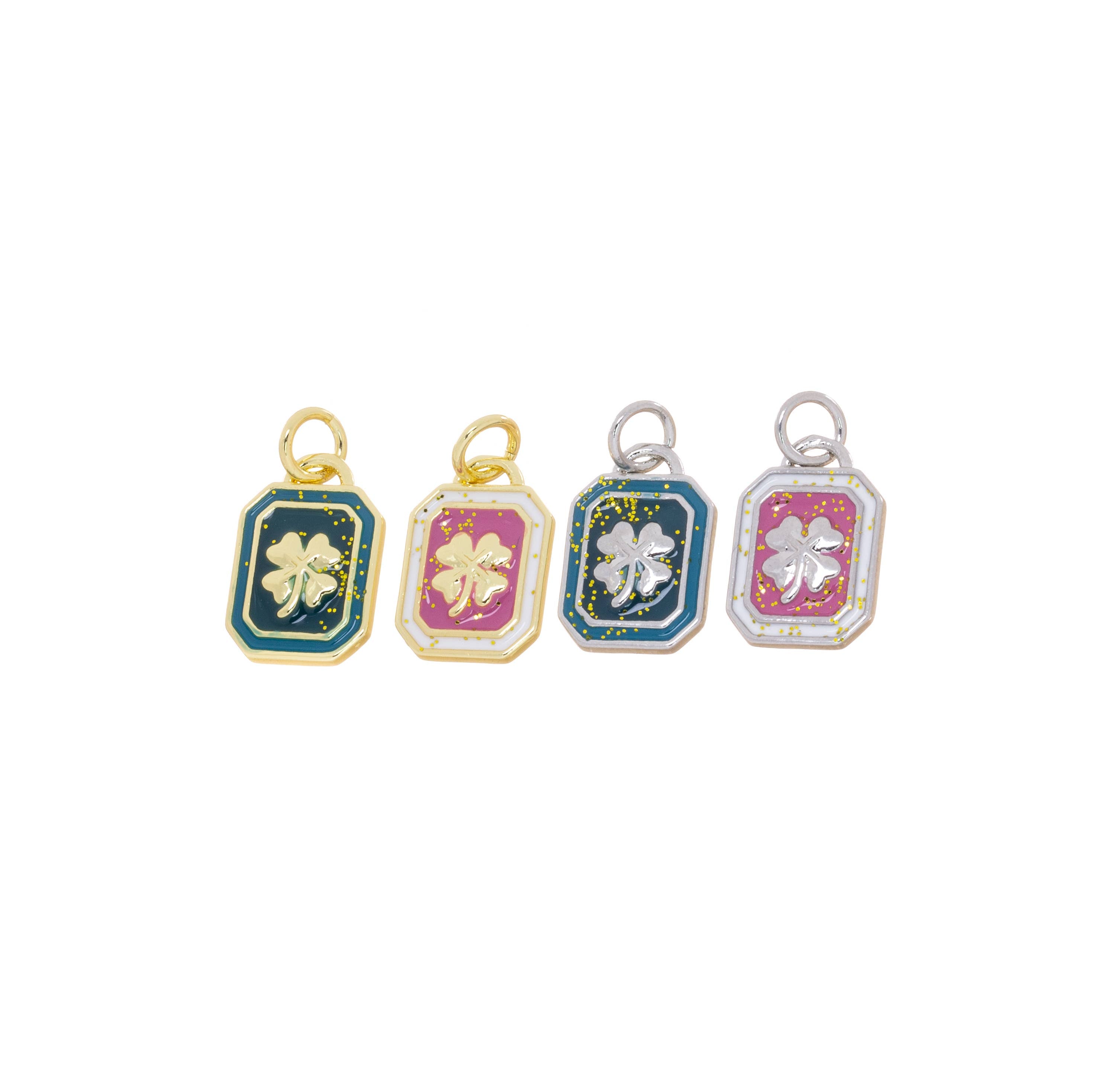 Gold Or Silver Four Leaf Shamrock Lucky Charm For Jewelry Making.High polished Shiny Finish with Enamel Finish.CPG-CPS2787