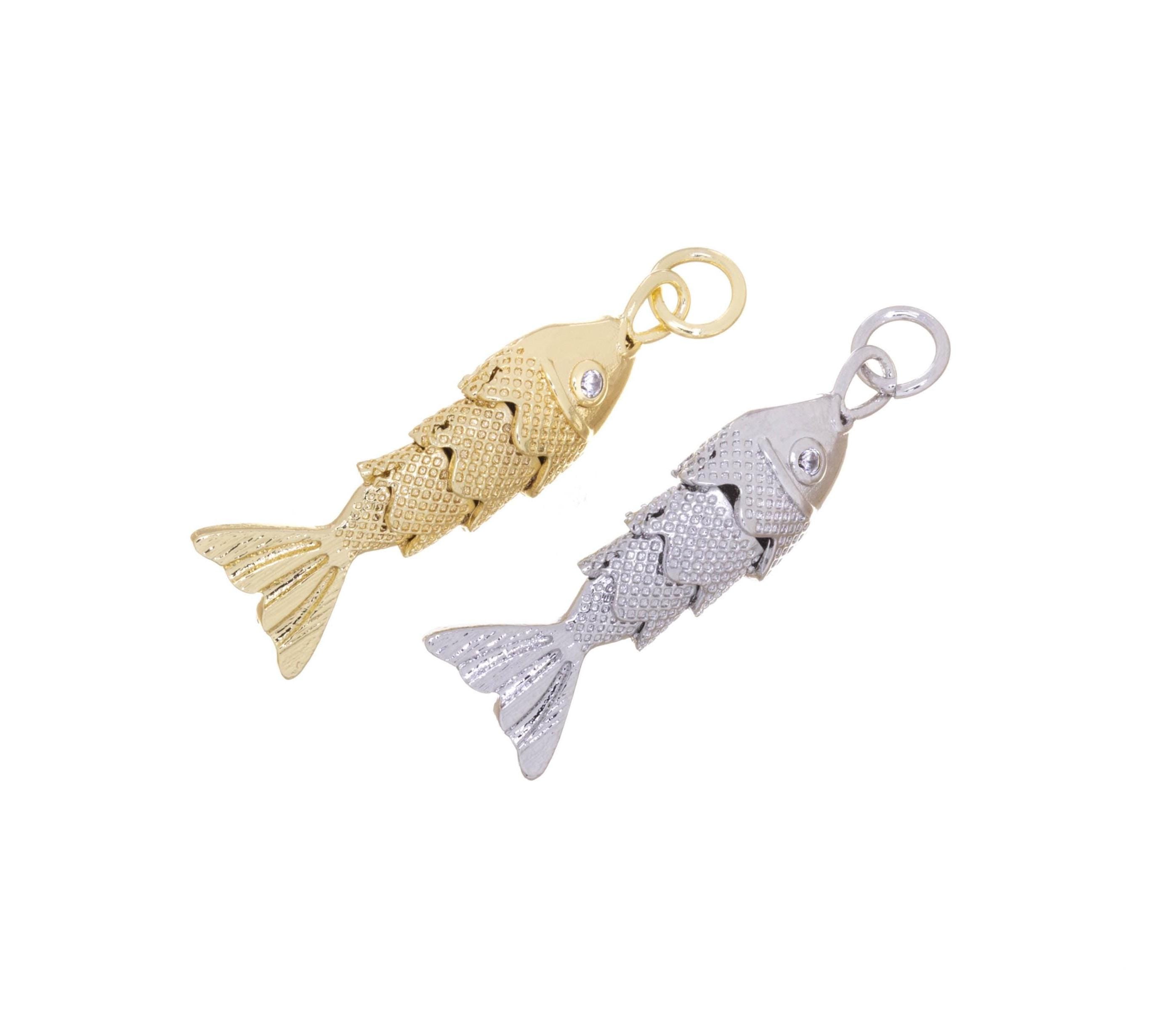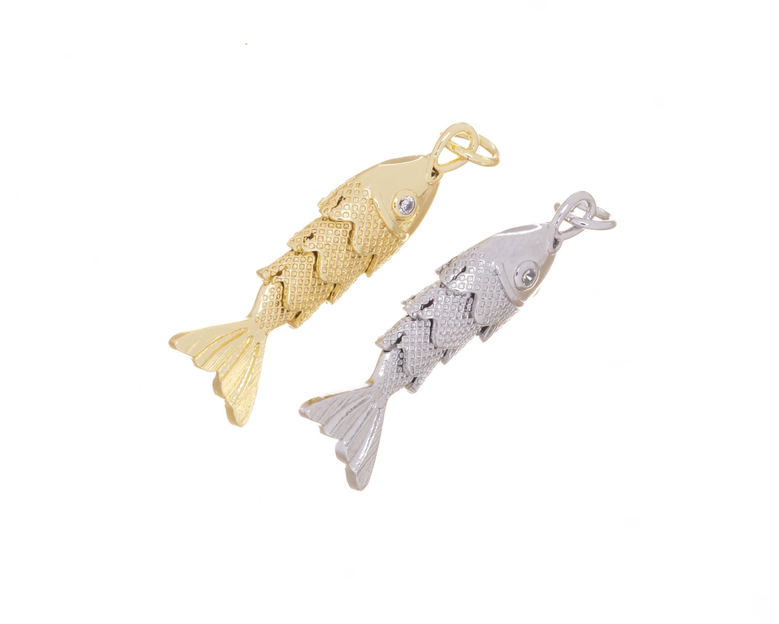 Gold Or Silver Twirling Moving Fish Charm,Two Sided Fish Charm With CZ,Fish Charm For Necklace Or Earring Making,CPG-CPS1212