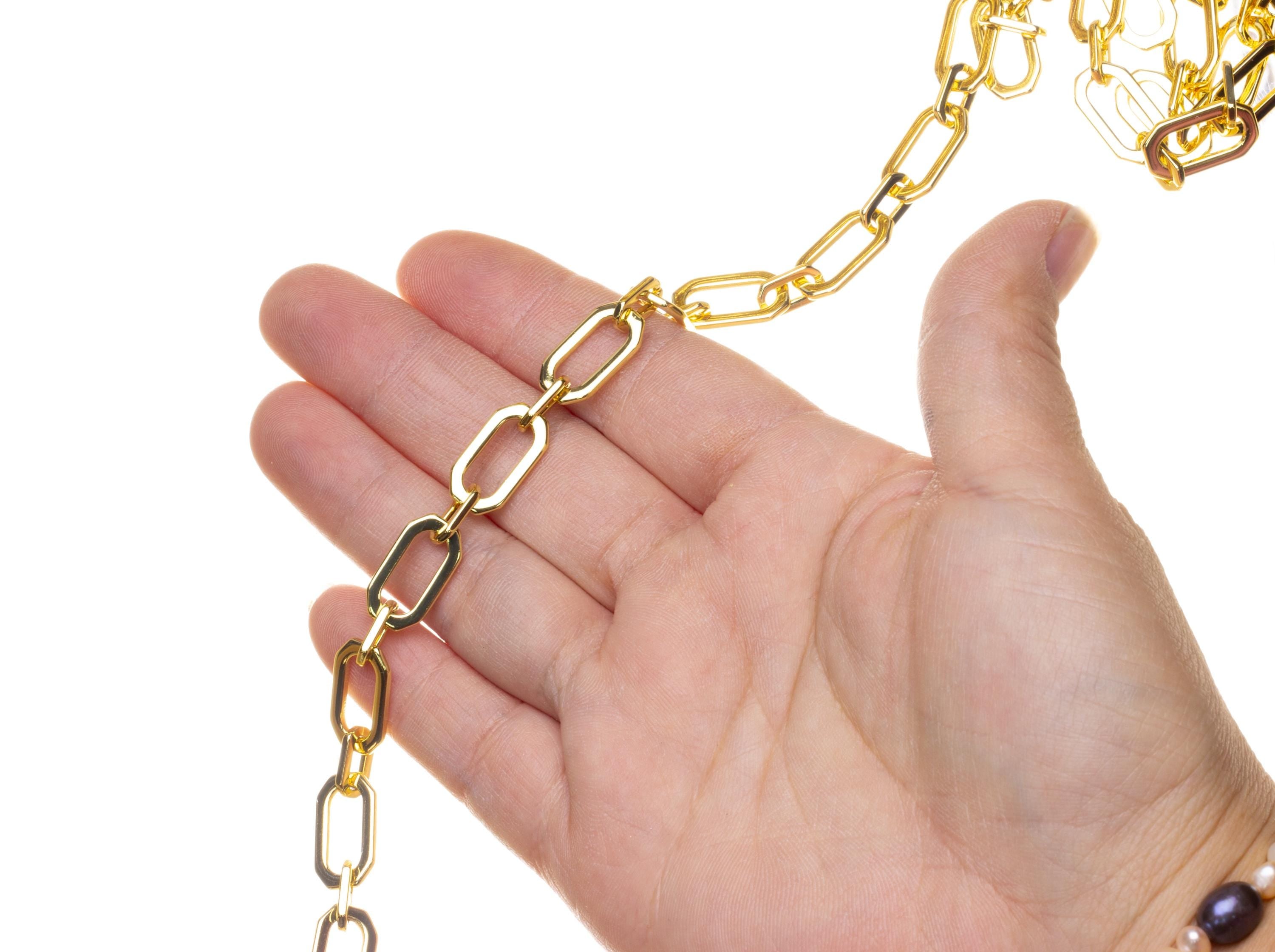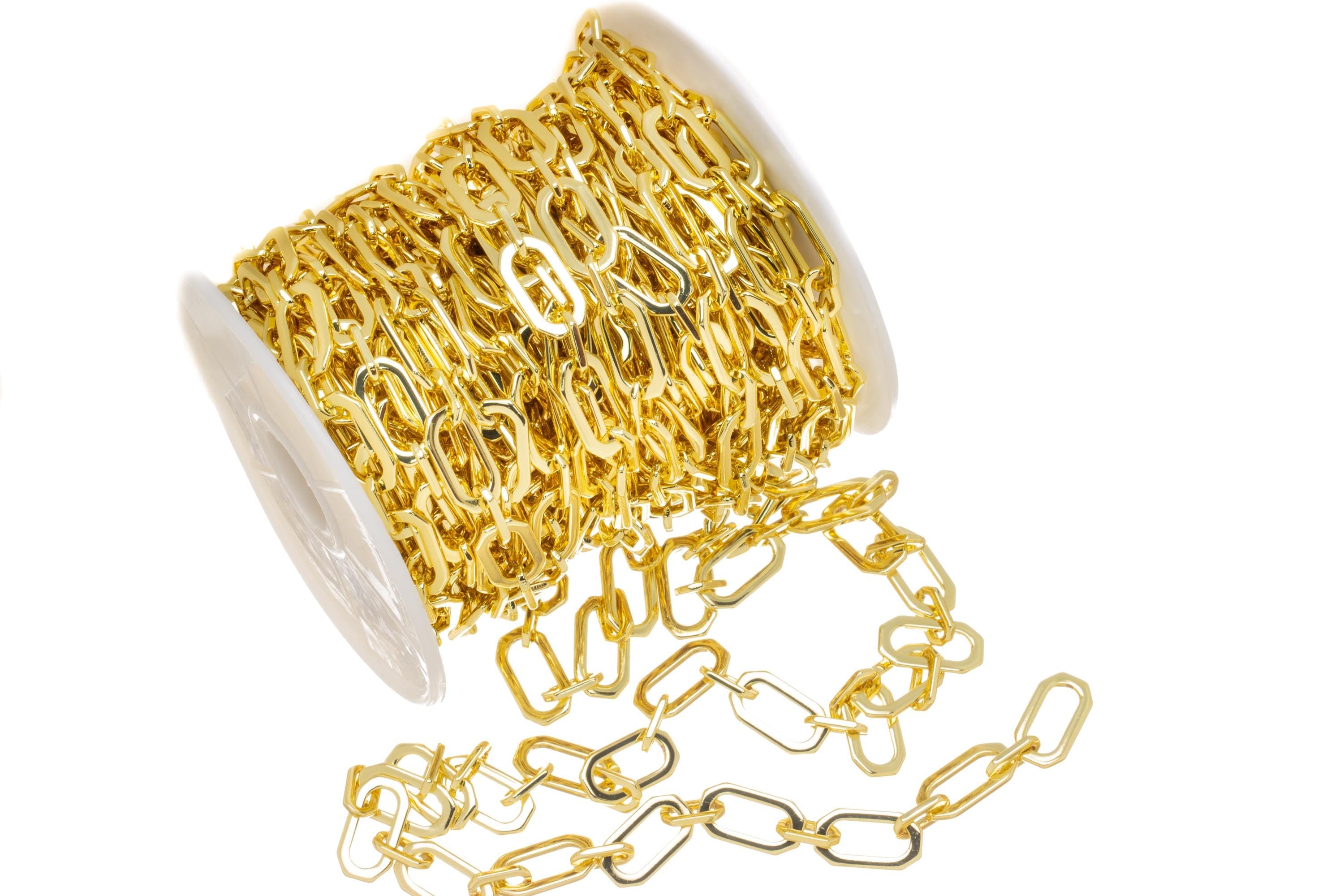Gold Oval Flat Alternating Big And Small Link Chain,Oval Flat Gold Chain For Jewelry Making,Shiny Gold Open Link Chain,CHG071