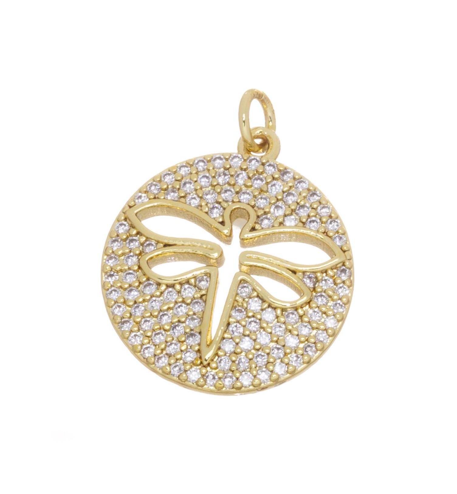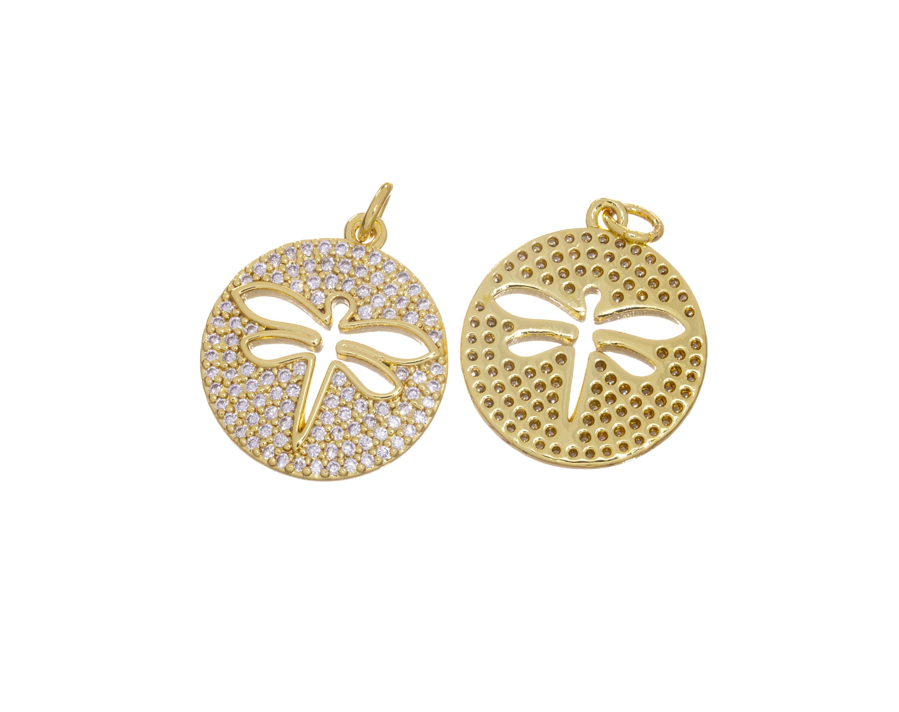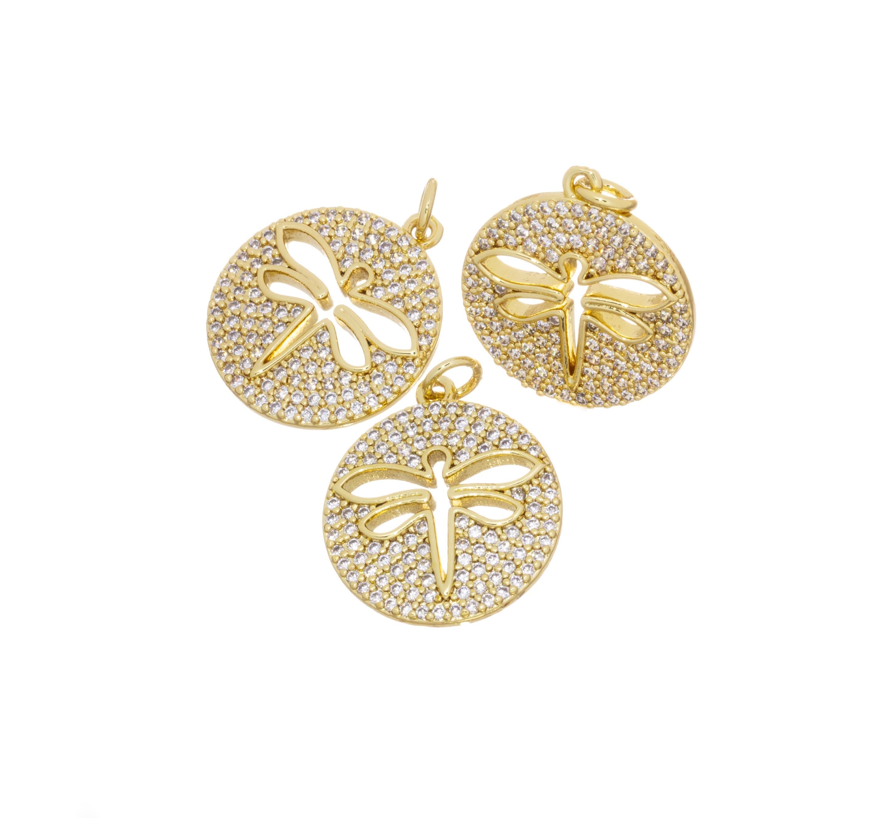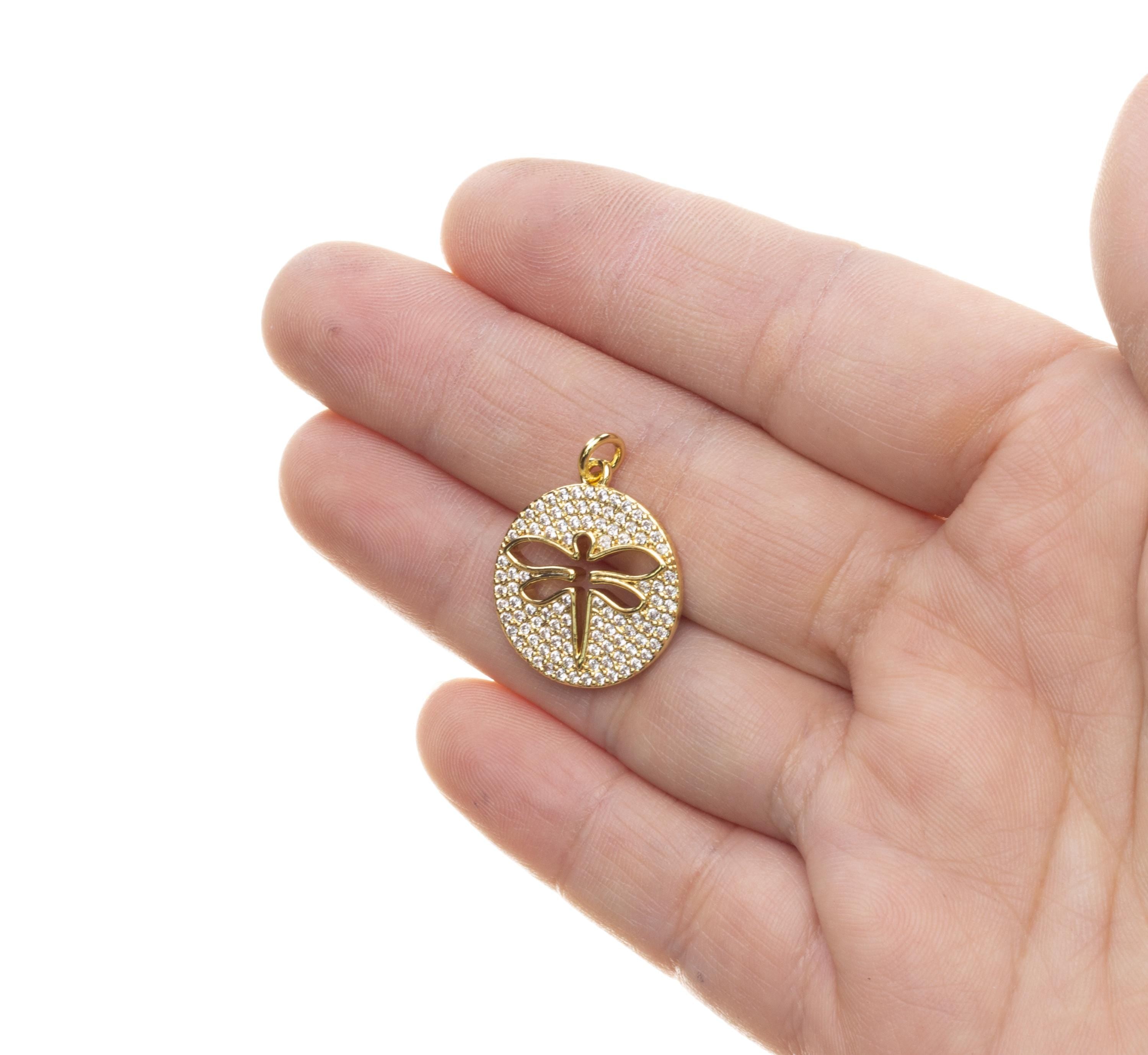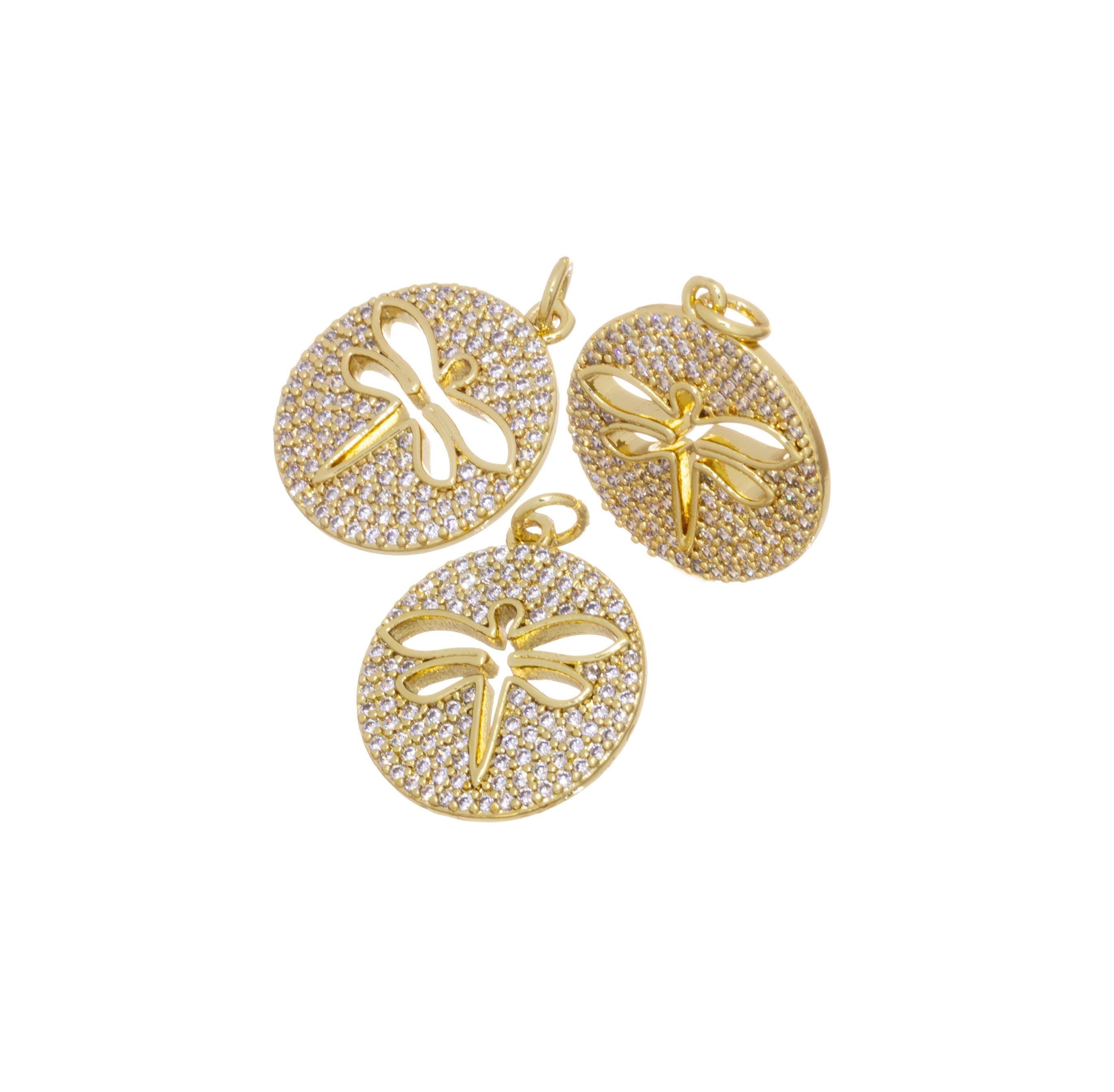 Gold Pave CZ Dragonfly Charm,Dragonfly Disc Coin Pendant,Dragonfly Charm For Jewelry Making,CPG813