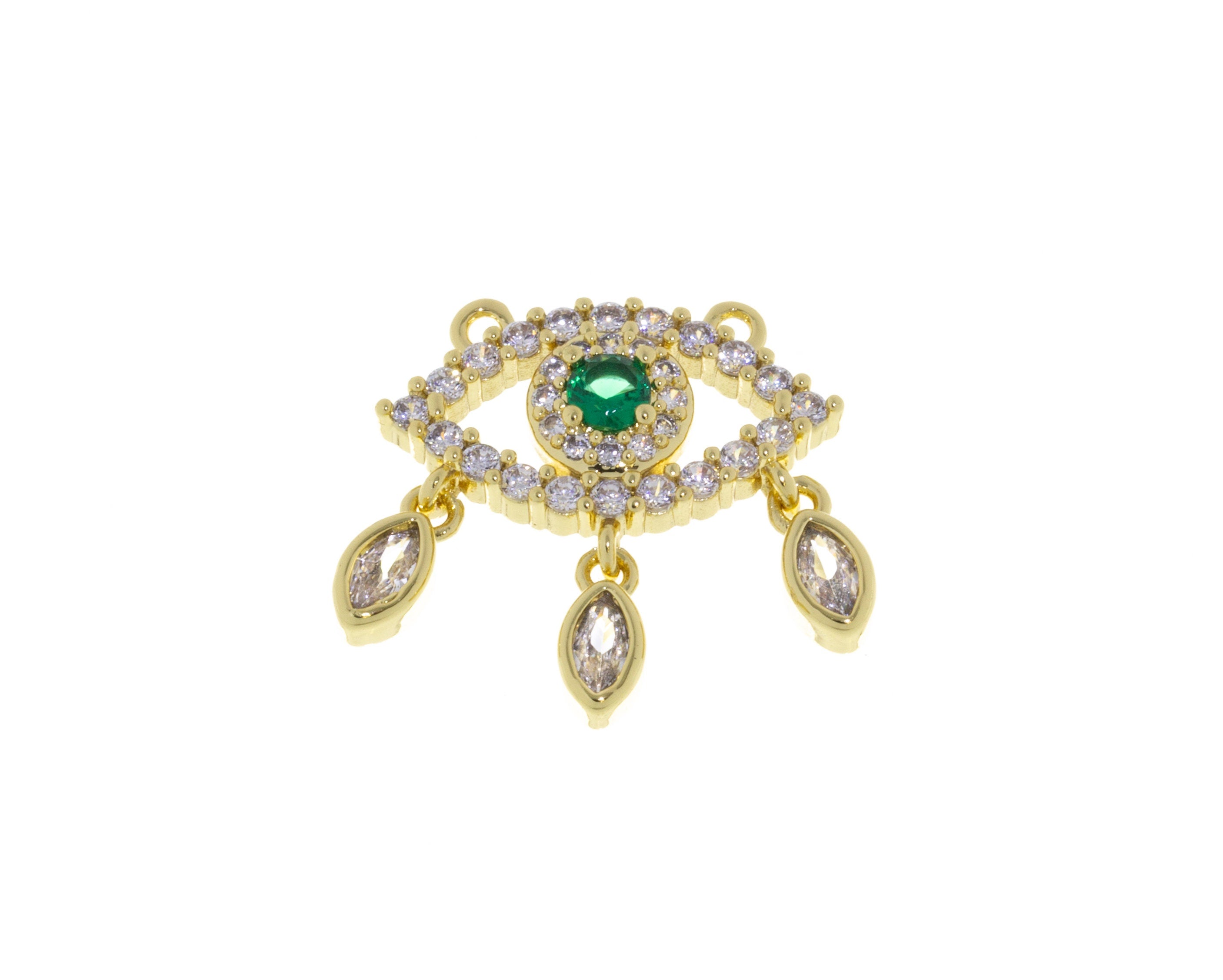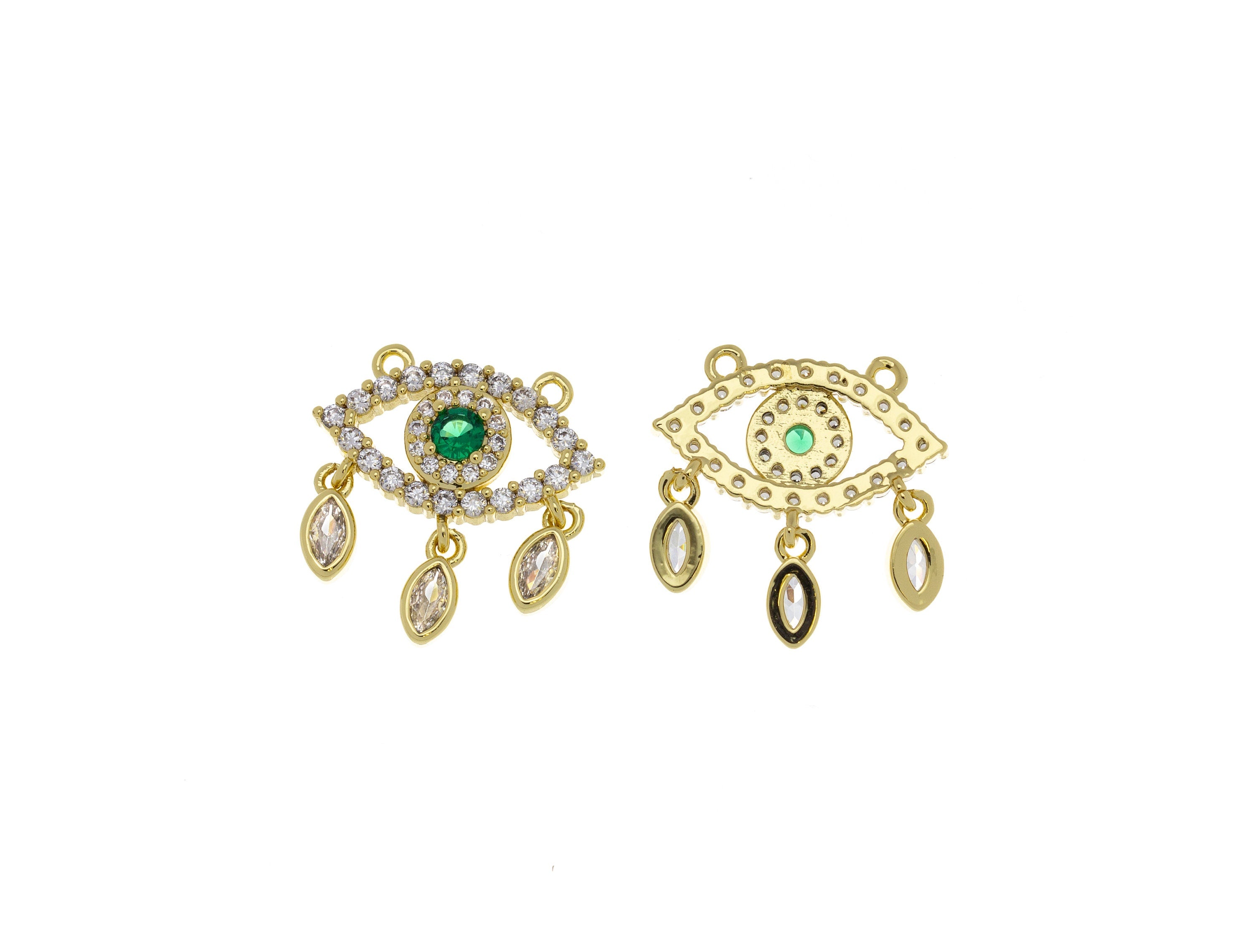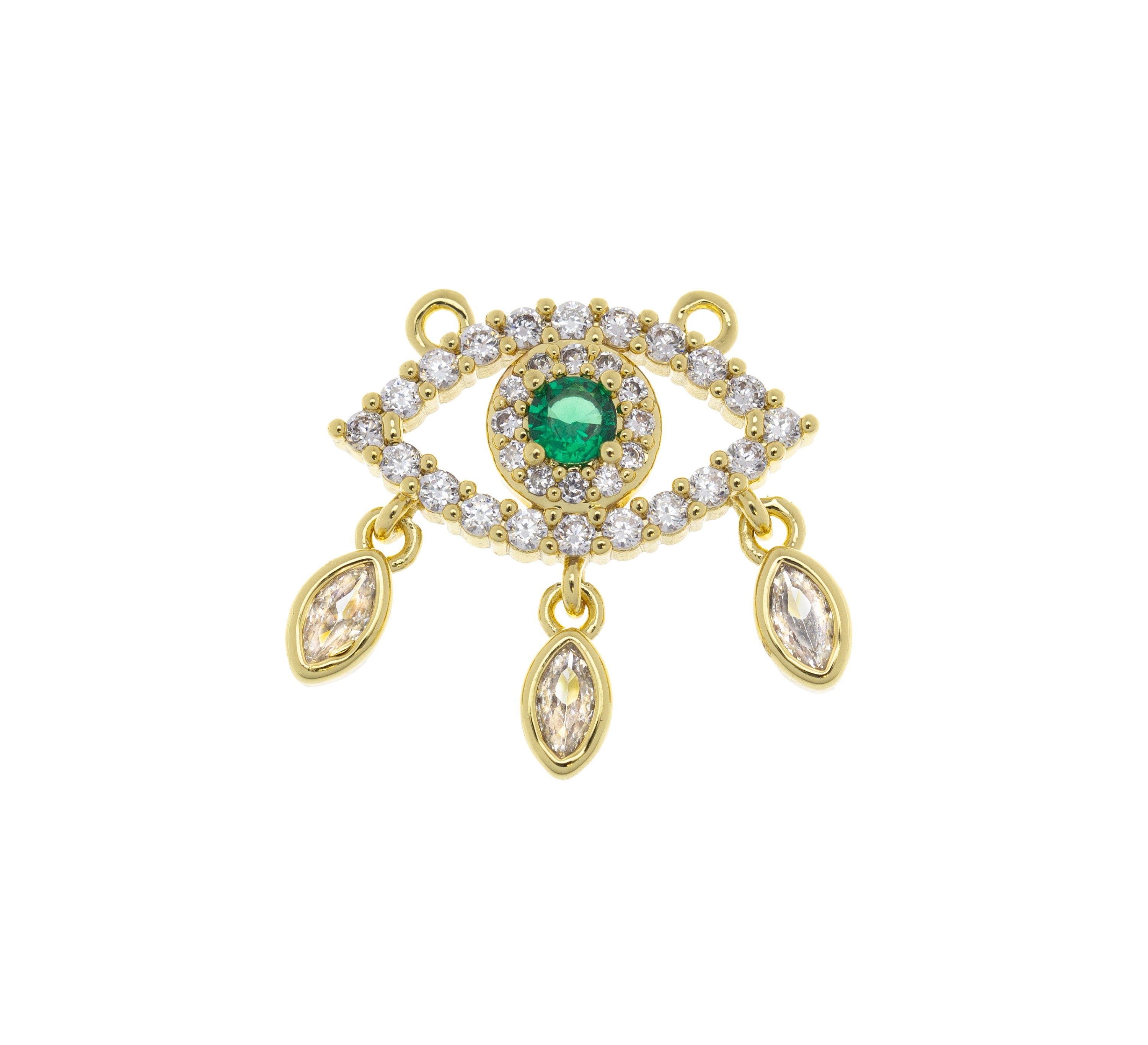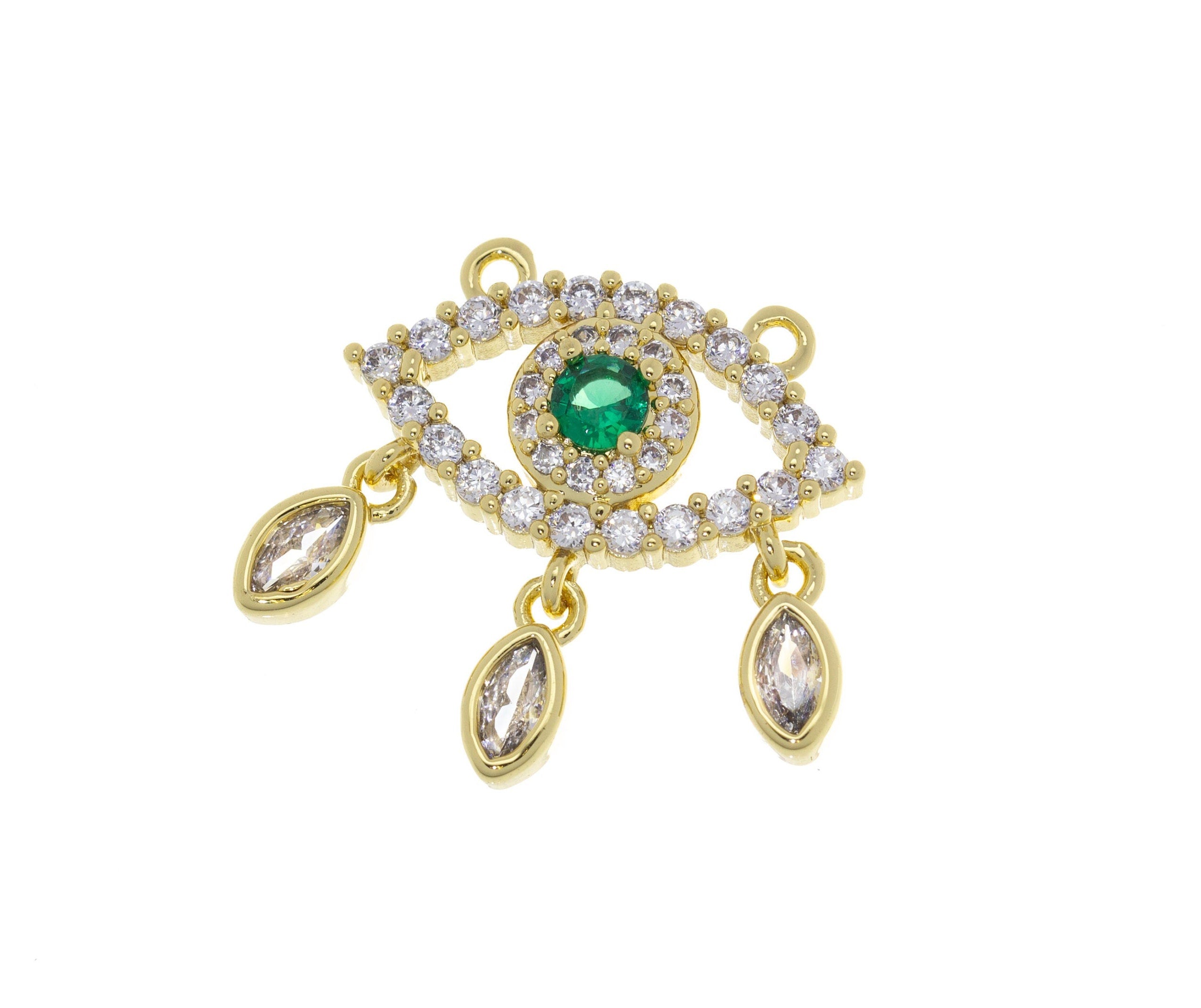 Gold Pave Evil Eye Connector Necklace Charm,CZ Evil Eye Connector Charm,Evil Eye Connector With Baguette CZ,CNG057