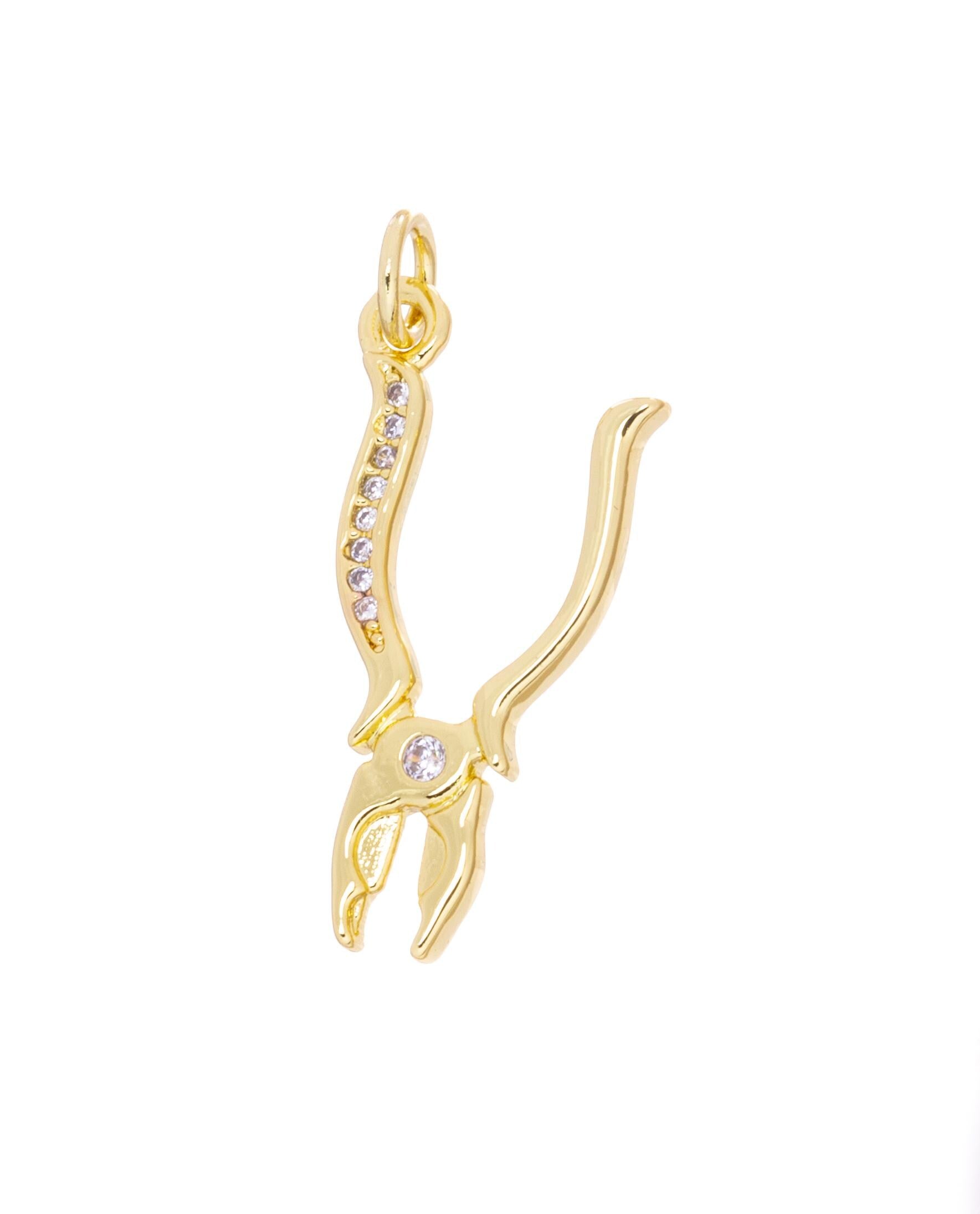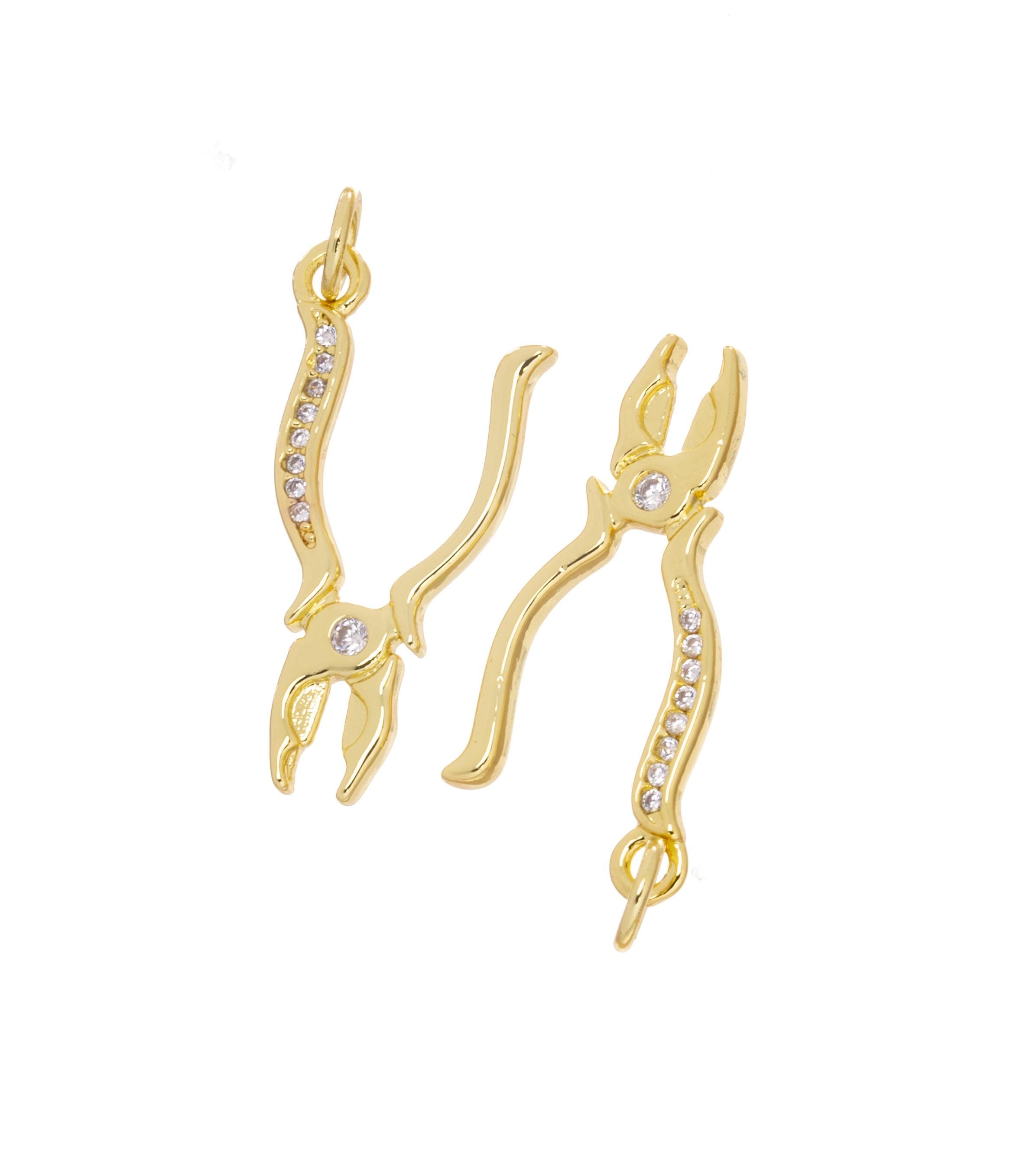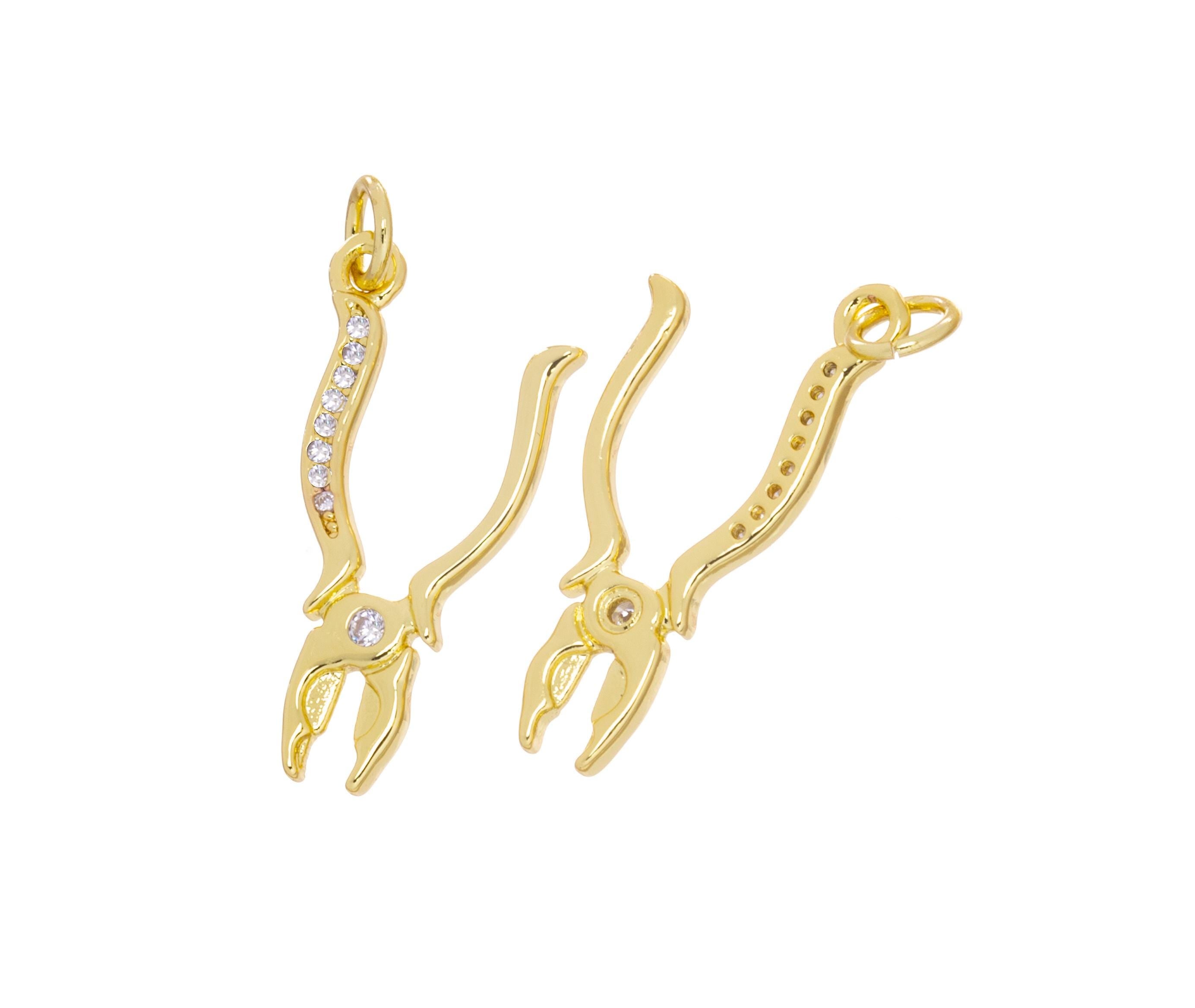 Gold Pliers Tool With CZ,Tool Charm For Handy Person,Pliers Charm For Jewelry Making,Household Repairs Dainty Pliers Charm,CPG2443