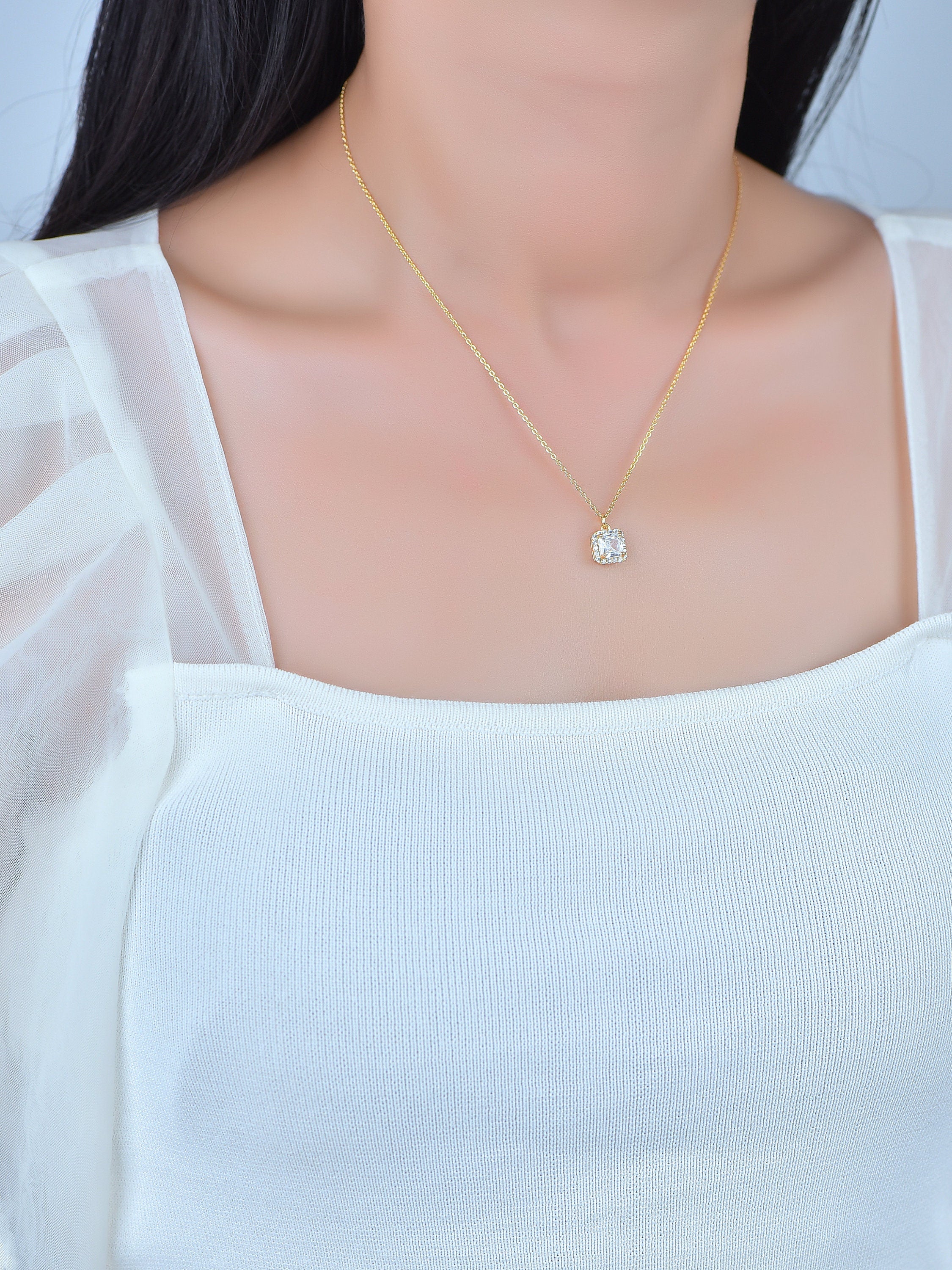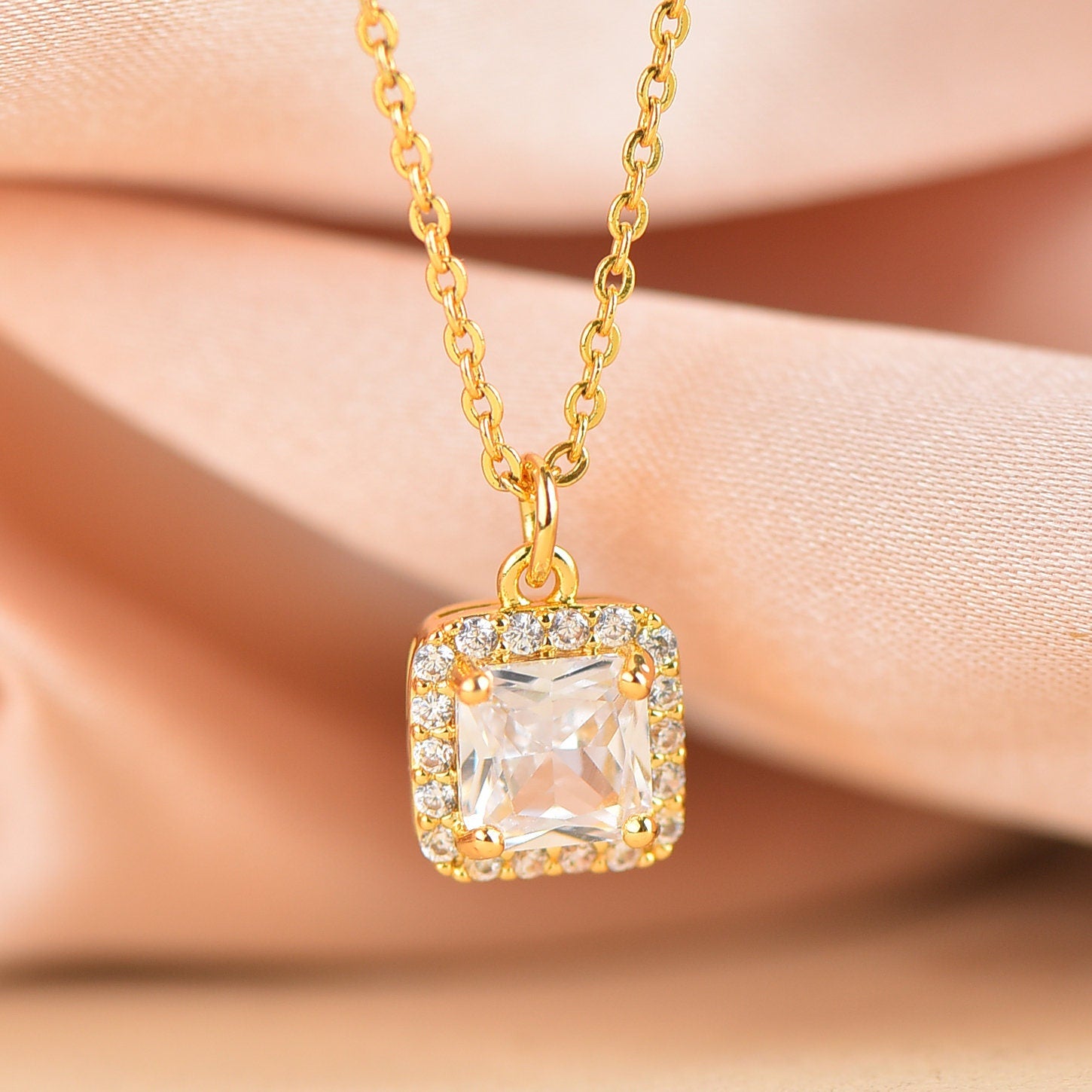 Gold princess Charm,Dainty Charm With princess cut CZ In The Center And Round CZ All Around,CPG355