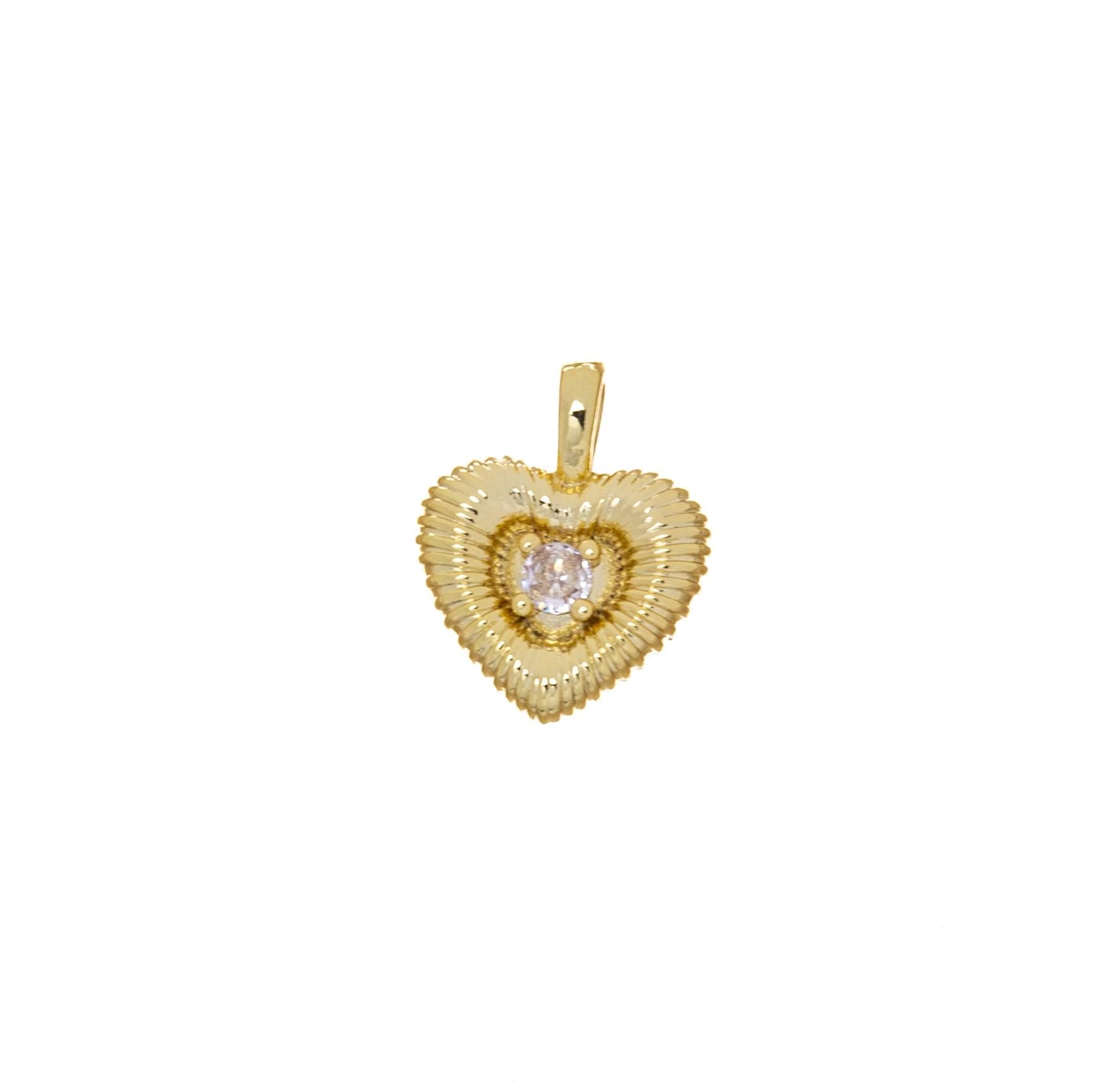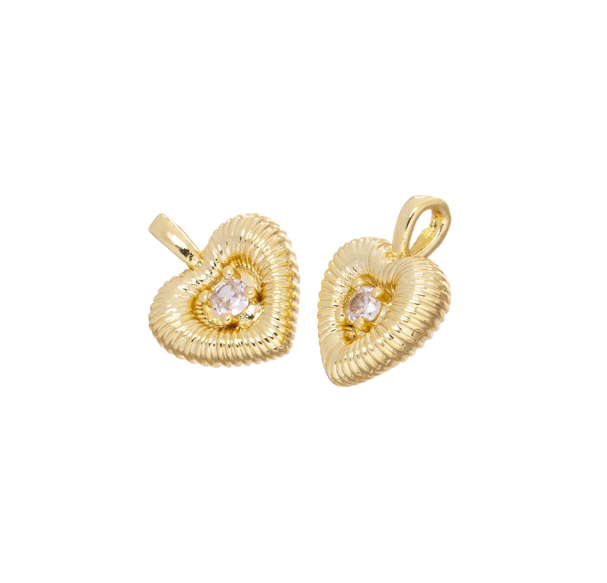 Gold Puff Heart Charm,Puff Heart Charm With CZ,Heart Charm For Jewelry Making,Fluted Heart Charm,Ribbed Puff Heart Pendant,CPG2460