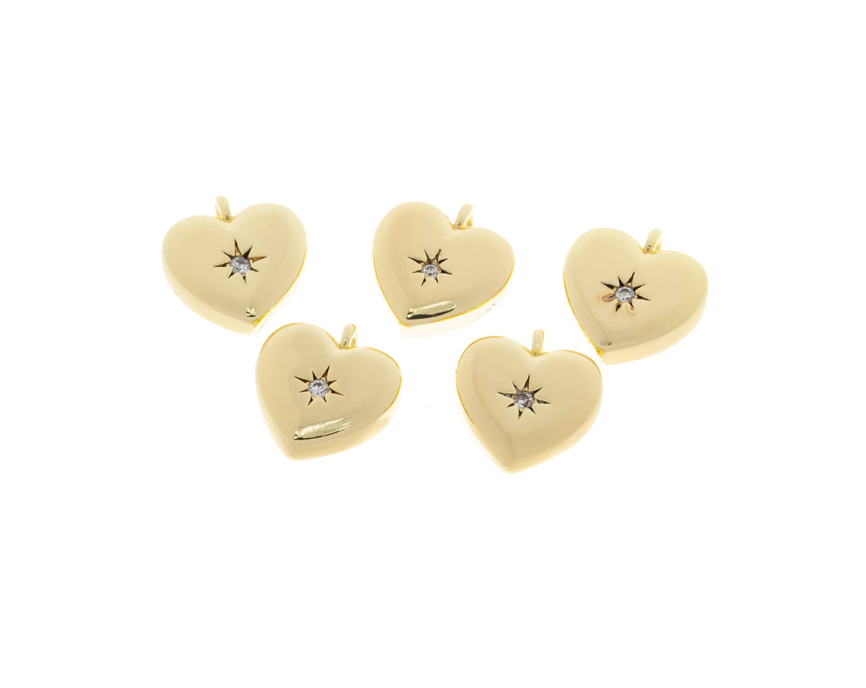 Gold Puff Heart & Starburst Heart Charms with CZ CPG615