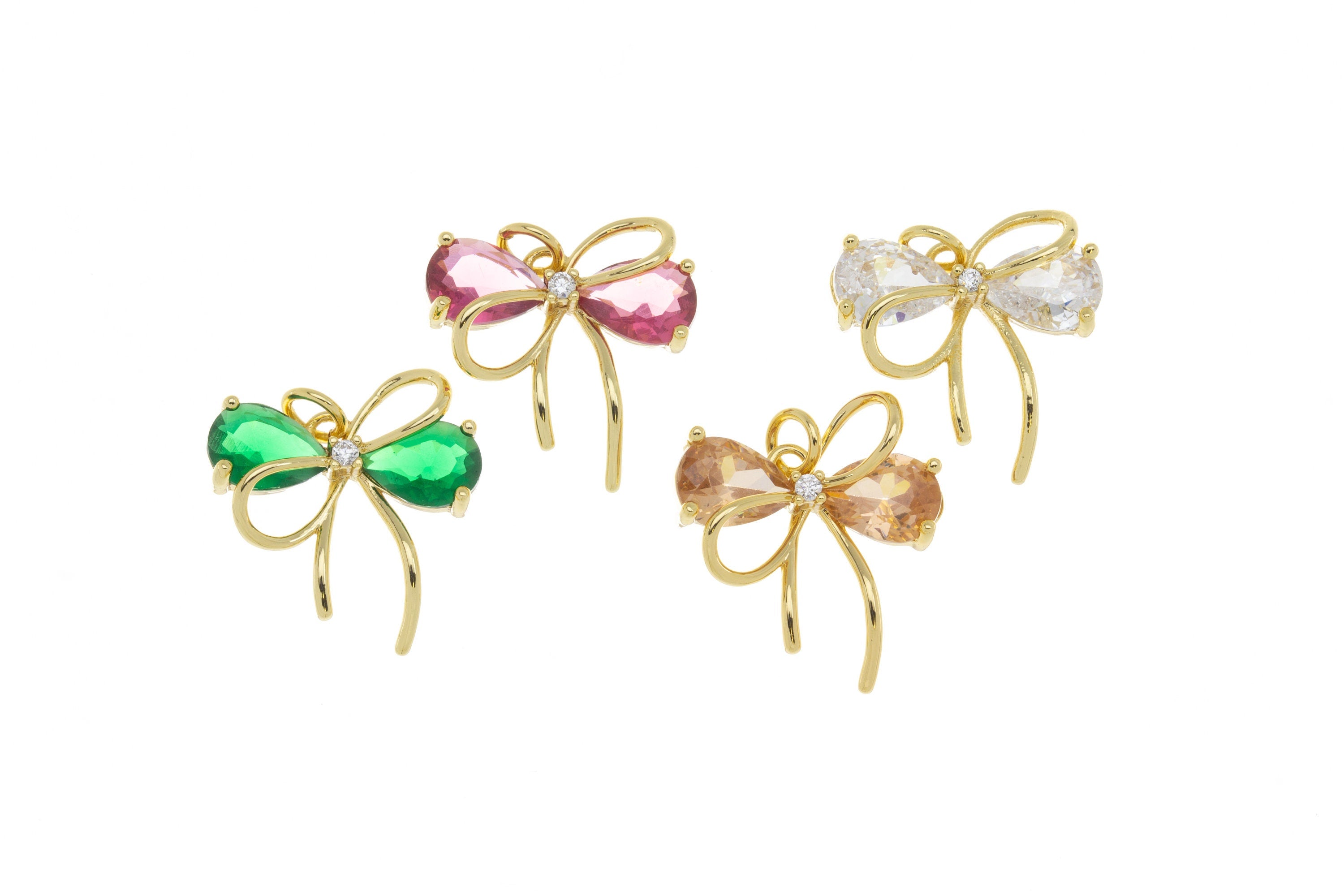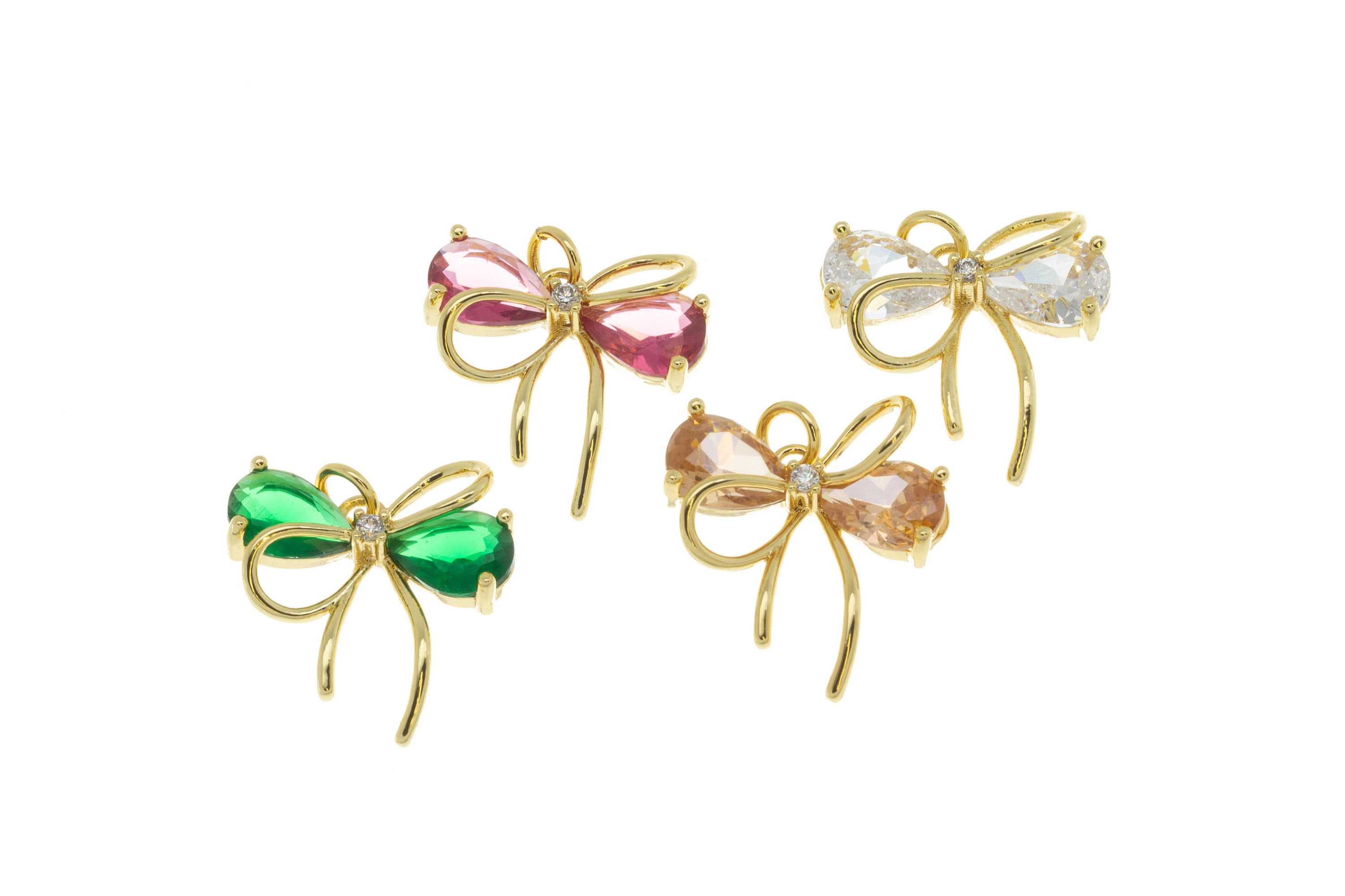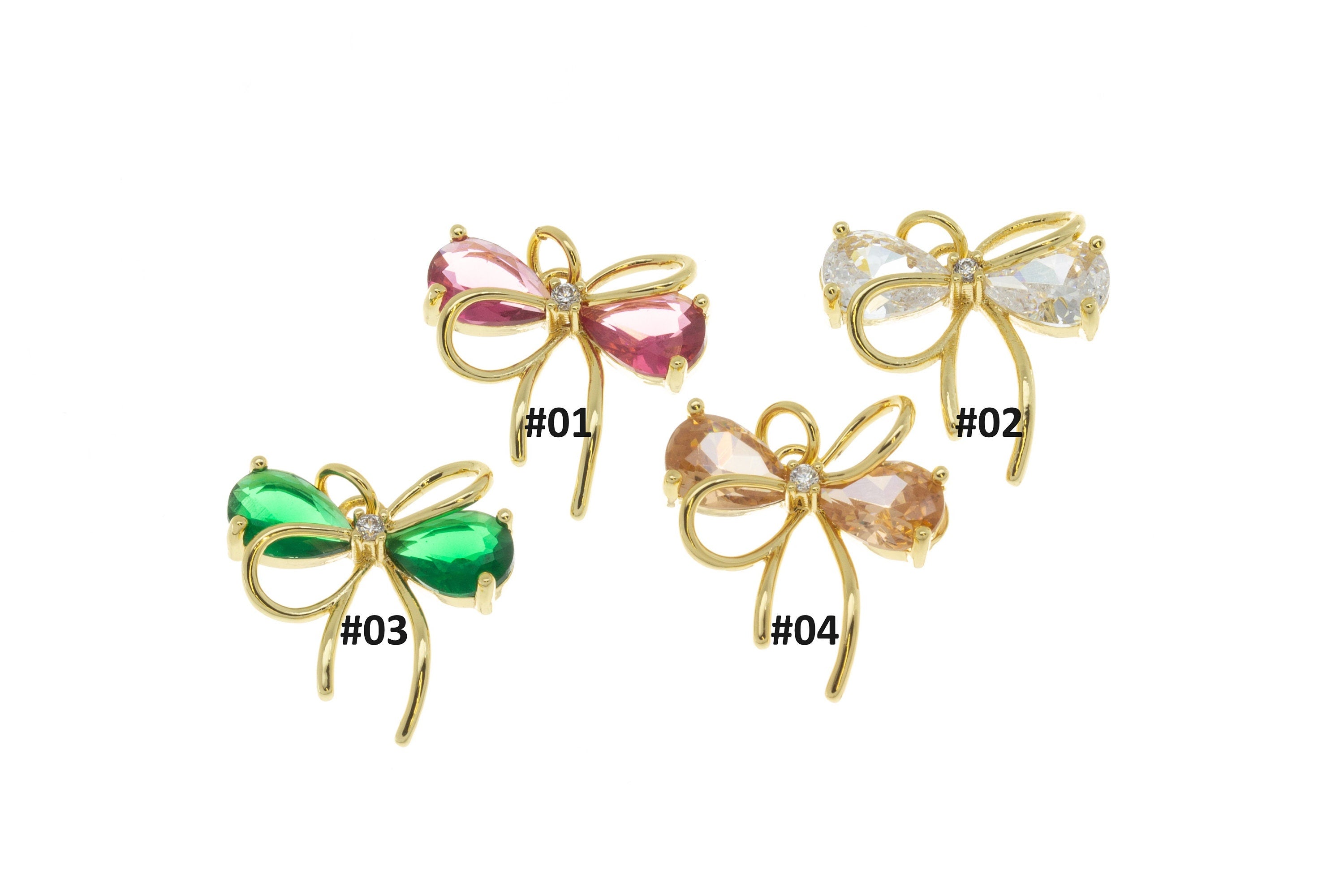 Gold Ribbon Tie CZ Charm,Minimalist Ribbon Bow Tie Charm,Timeless Ribbon Bow Tie Charm For Jewelry Making,CPG2061