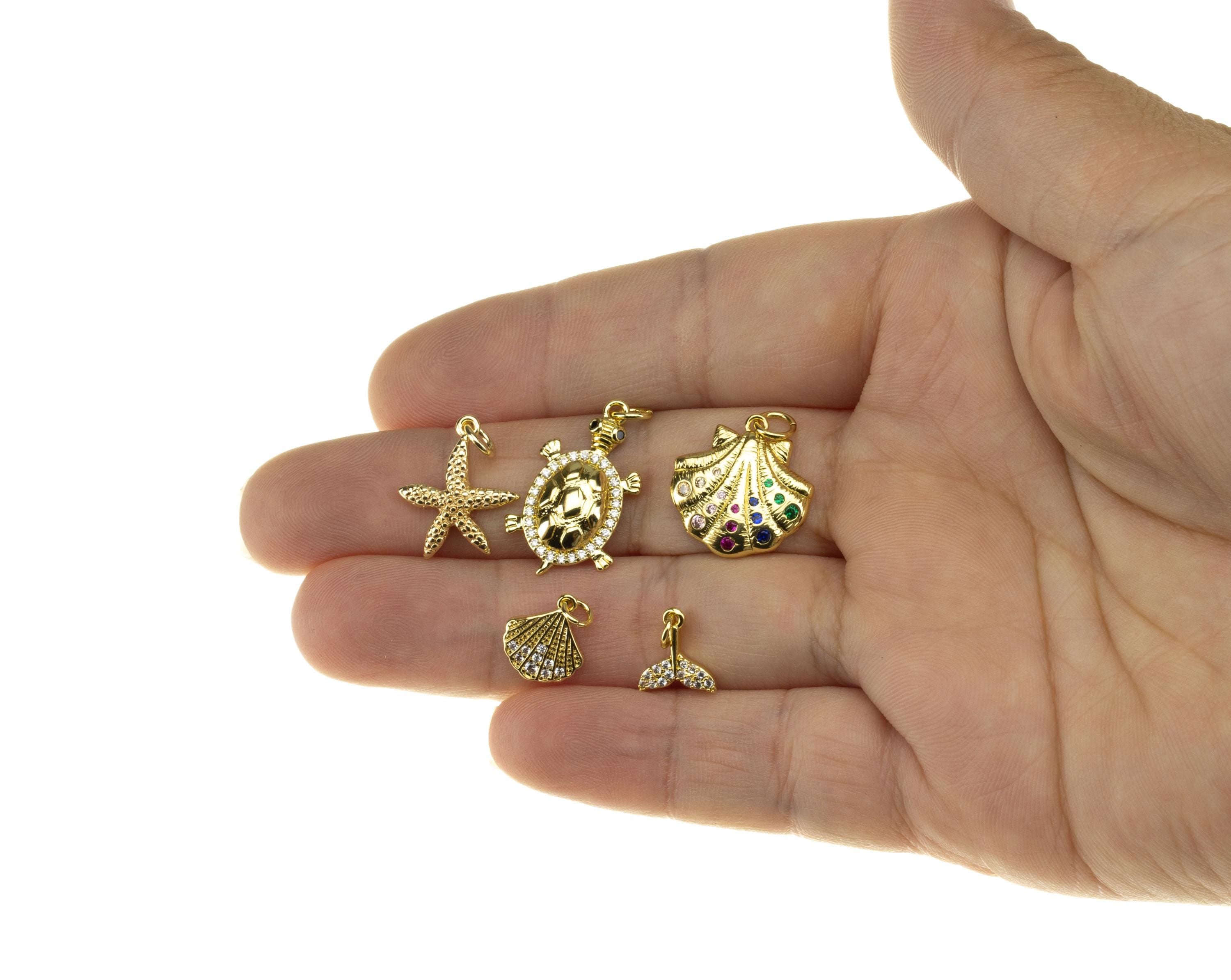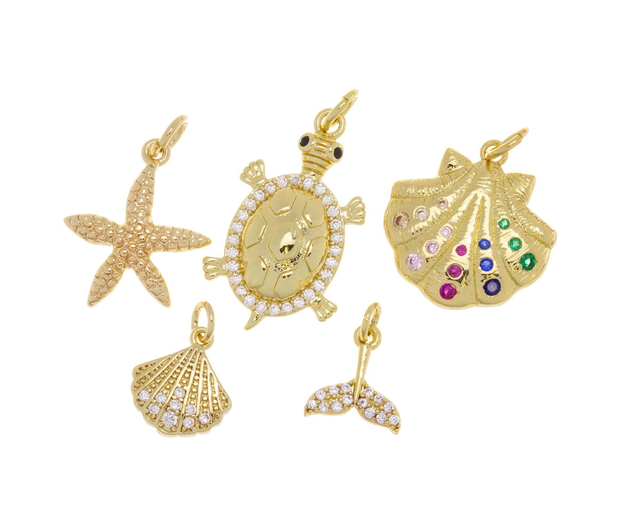 Gold Sea Shell Charm,Sealife Gold Charms,Clam Shell Charm,Whale Tale Charm,Sea Turtle Charm,Starfish Gold Charm,CPG1210-2172-2178-2187-2193
