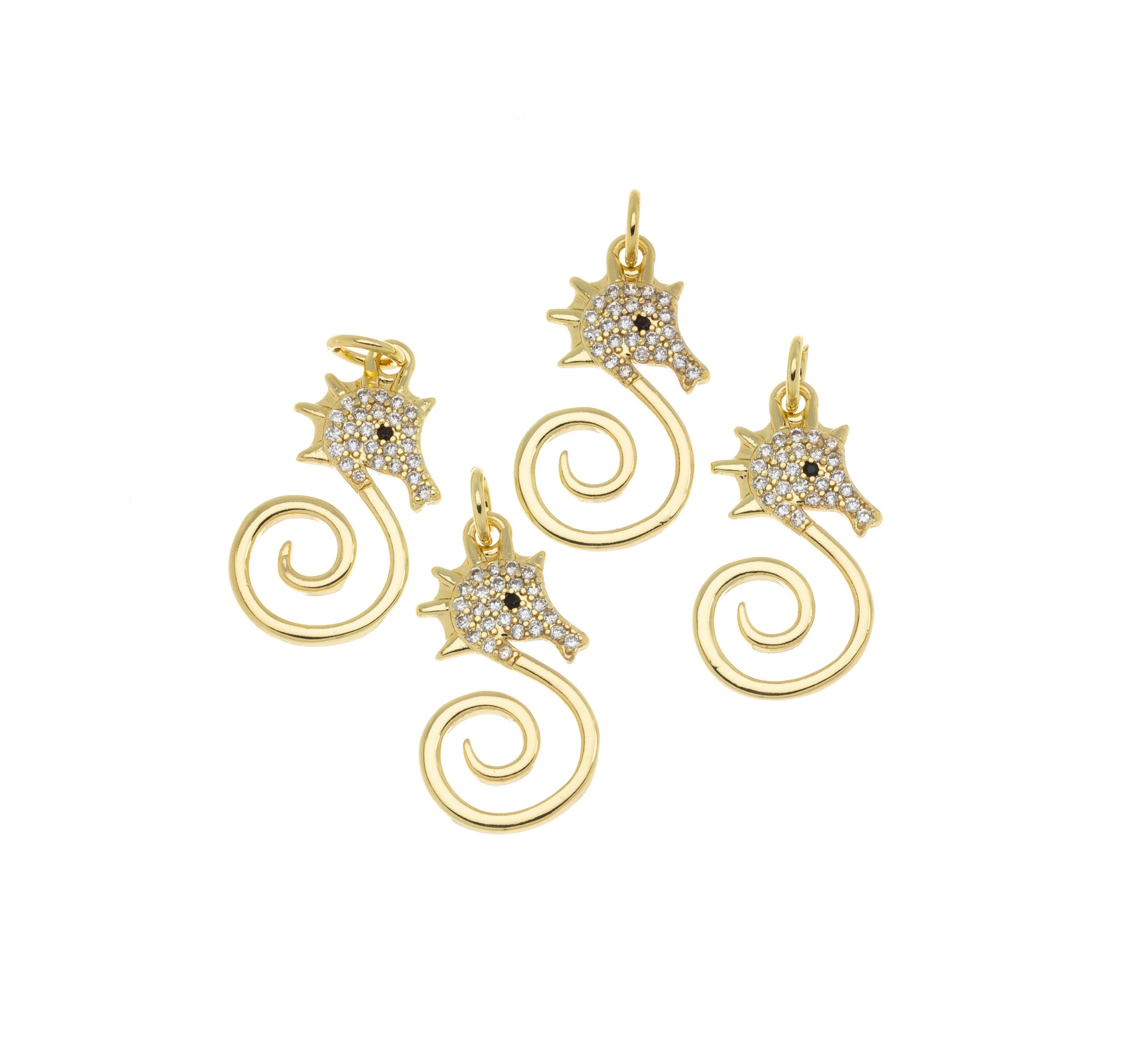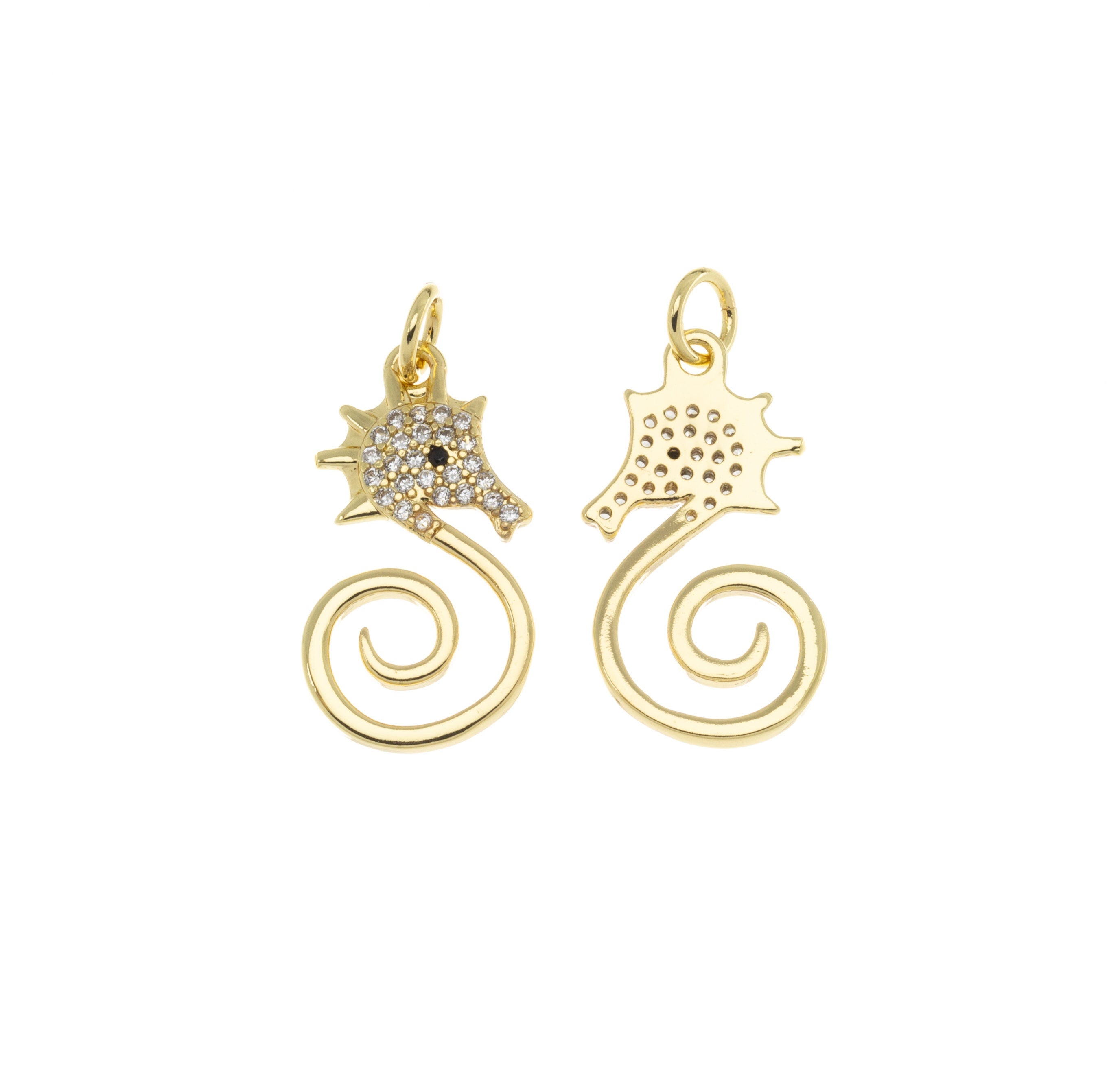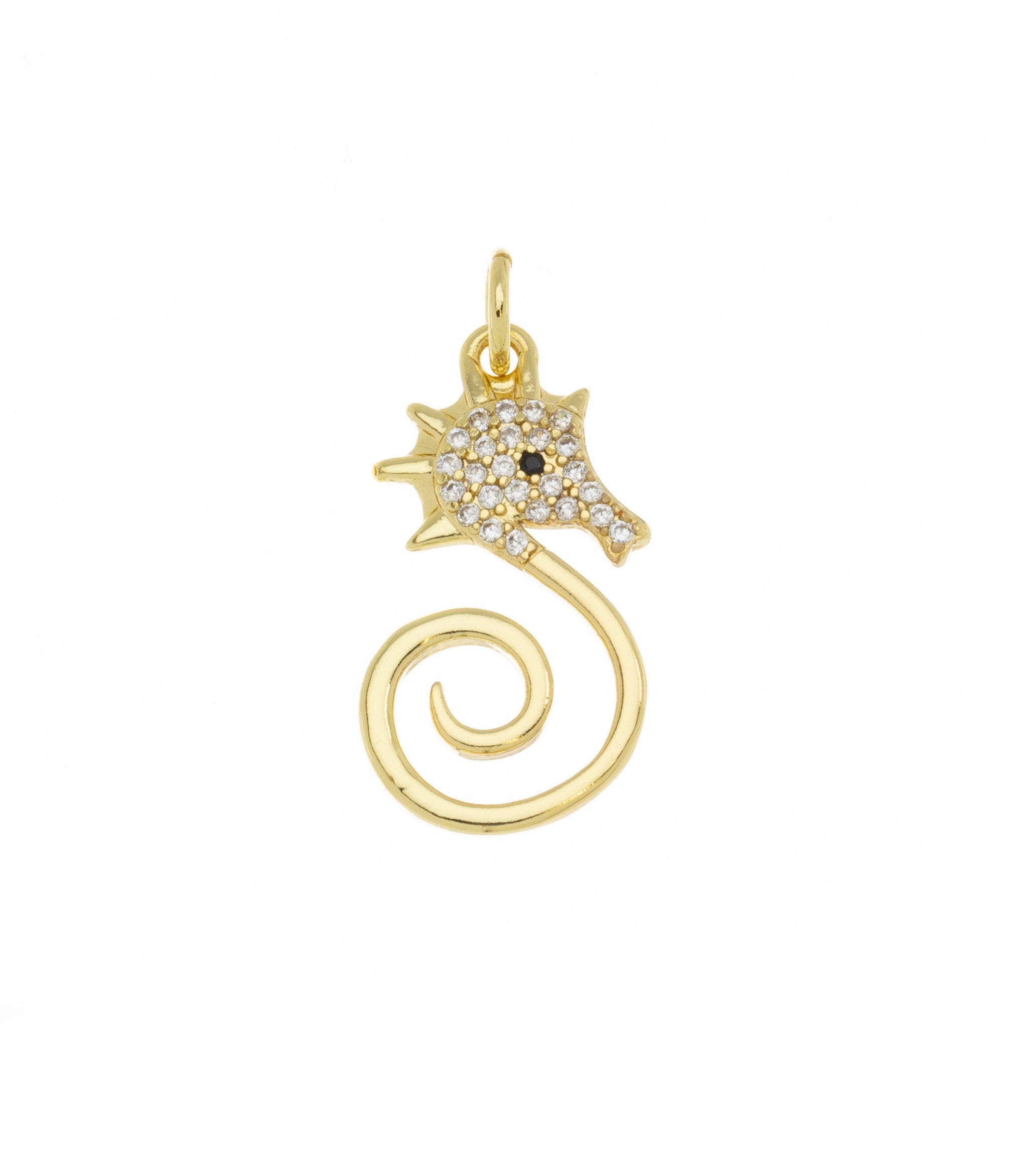 Gold Seahorse Charm,Dainty Seahorse charm for necklace,Gold CZ Seahorse Charm For Necklace,1 pc,5pcs or 10 pcs,WHOLESALE,CPG2001