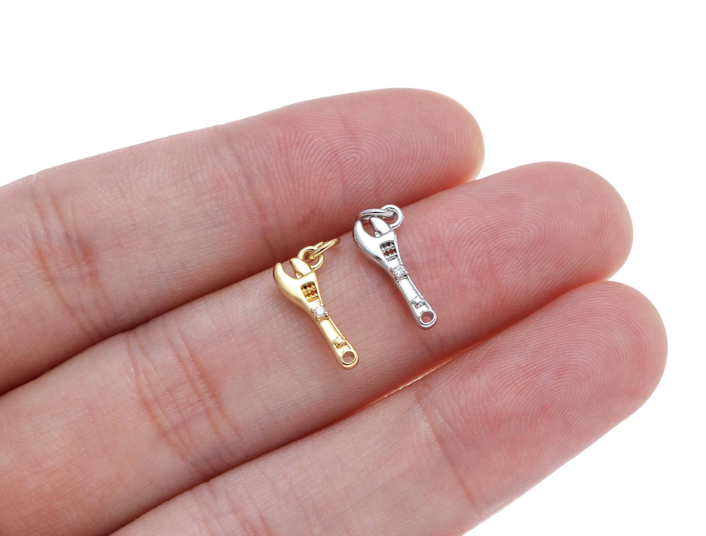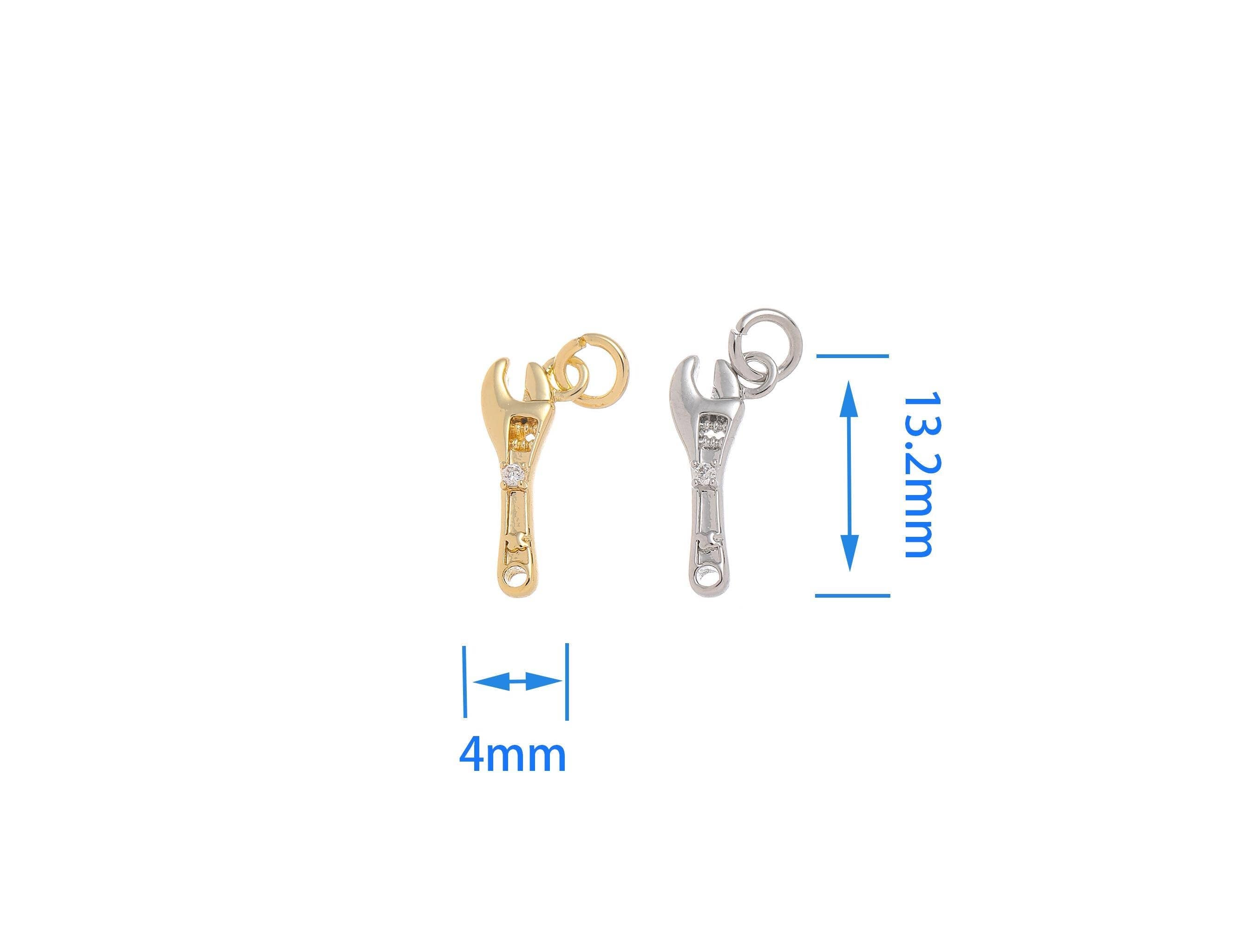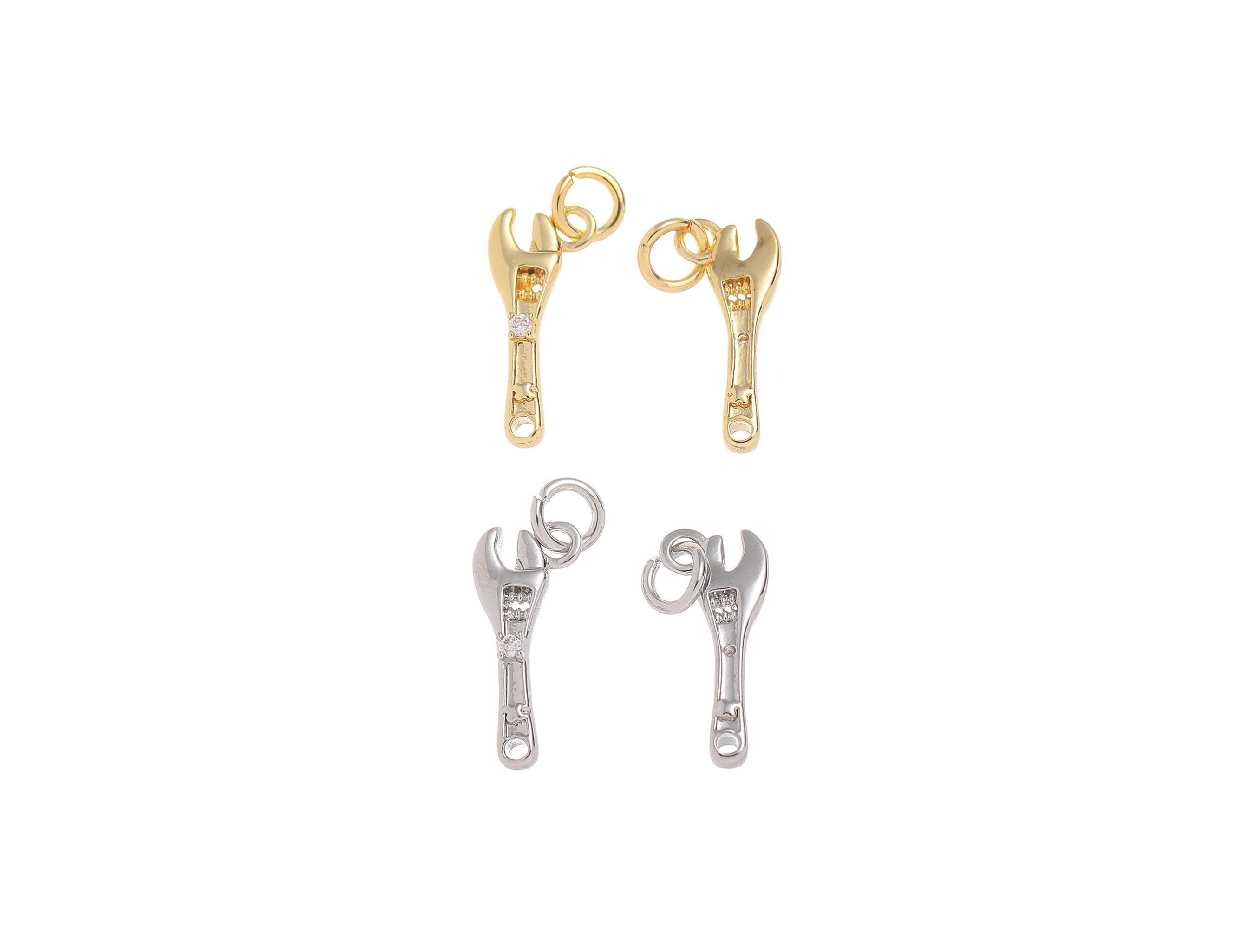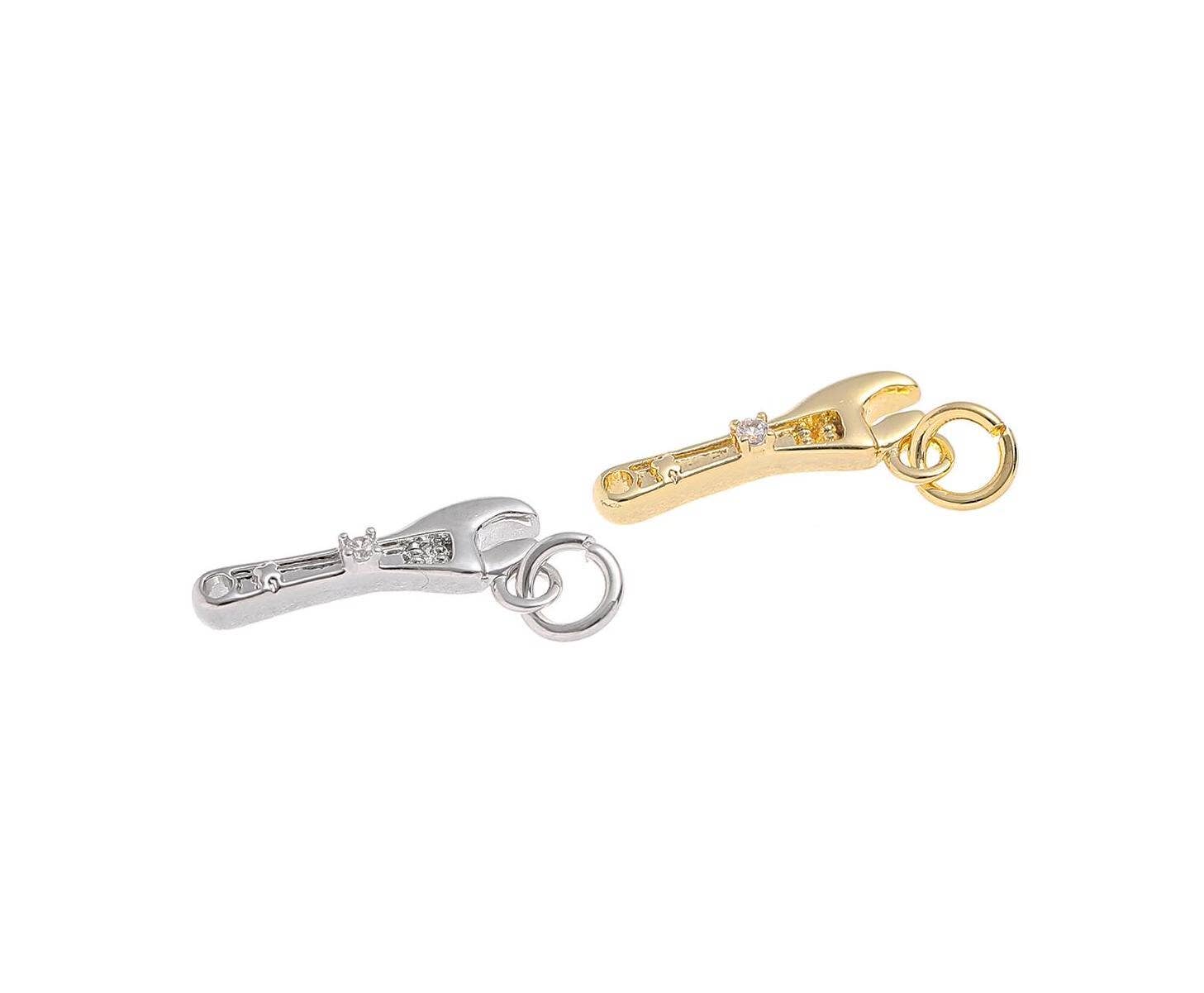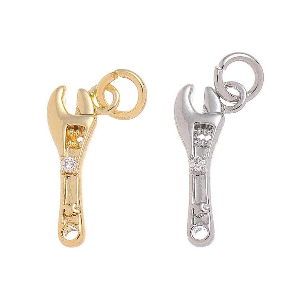 Gold & Silver CZ Wrench Charm for Jewelry Making.CPG-CPS1466