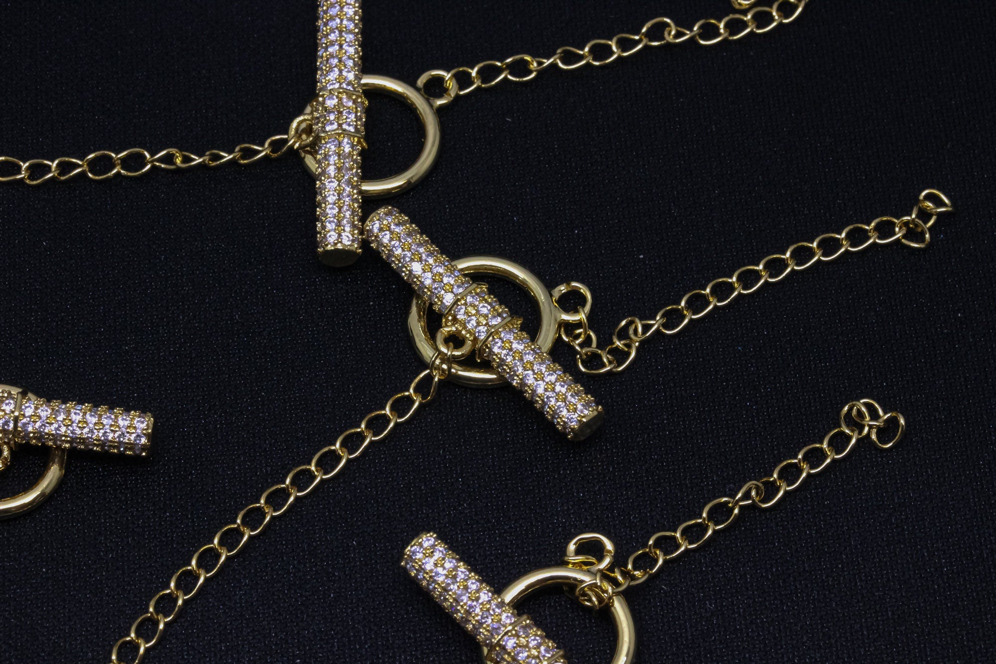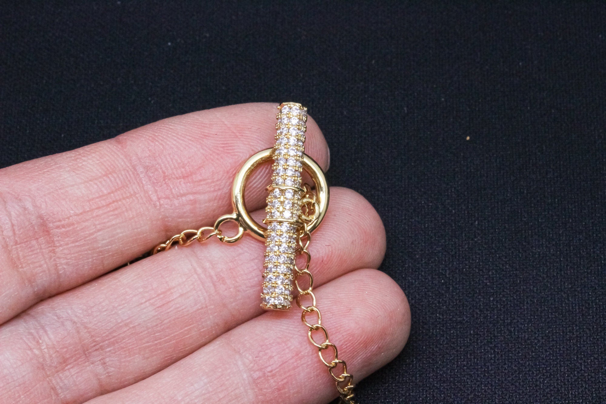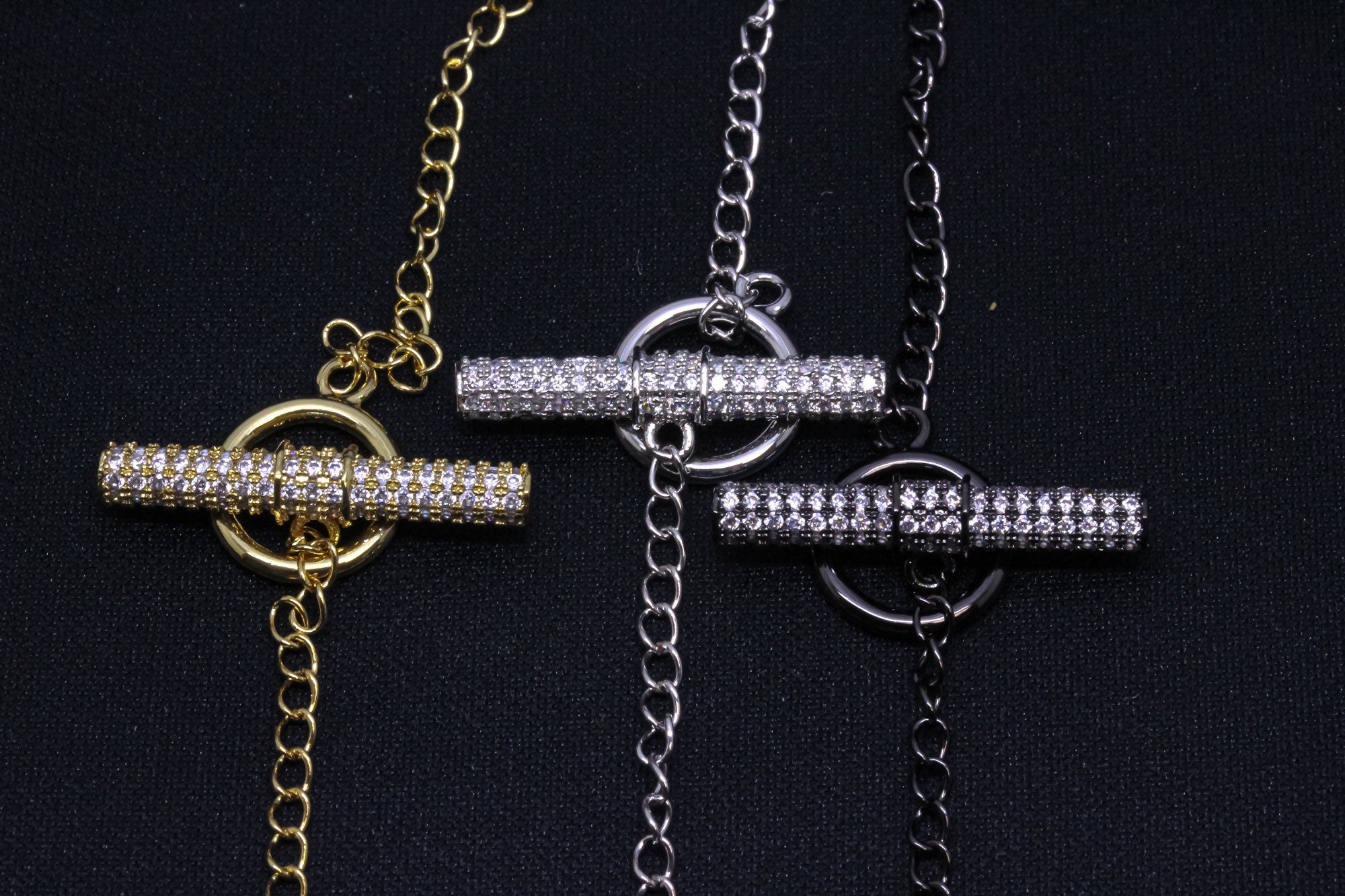 Gold Silver or Gunmetal CZ Toggle Clasp, 12mm width, 26mm long, Toggle Clasp,CLG047,CLS047