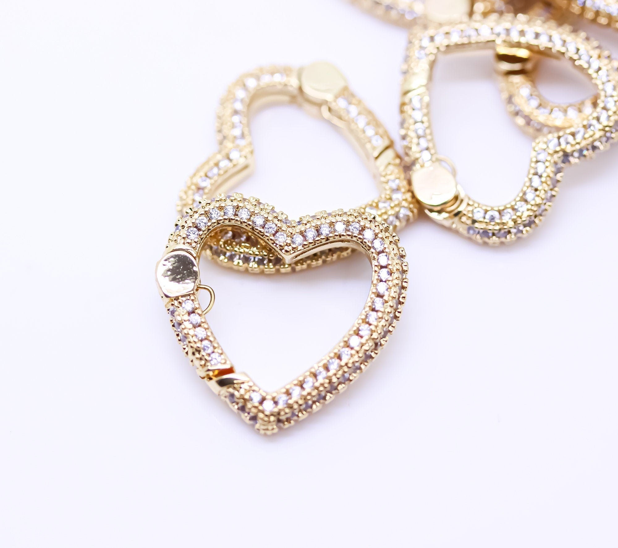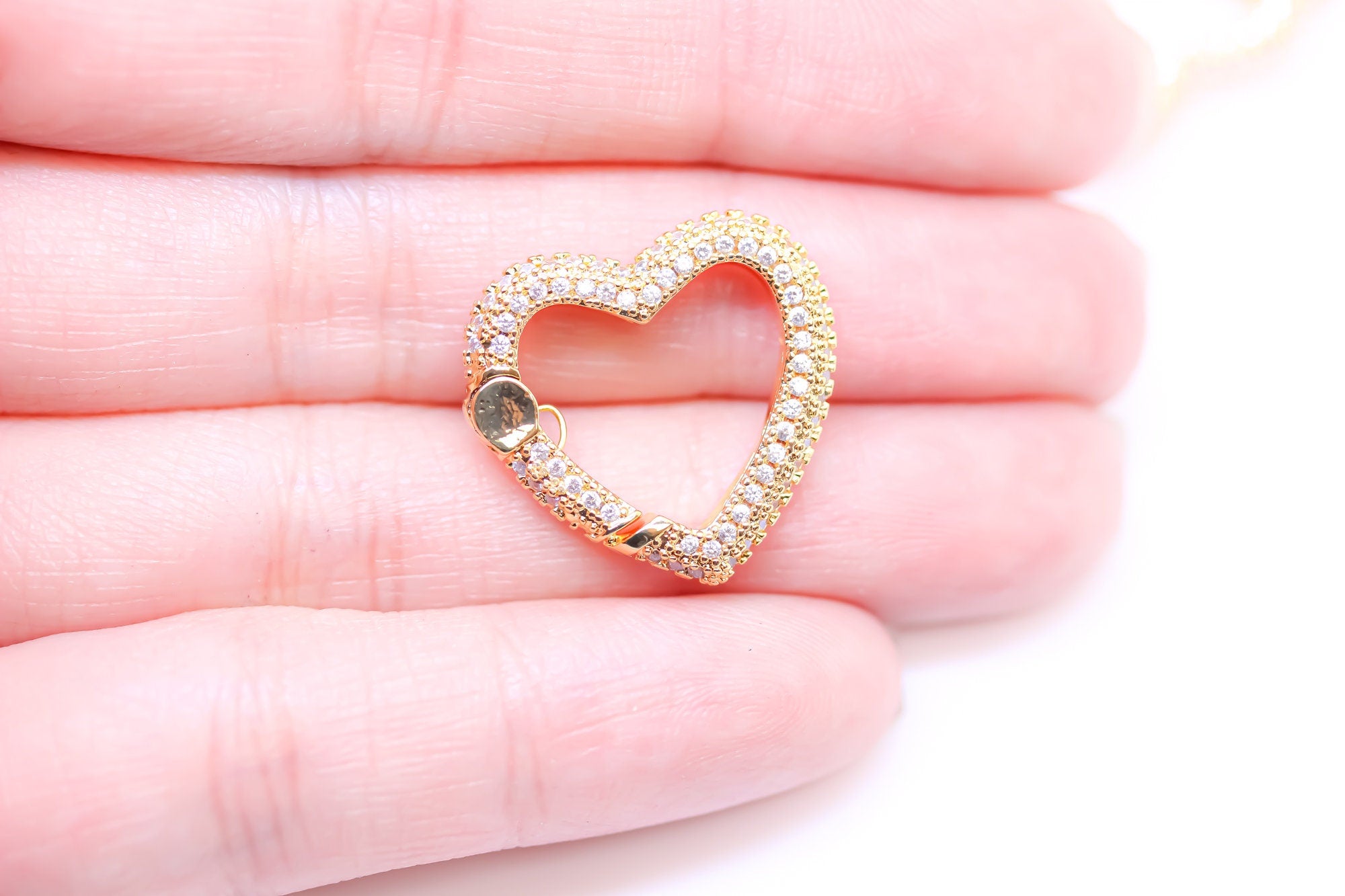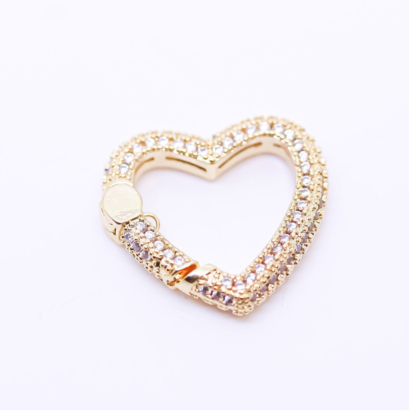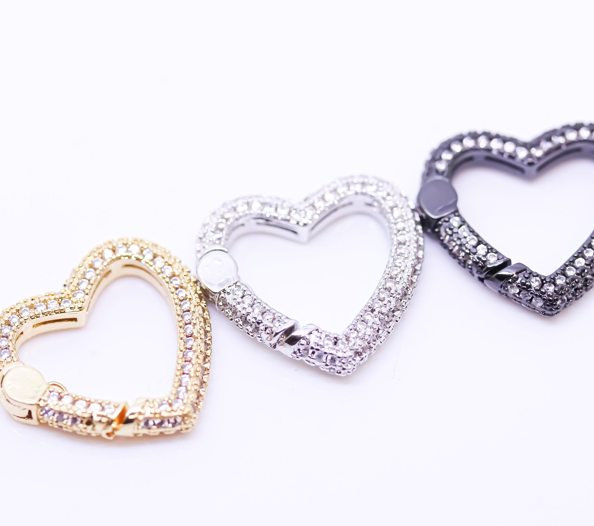 Gold, Silver or Gunmetal Small Full Pave Heart Spring Gate Ring, Double Sided, 20mm,