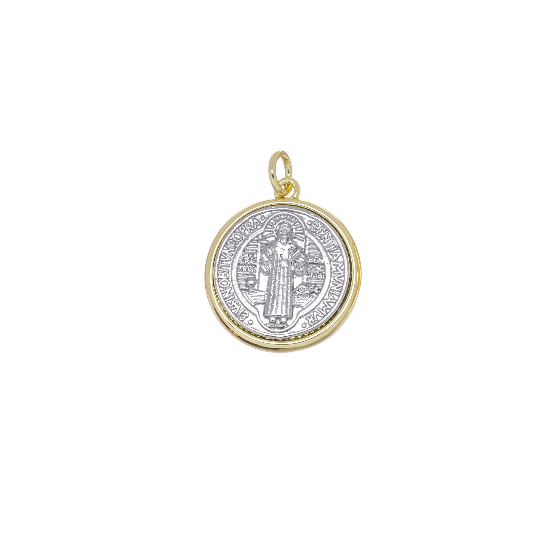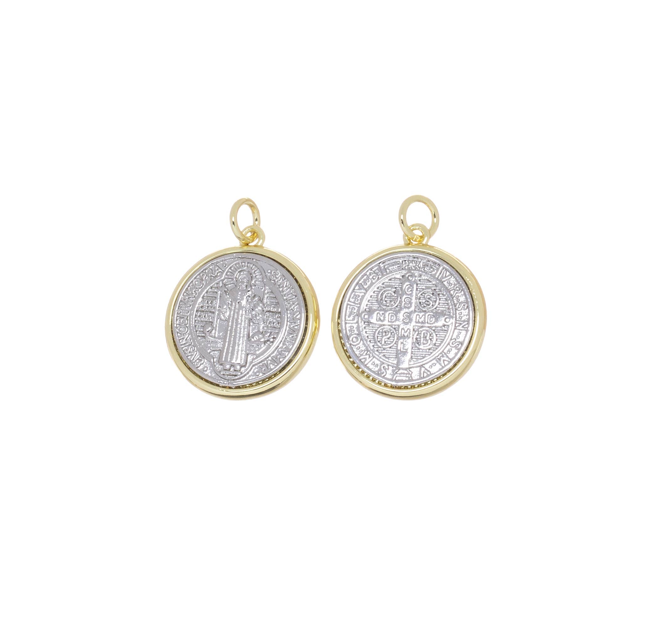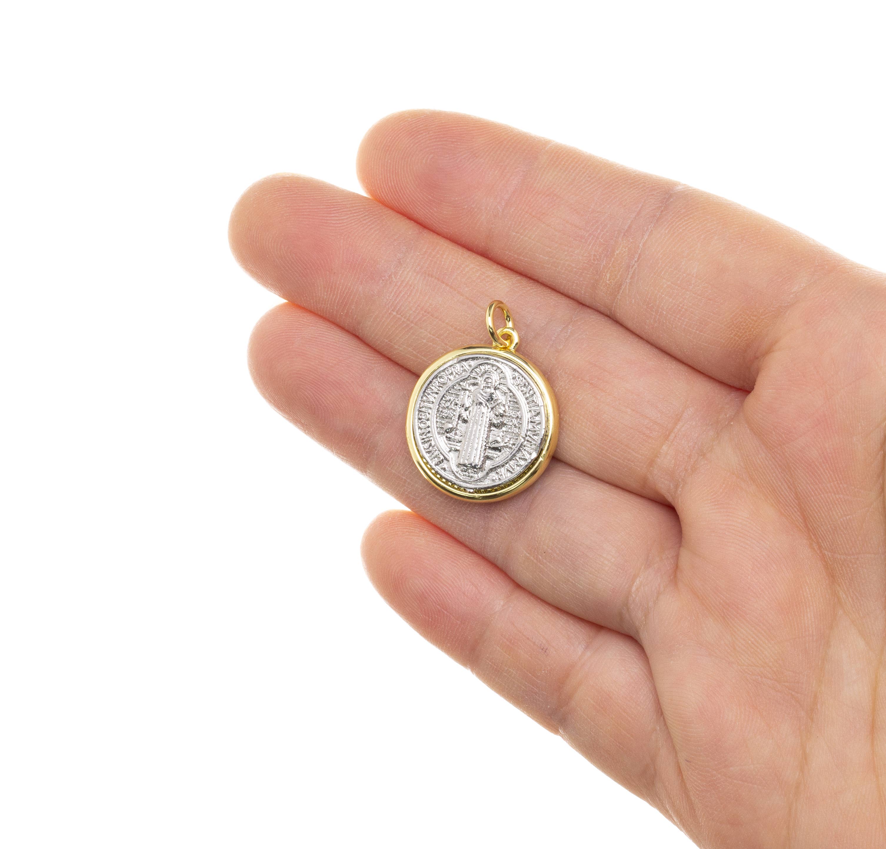 Two Sided St.Benedict Religious Gold Charm For Jewelry Making,Religious Gift charm,Two Tone Silver And Gold High Polished Shiny Finished CPG2742