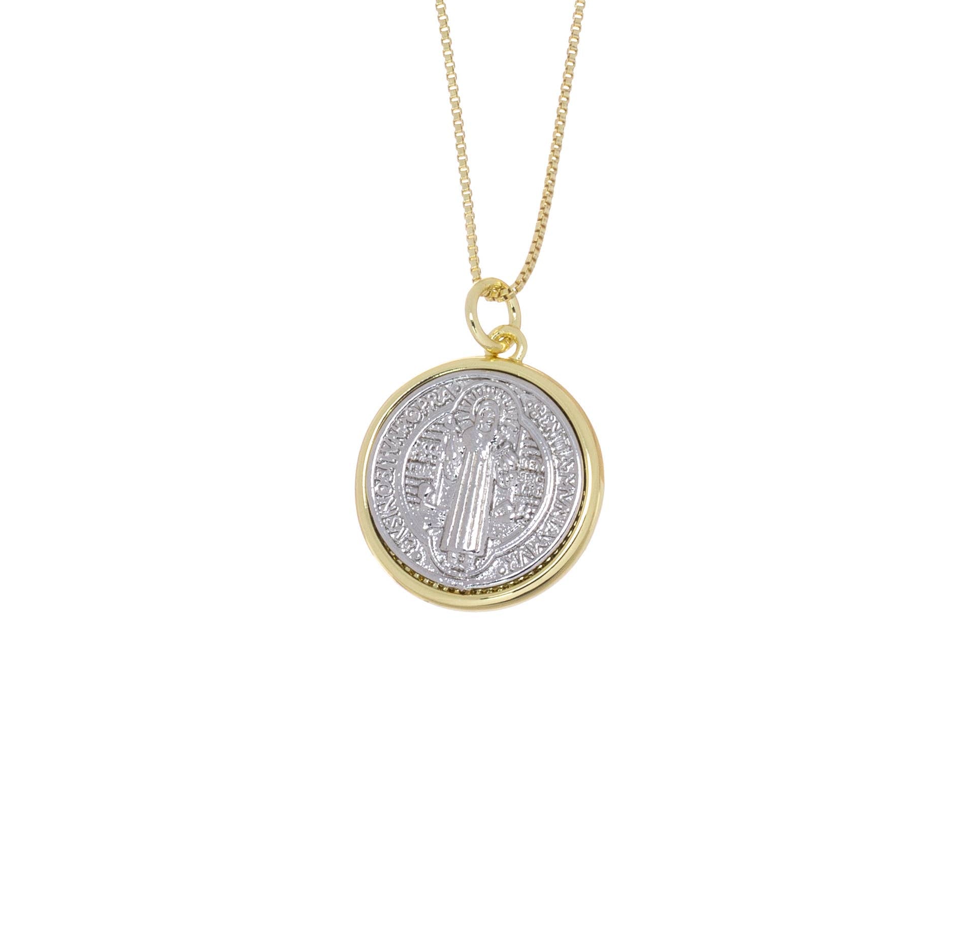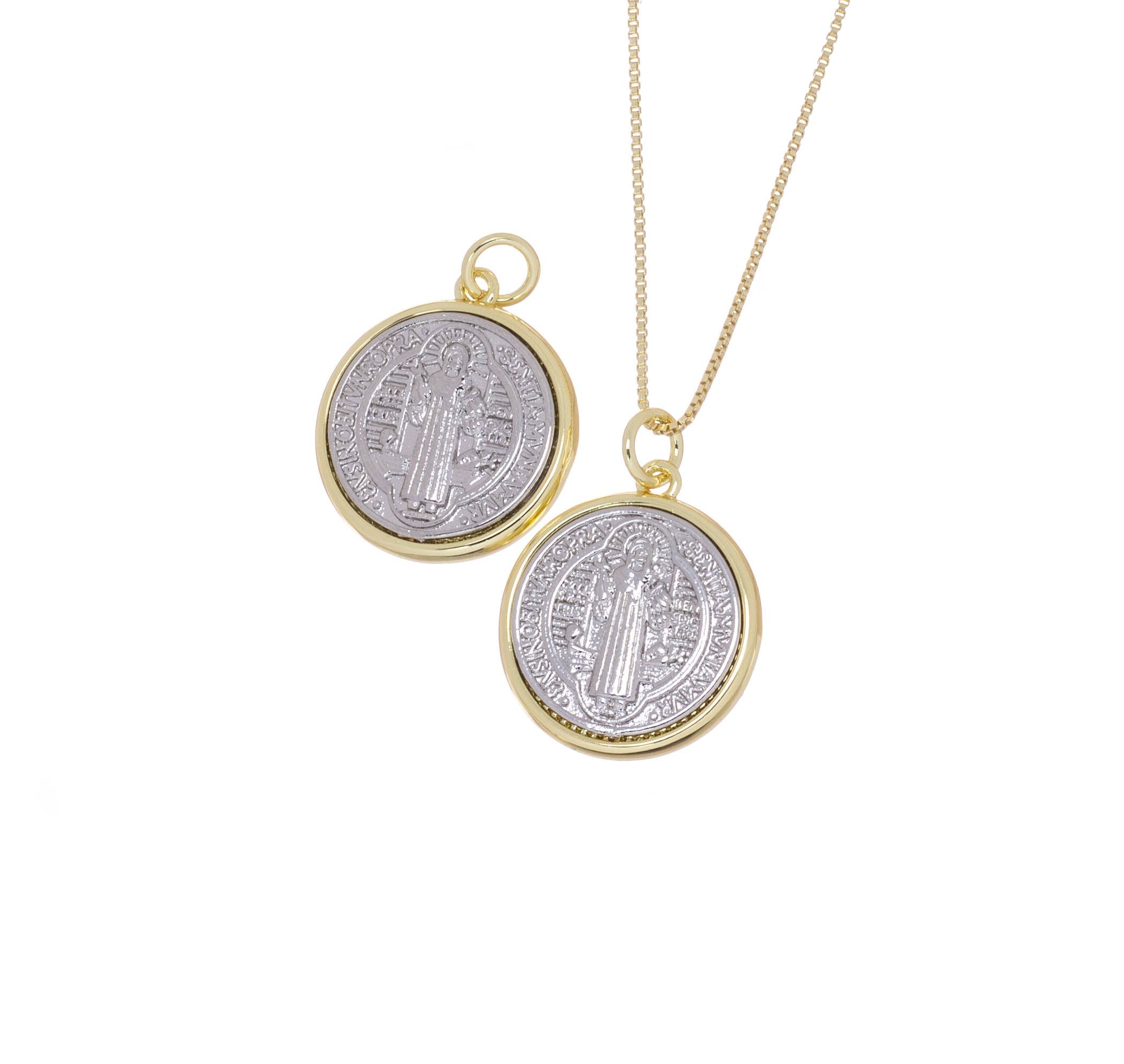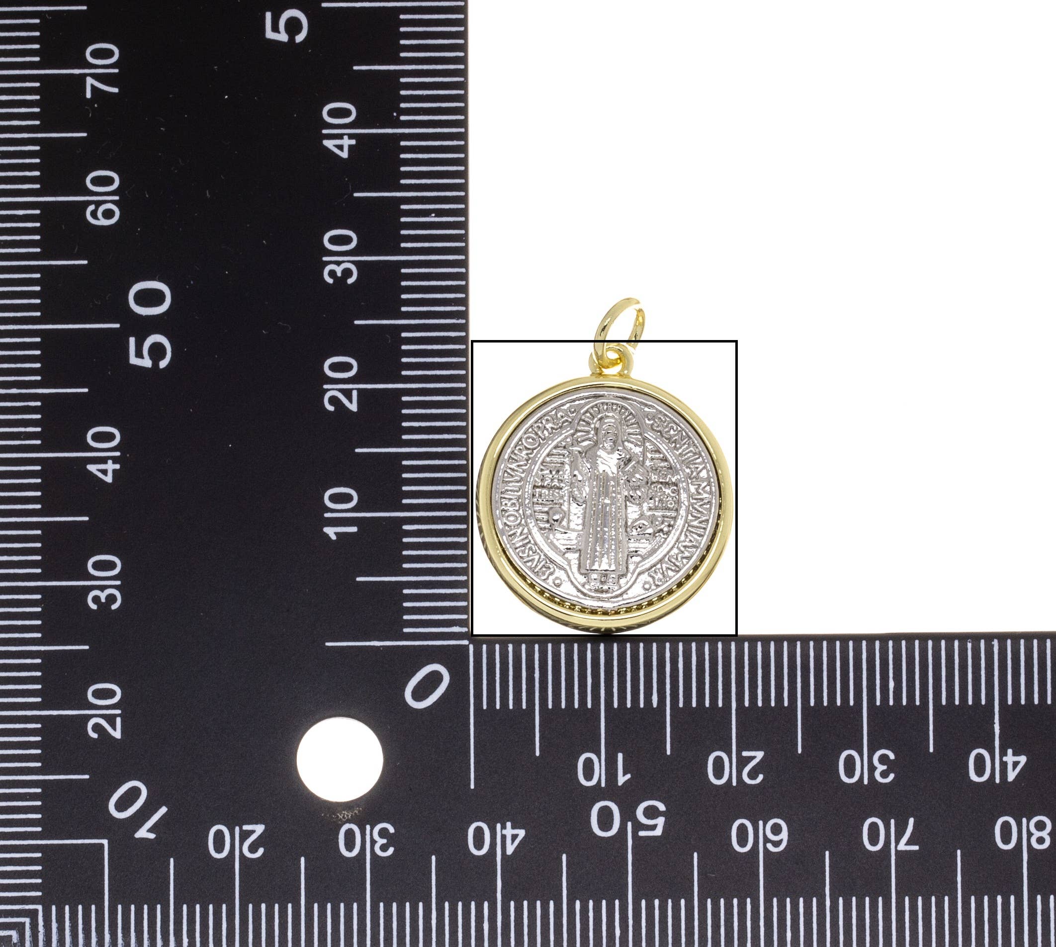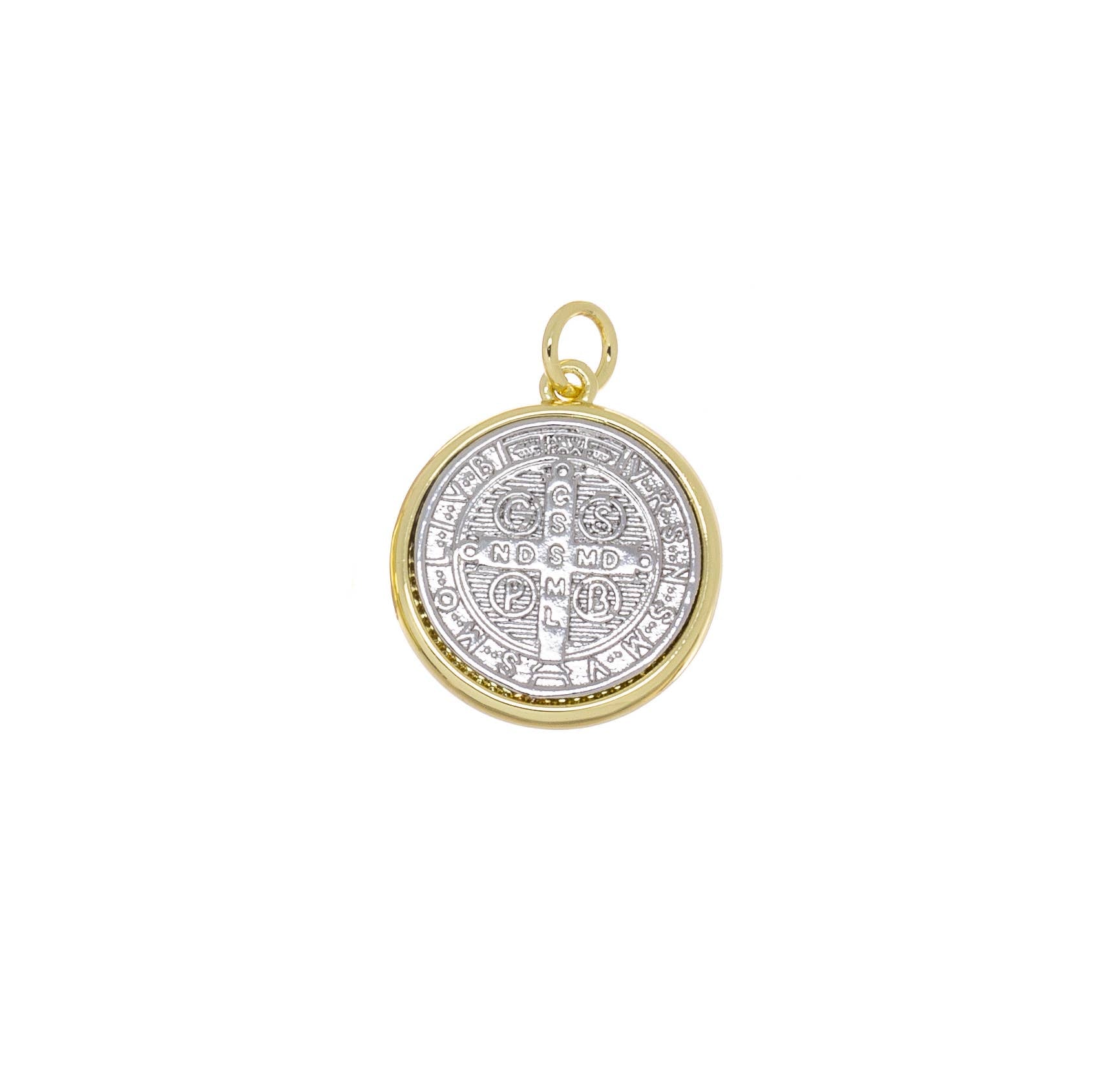 Two Sided St.Benedict Religious Gold Charm For Jewelry Making,Religious Gift charm,Two Tone Silver And Gold High Polished Shiny Finished CPG2742