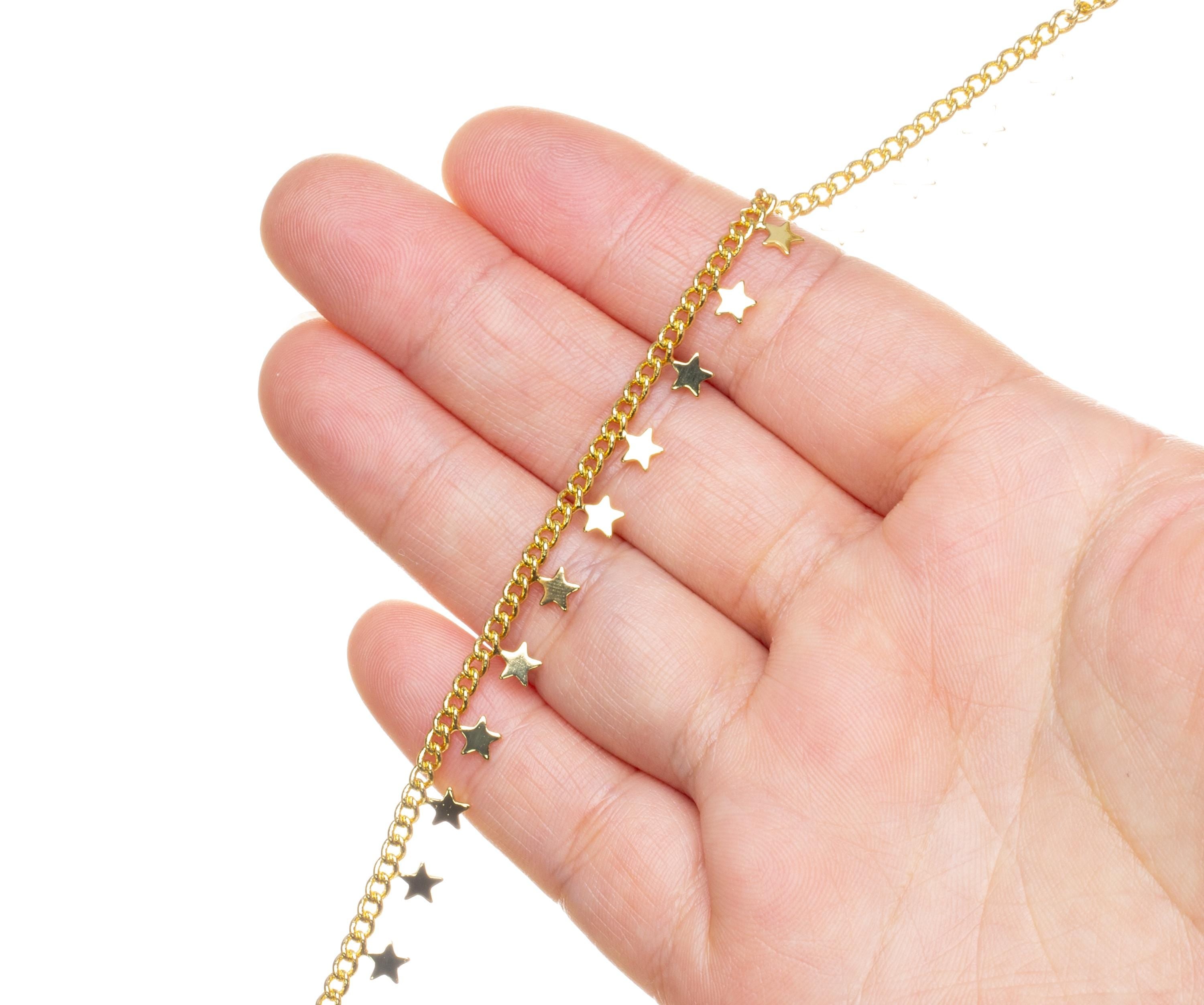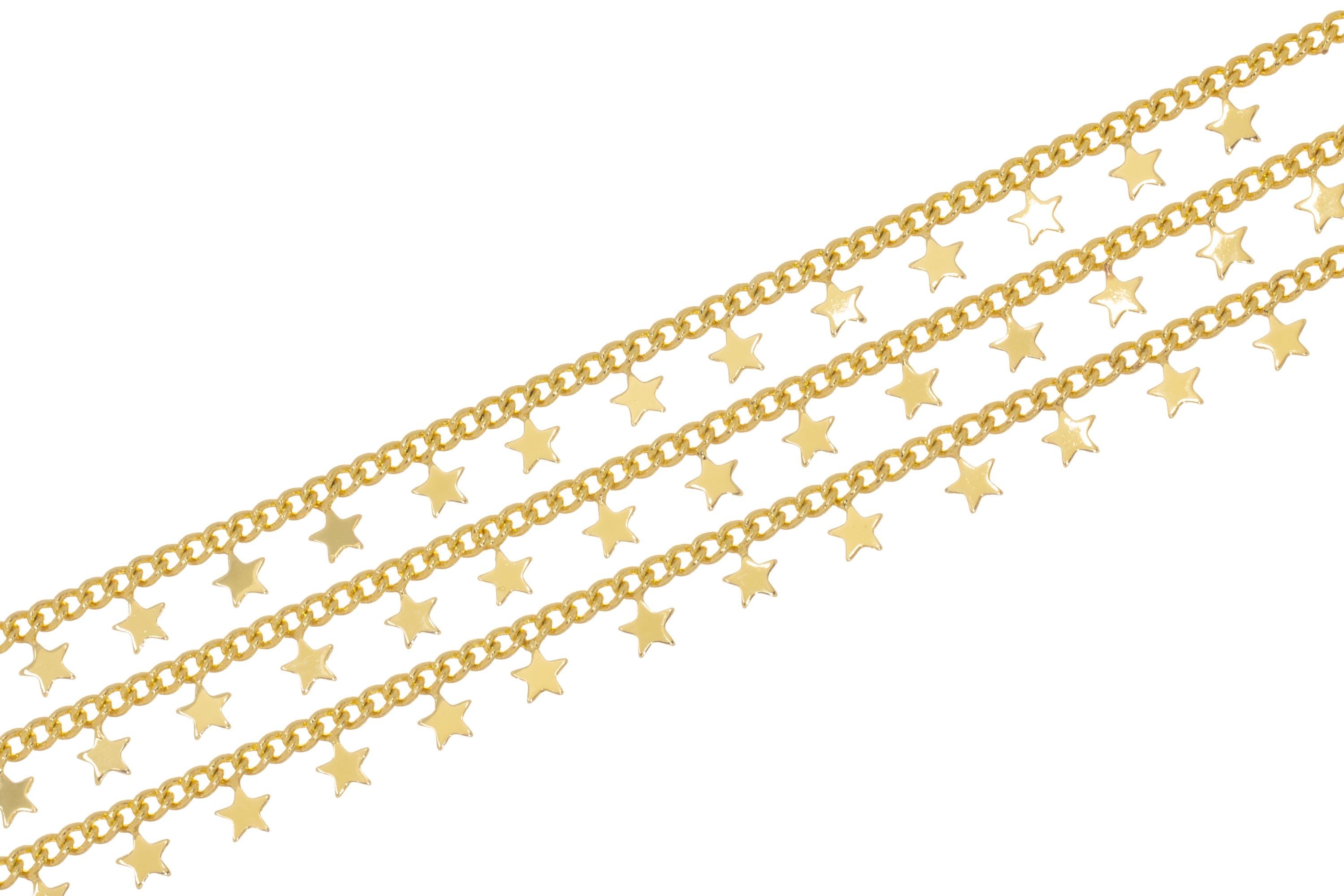 Gold Star Curb Link Chain,Star Gold Chain For Jewelry Making,Star Curb Link Gold Chain,Shiny Gold Star Chain,CHG0072
