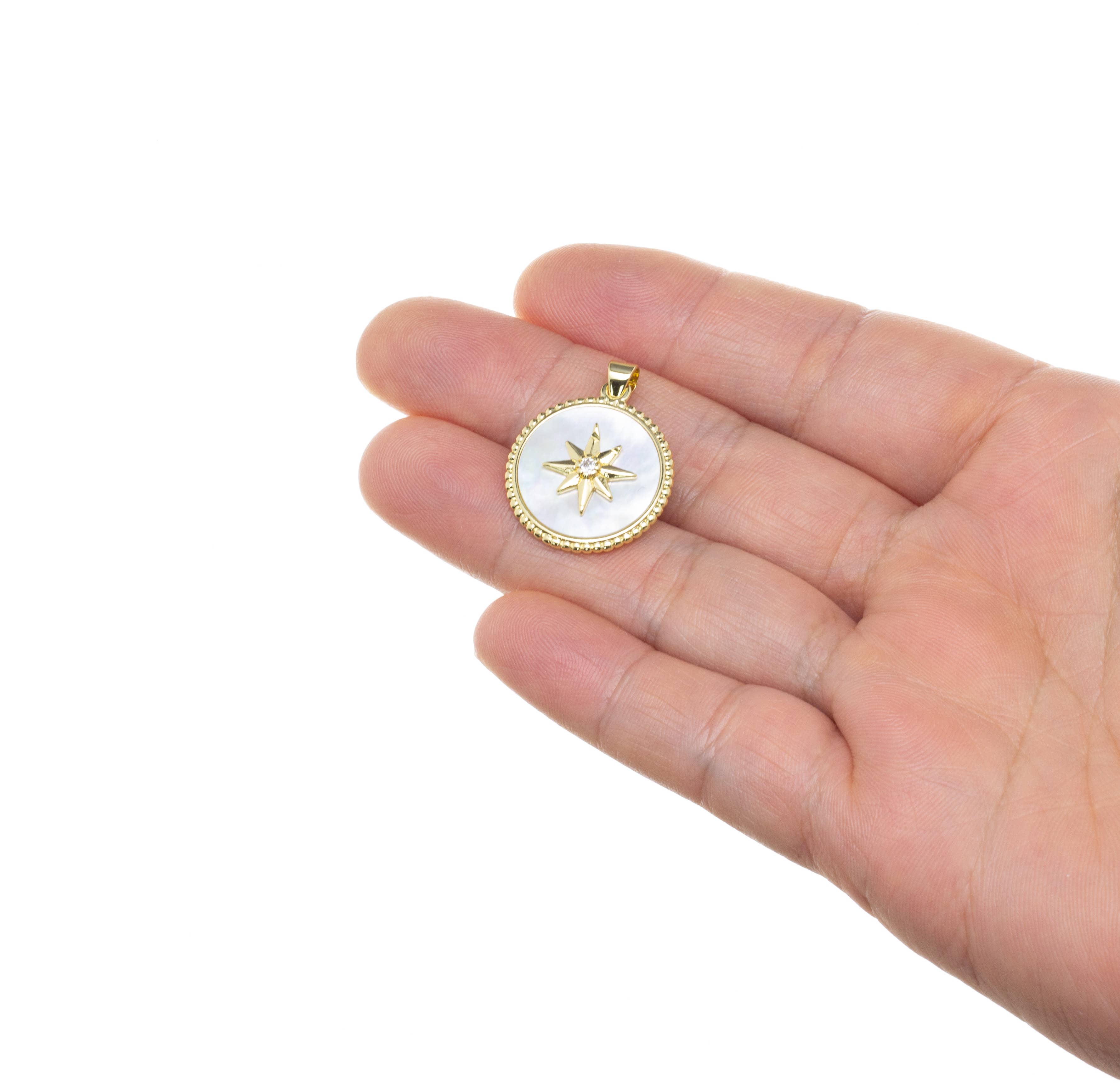 Gold Starburst CZ Charm With Mother Of Pearl ,CZ Star Charm For Jewelry Making,CPG2733