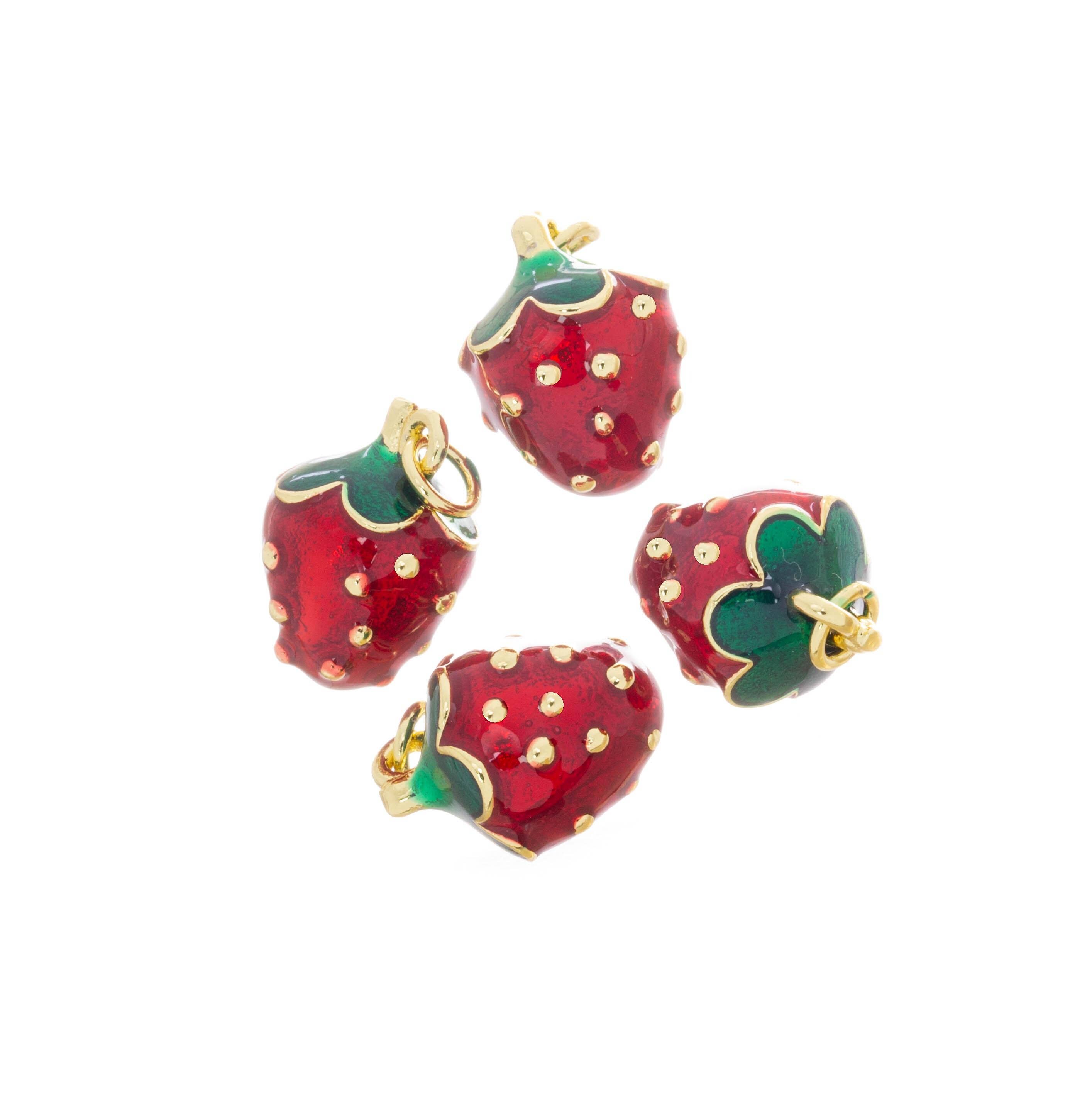 Gold Strawberry Charm for Jewelry Making CPG2559