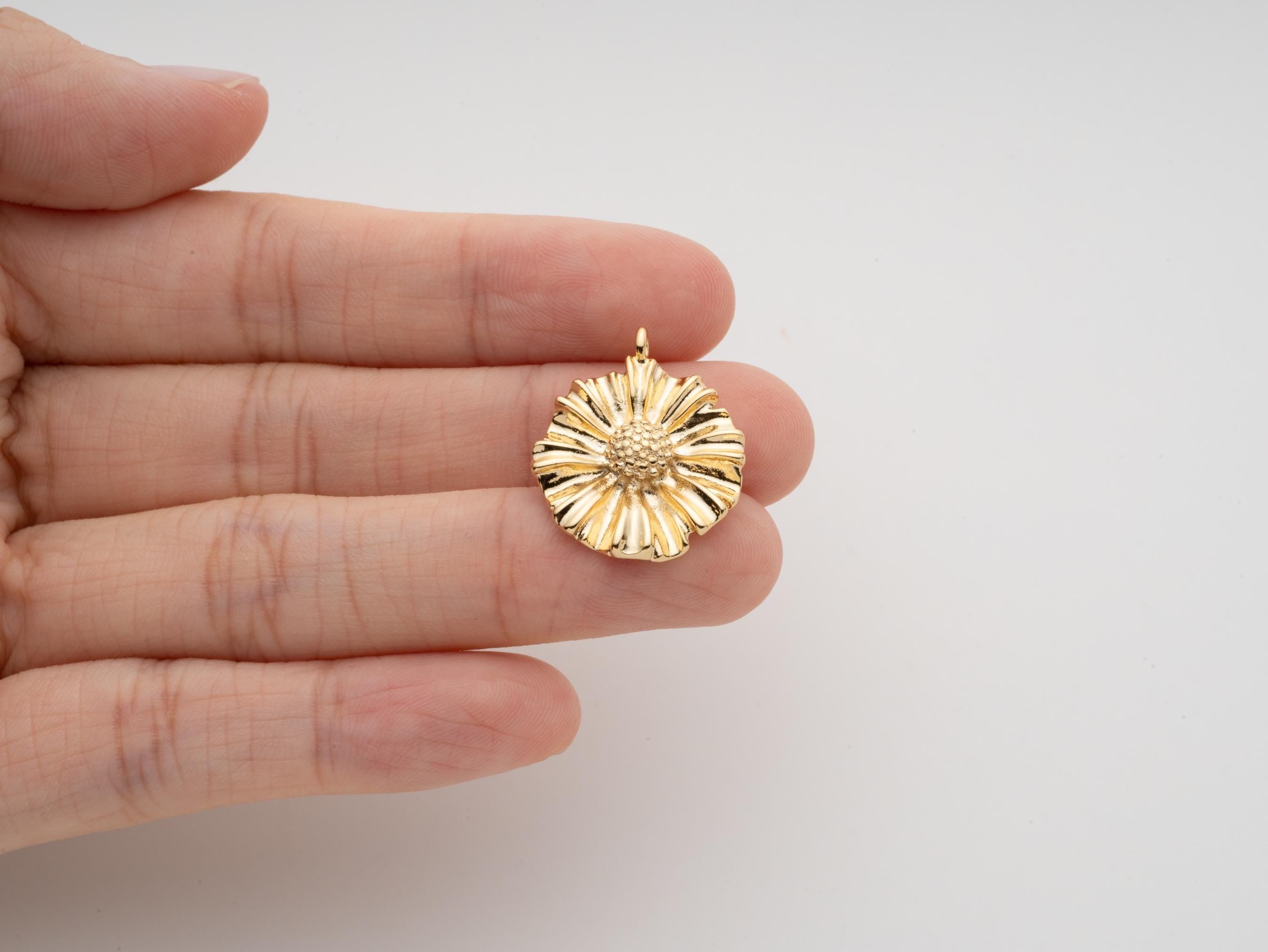 Gold Sunflower Daisy Medallion Pendant, Summer Garden Inspired, Daisy Flower Pendant, 18.5mm, string though pendant,no need jumpring,CPG2100