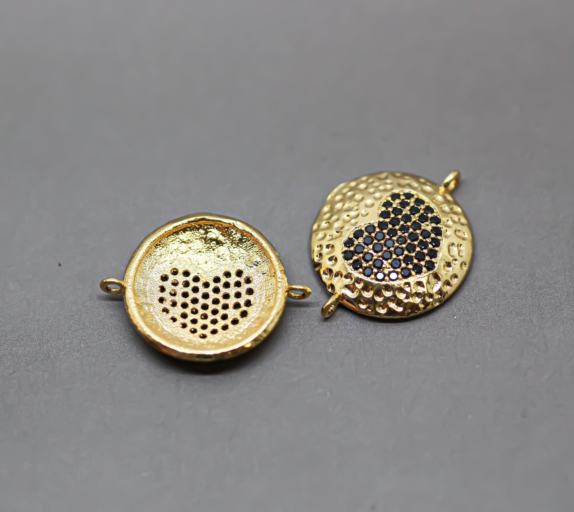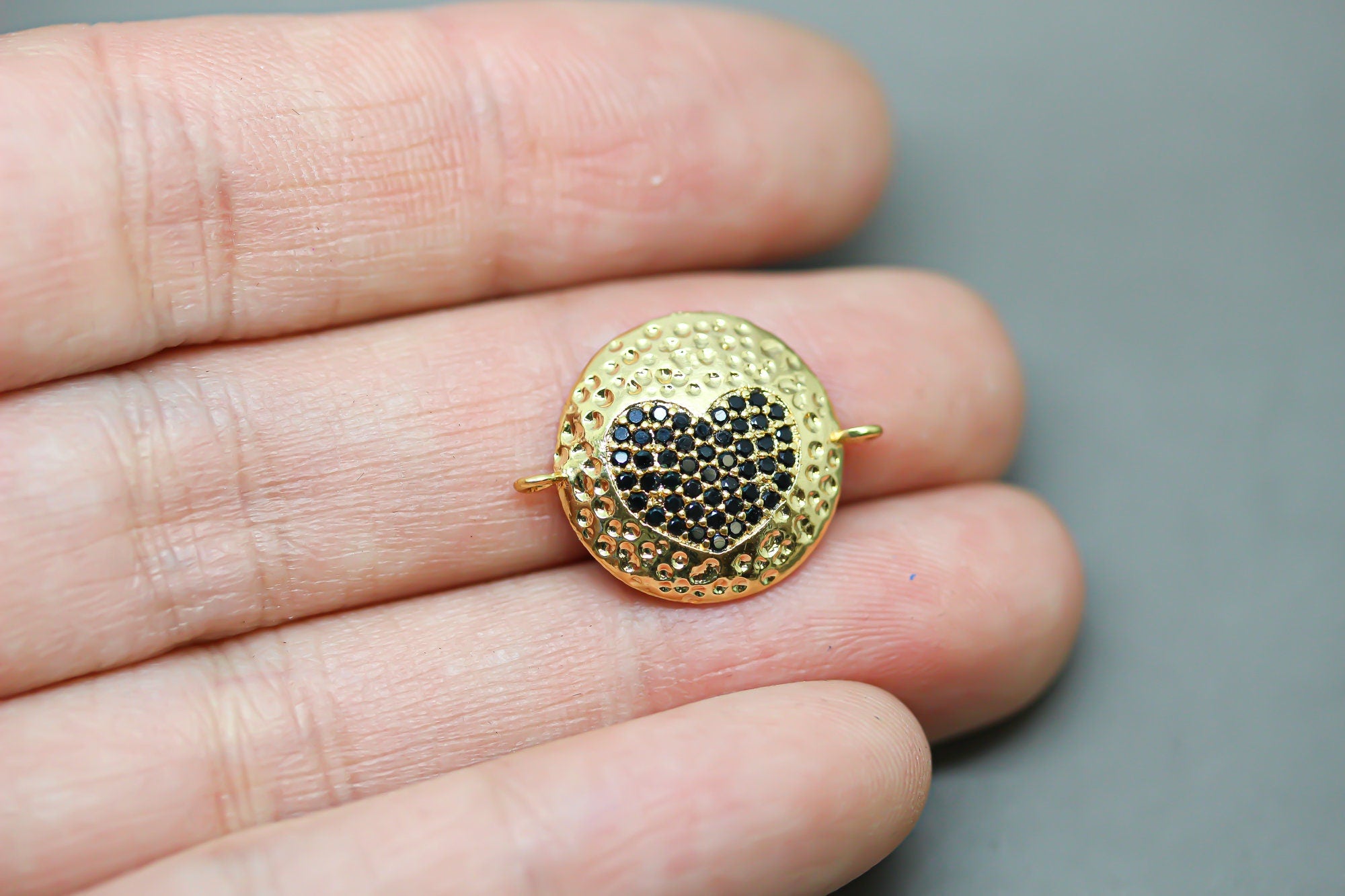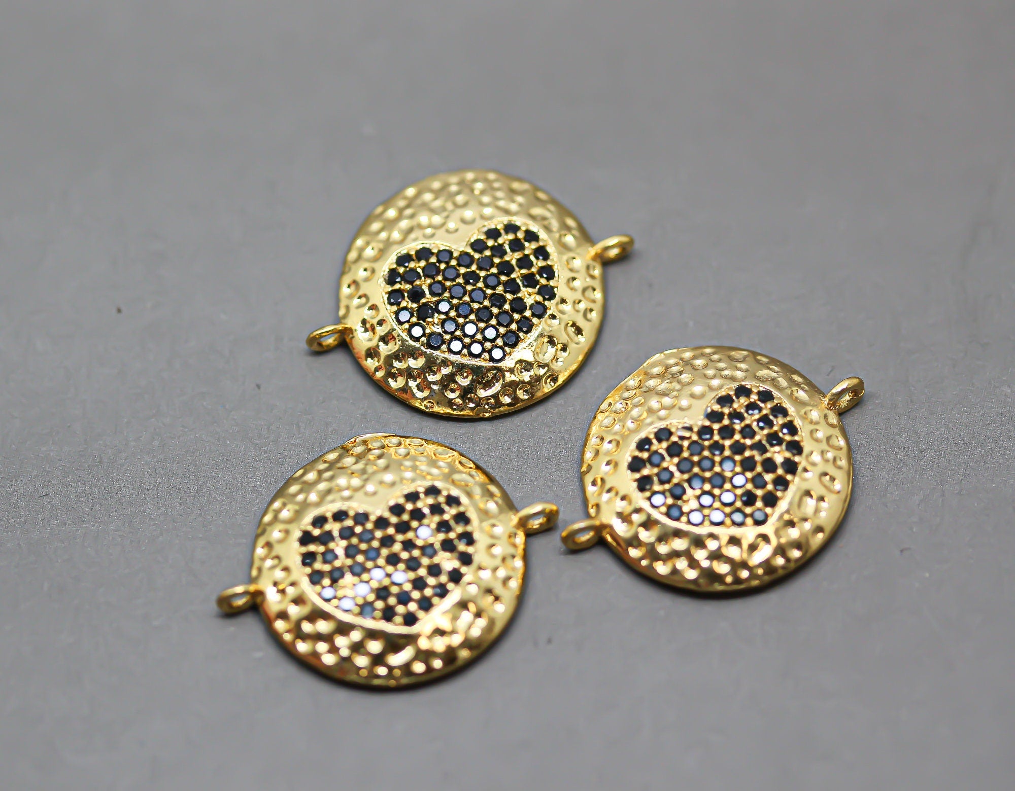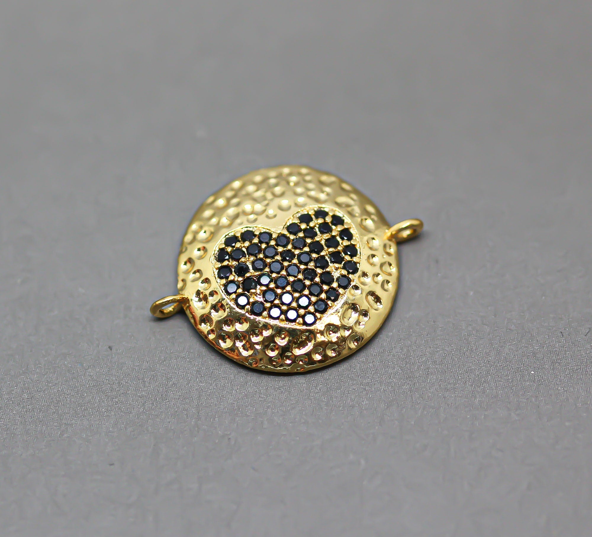 Gold Textured Black cz Heart Connector, Heart connector, textured heart, black heart connector, Heart Link, 1 pc or 10 pcs, WHOLESALE CNG041