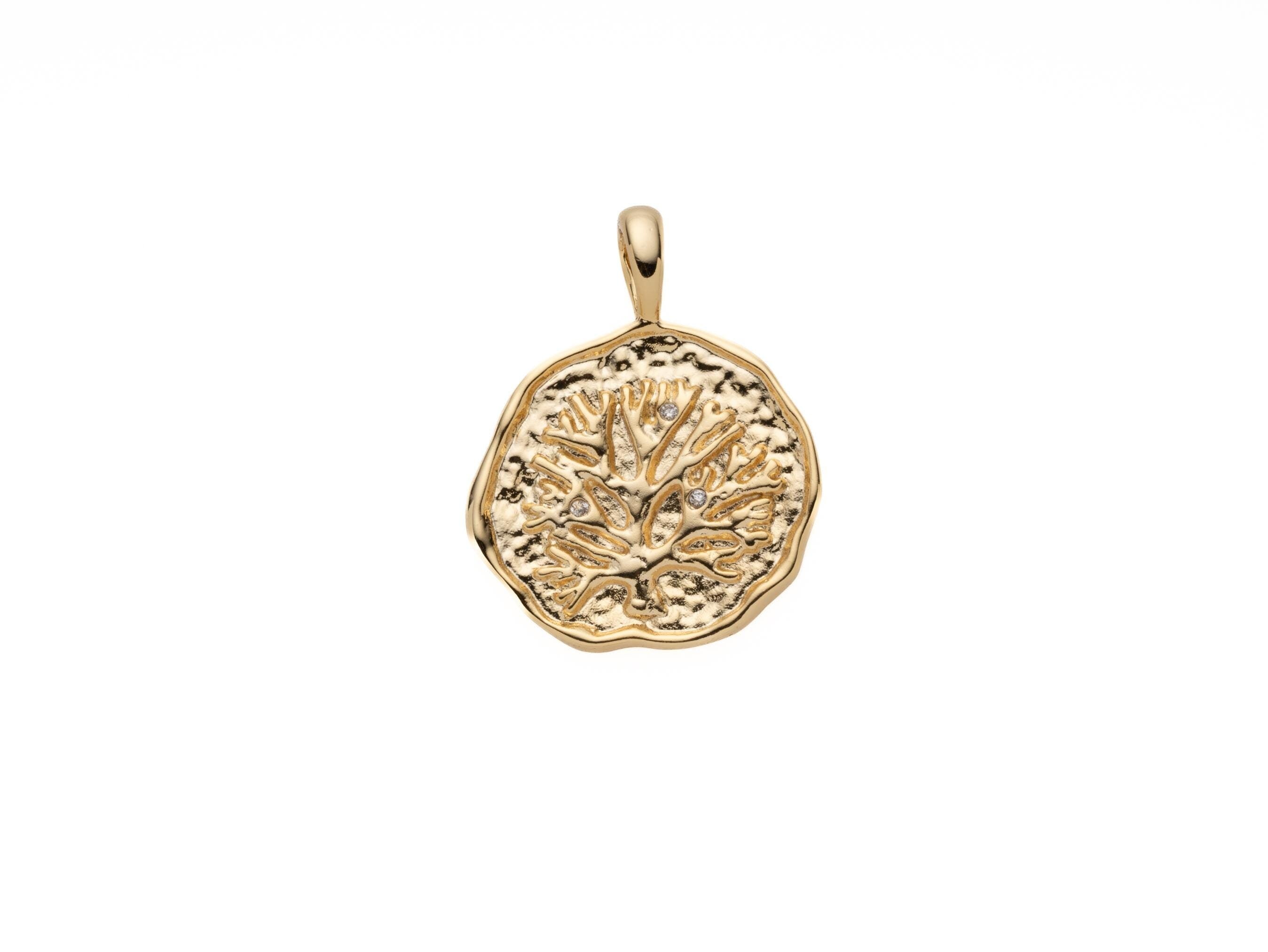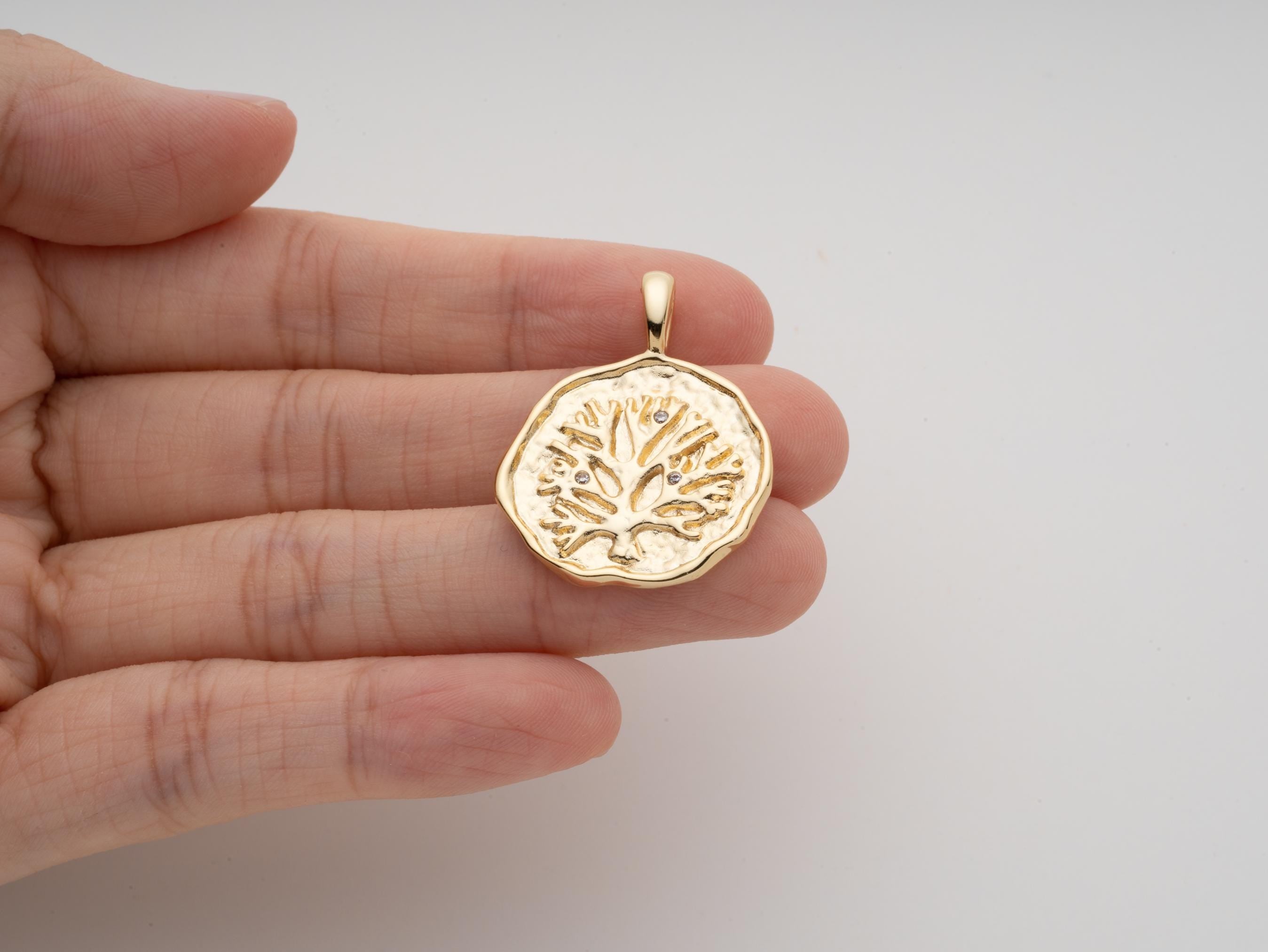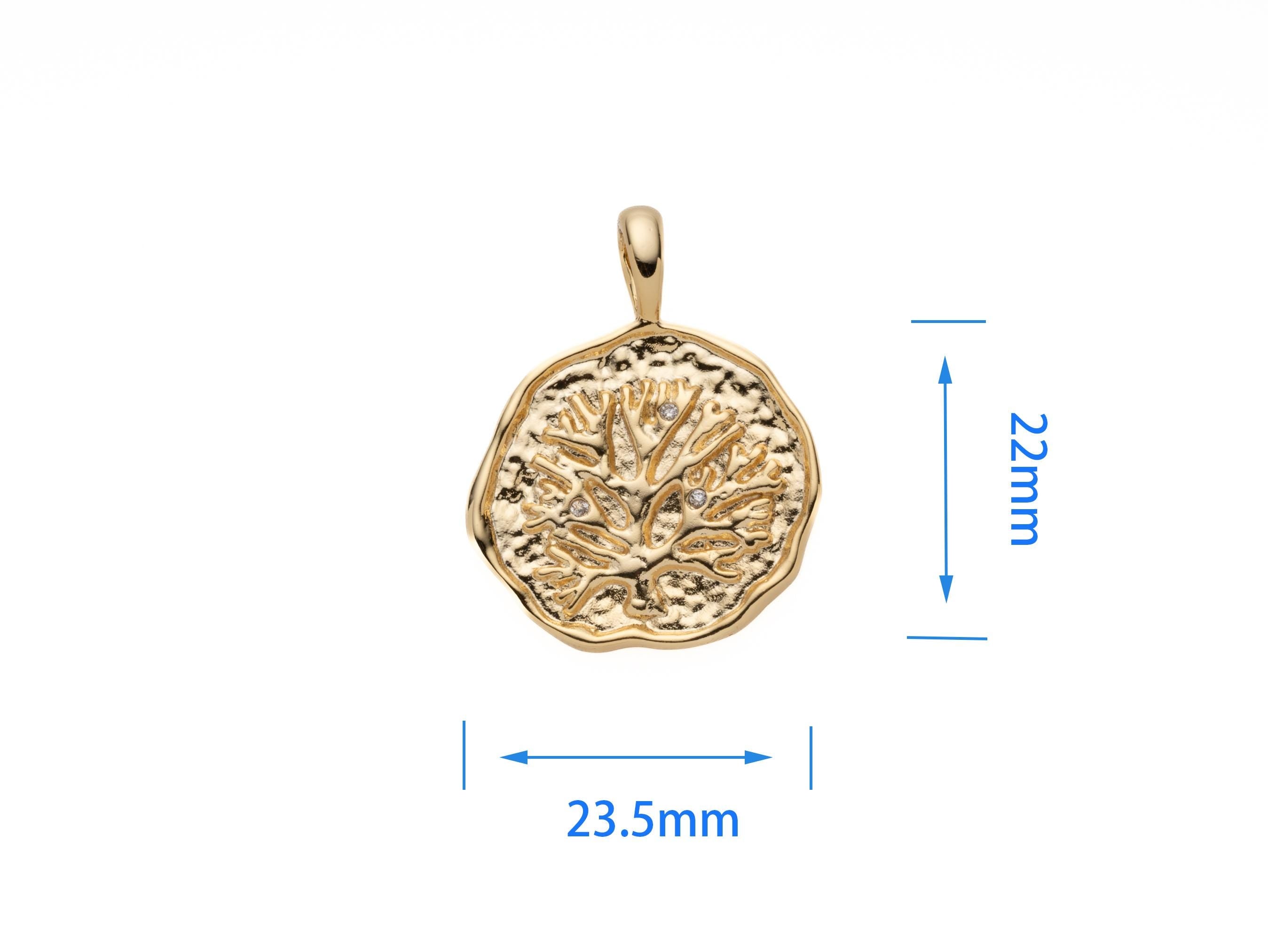 Gold Tree Of life Cz Medallion Pendant, Family Tree Pendant, Family Symbol, Tree of Life Slide through chain, CPG2097