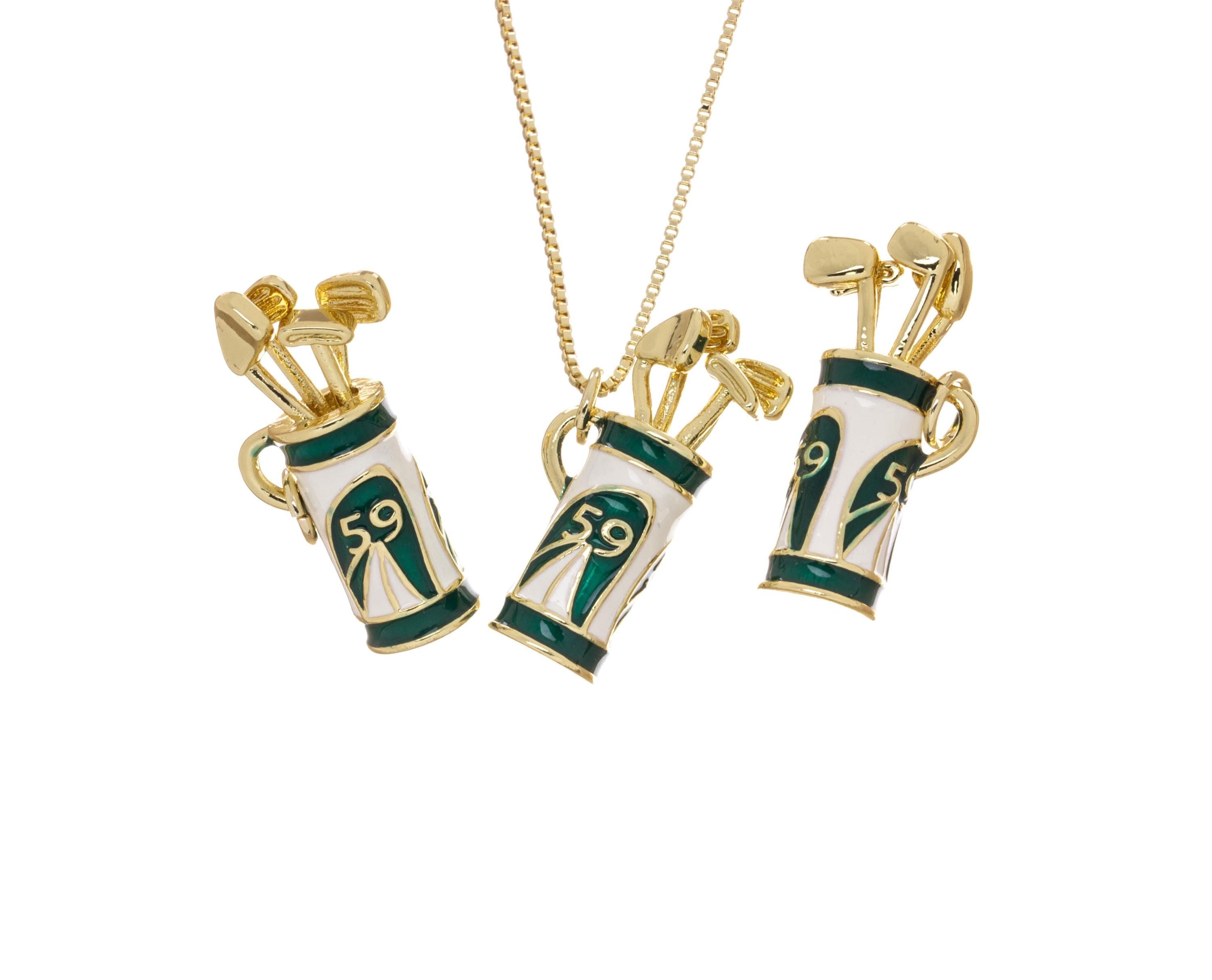 Golf Club Set Charm,Gold Gold Club Charm For Necklace,Charm For Golfers,Full Set Golf Club,Gift For A Golfer,Sporting Gold Charm,CPG2689