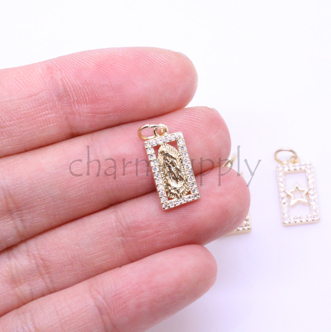 Guadalupe Dainty Gold Charm,Silver Virgin Mary Charm,Guadalupe Gold Or Silver Charm,Tiny Religious Charm,CPG284-CPS284