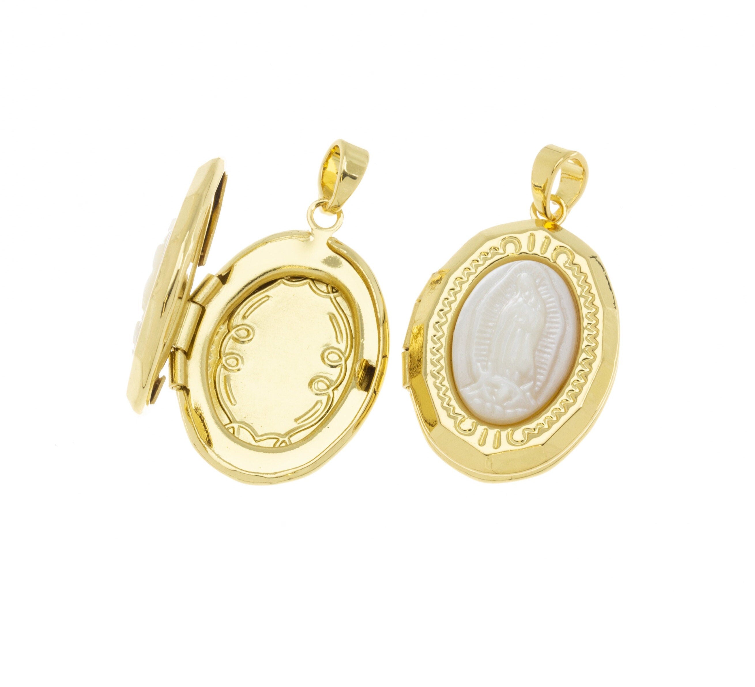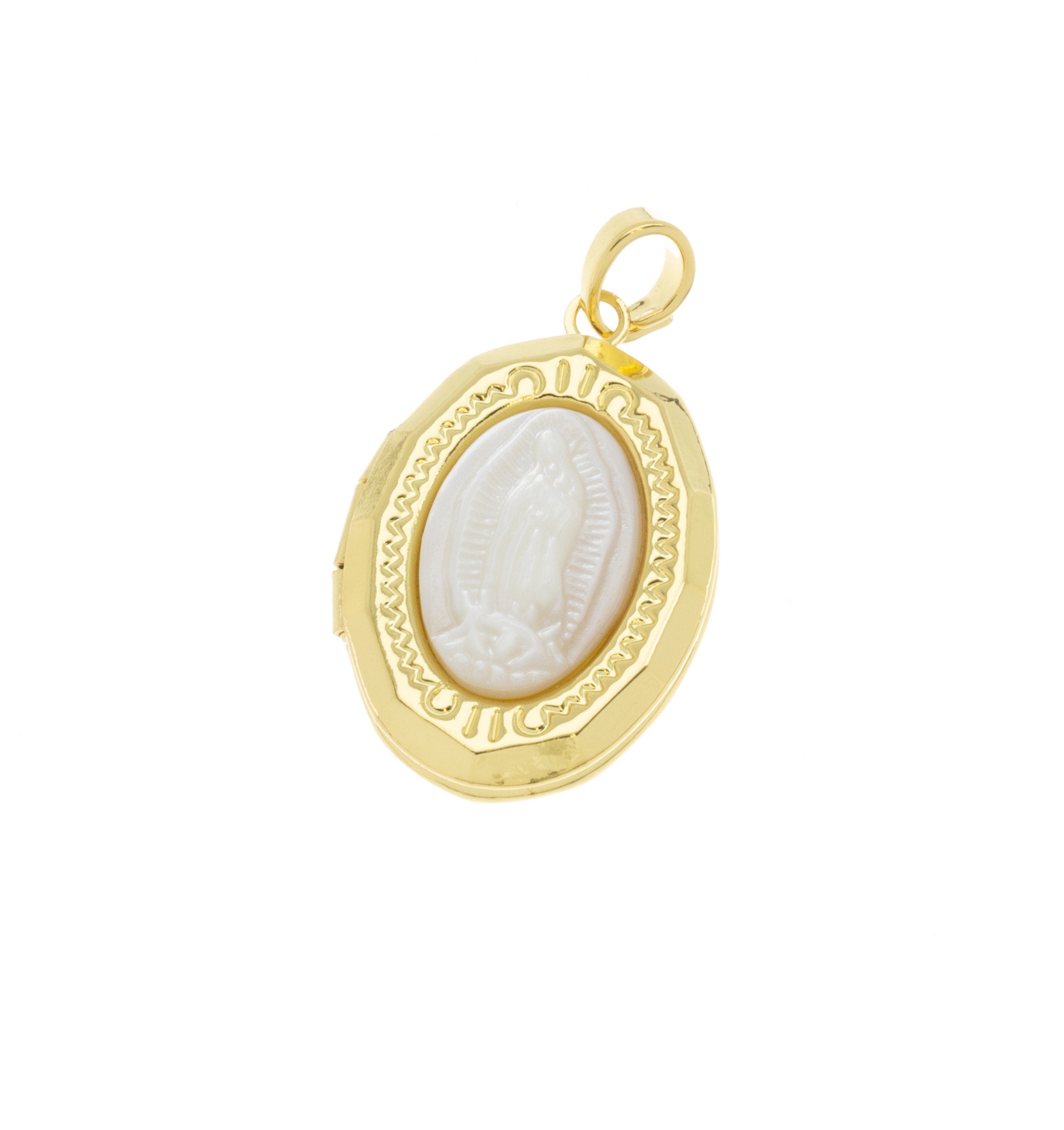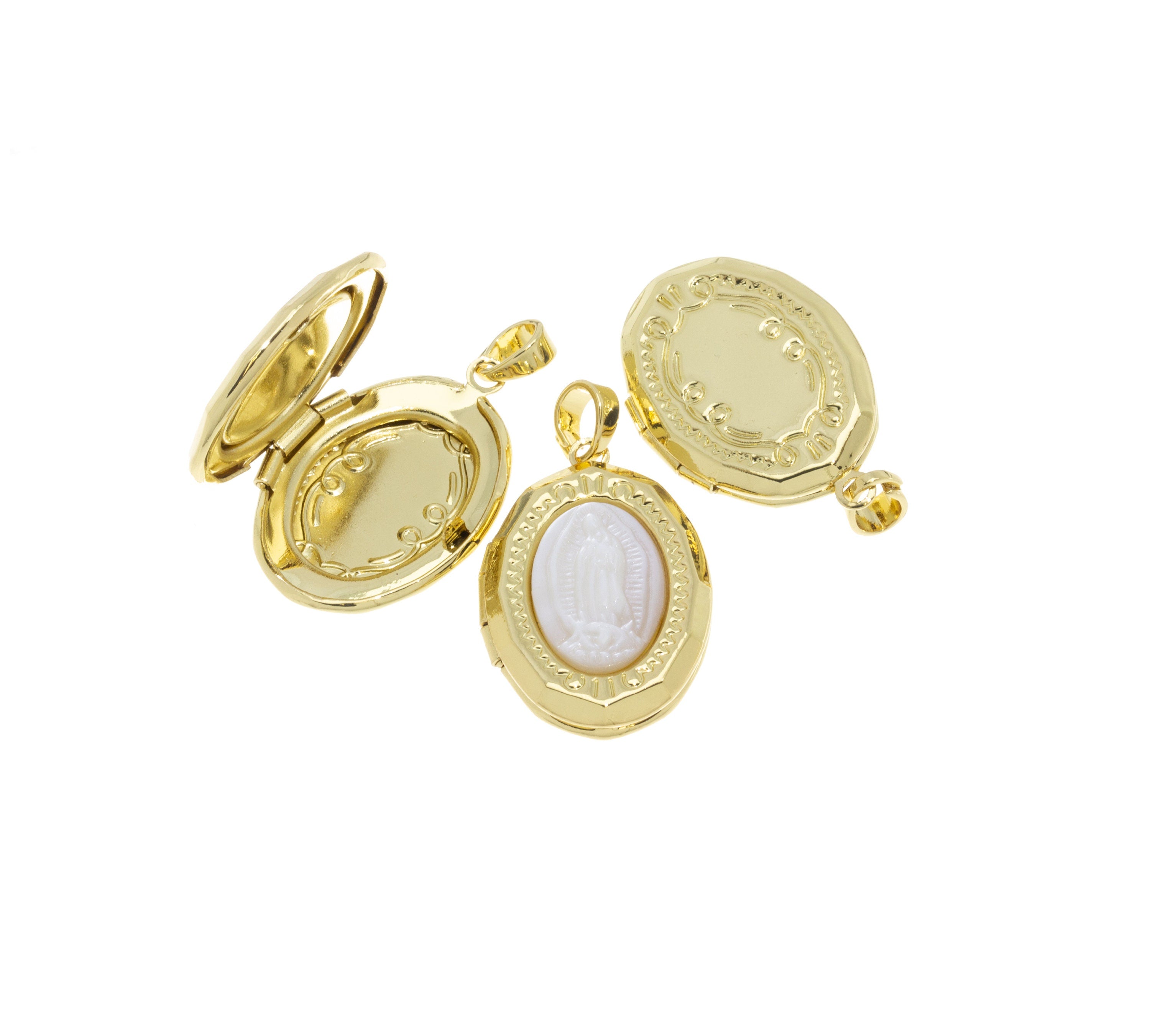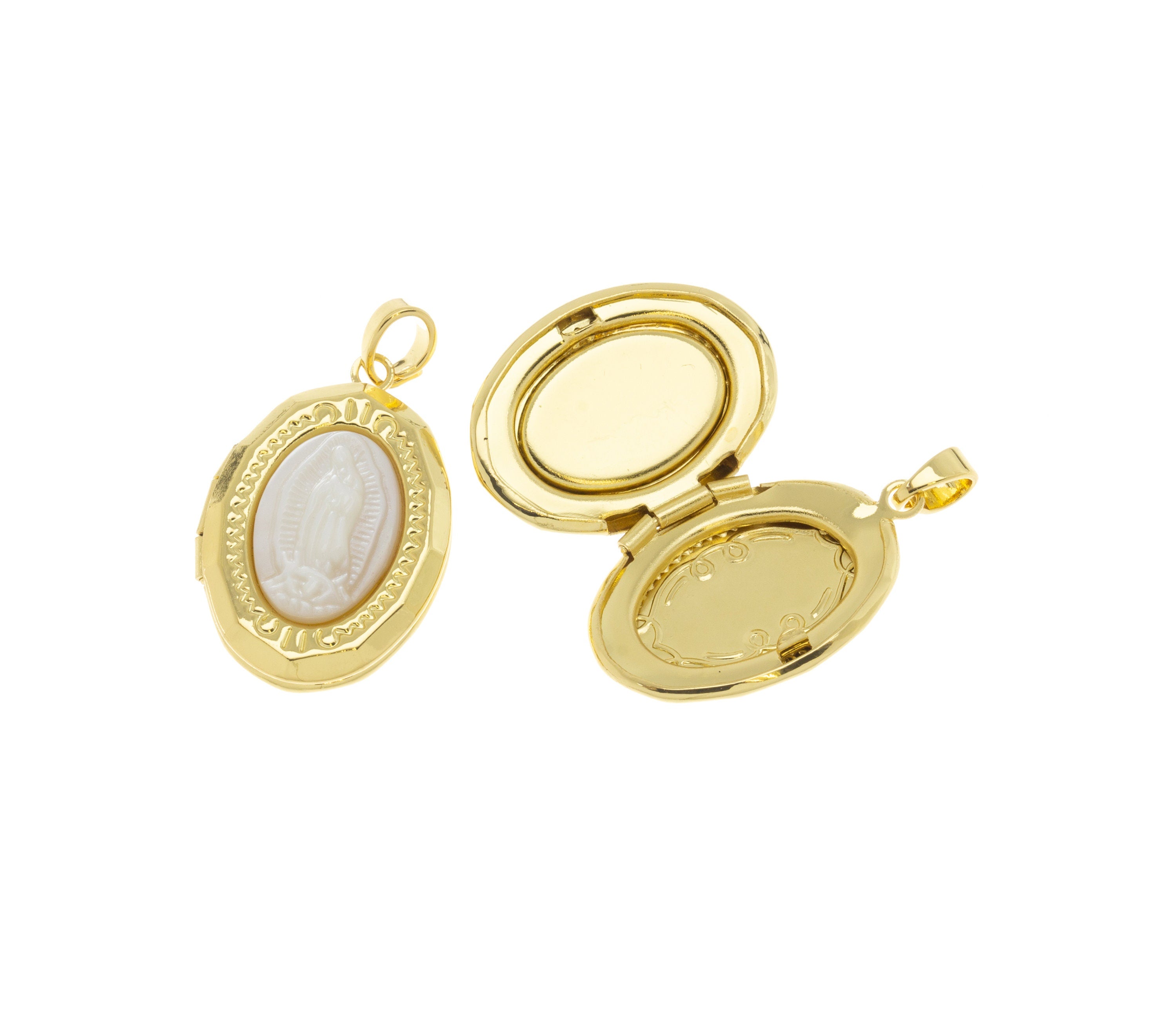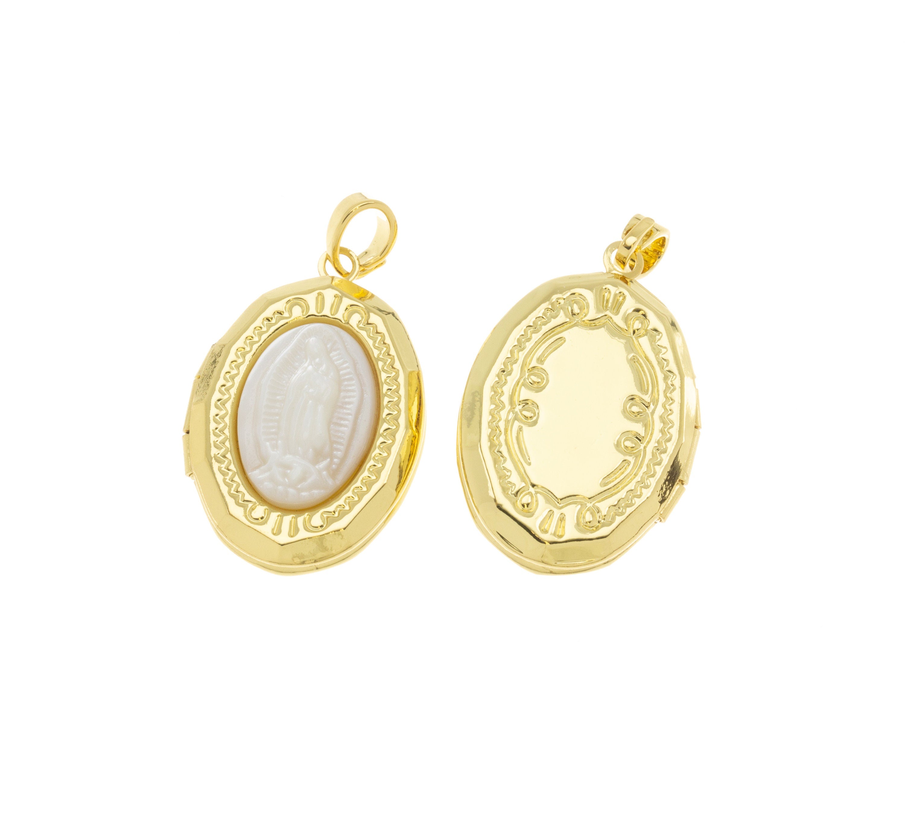 Guadalupe Gold Heart Locket,Oval Locket Heart Charm For Necklace,Gift For A Friend,Heart Shape Locket With Mother Of Pearl,CPG1011