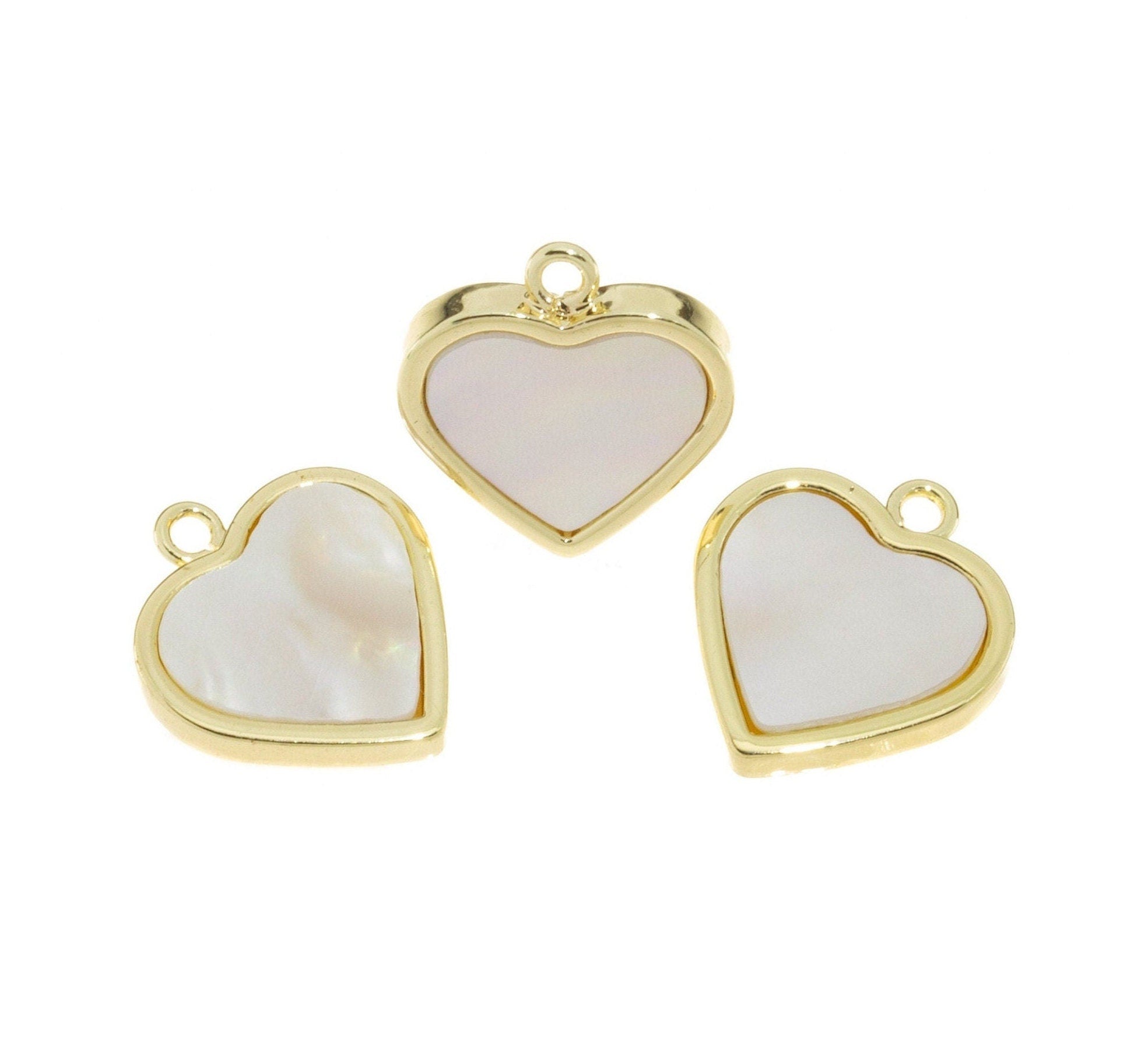 Heart Charm With White Mother Of Pearl,Gold Heart charm ,Dainty Heart charm,Heart Charm Gift For Her, CPG015