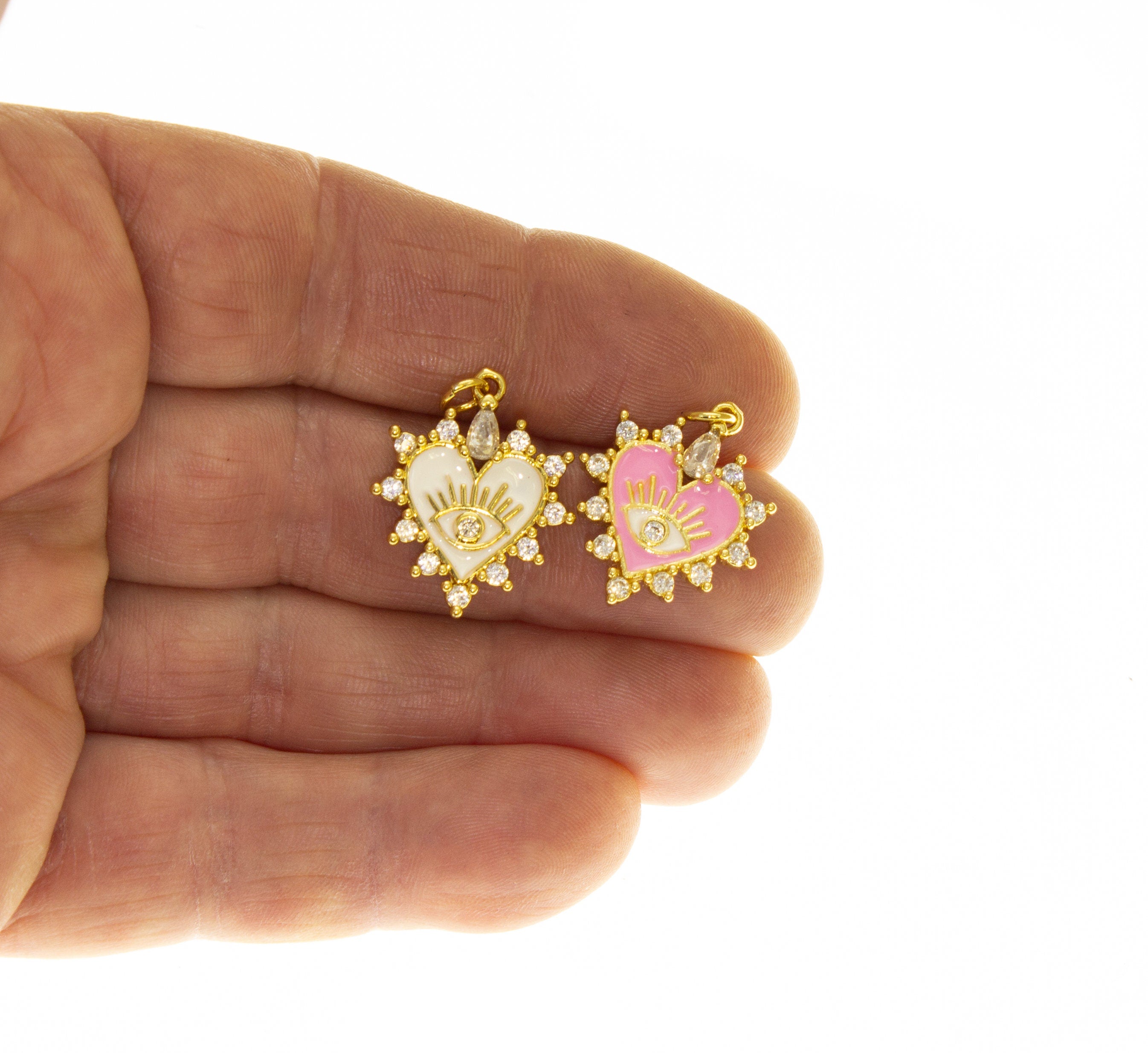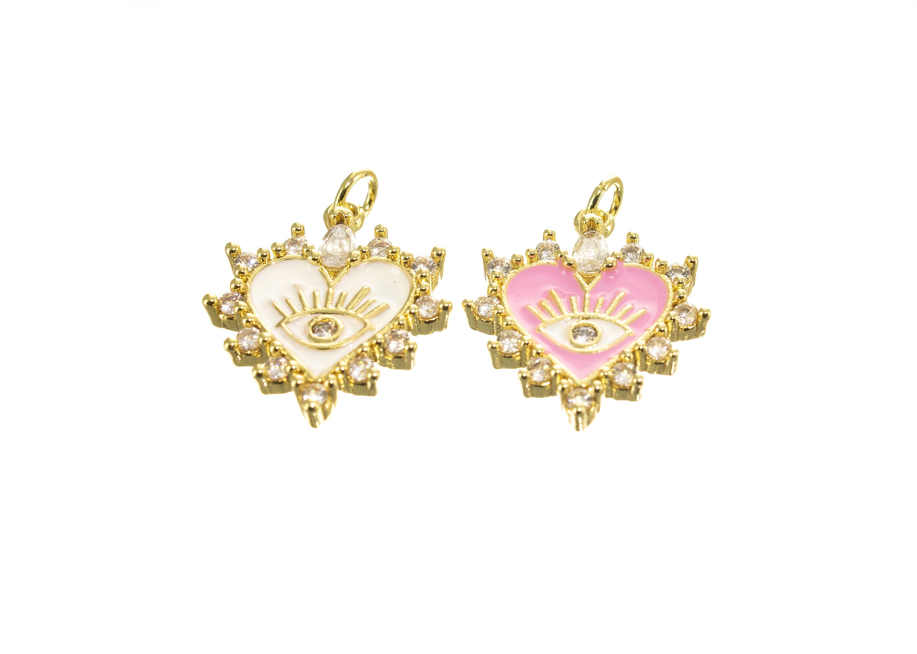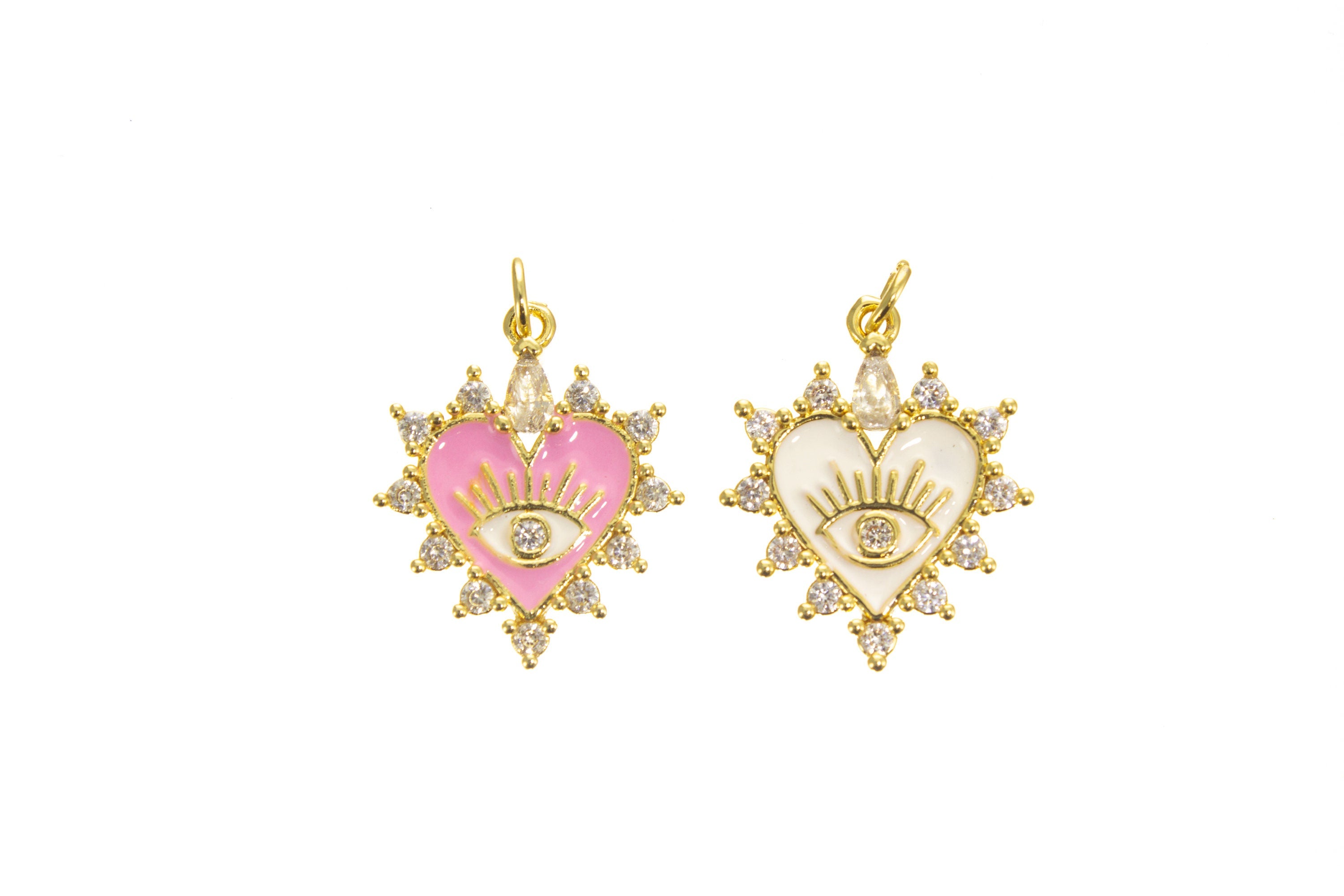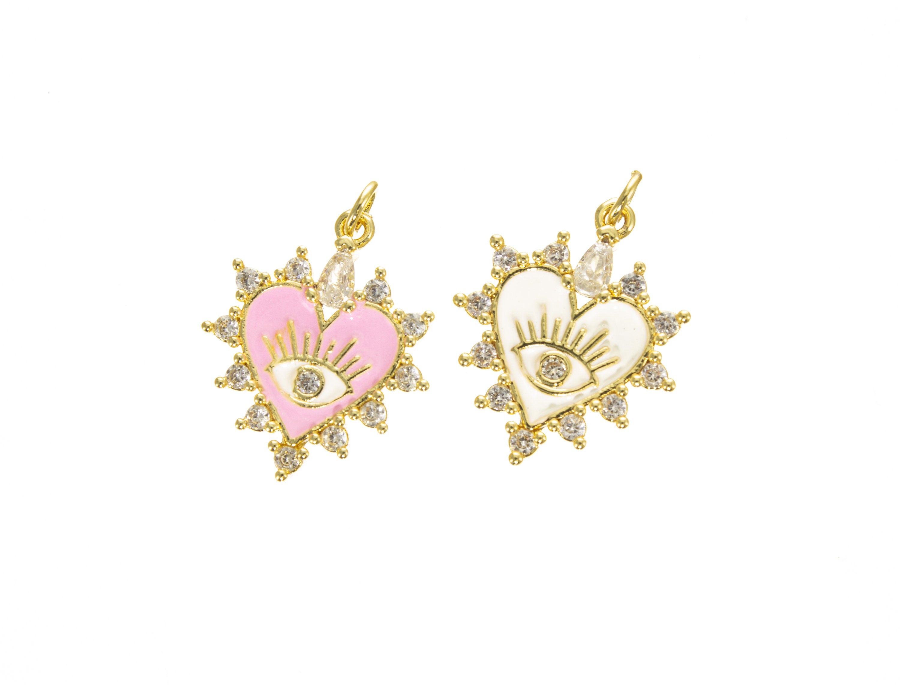 Heart Evil Eye Charm,Gold Pave Heart charm ,Minimalist Heart charm,Heart Charm Gift For Her, CPG018,CPG019